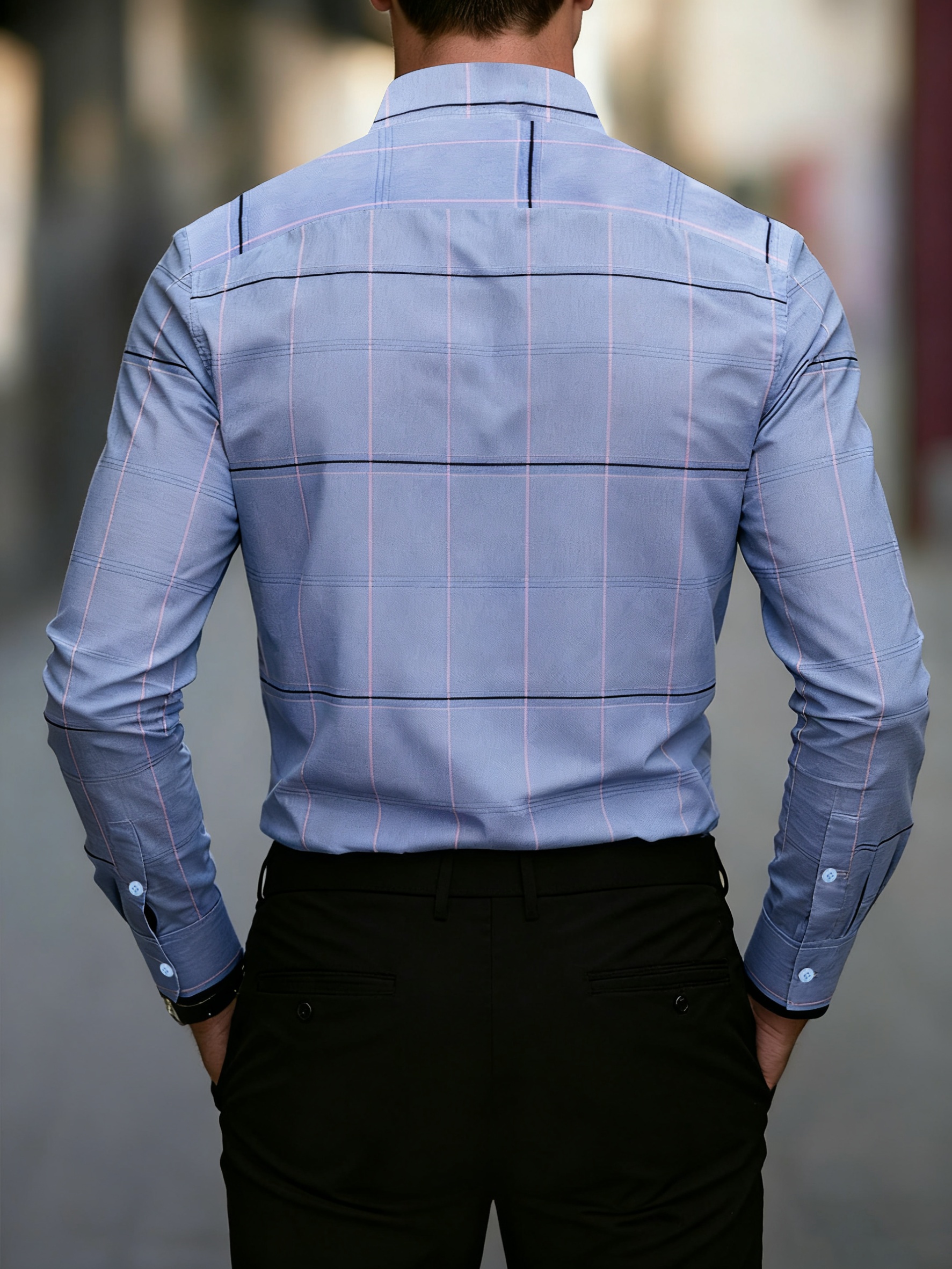1 Camisa de Hombre a Cuadros con Patrón a Cuadros – Manga Larga con Cuello Abotonado, Cierre de Un Botón, Camisa Casual y de Oficina para Todas las Estaciones, Ideal para Uso Formal y Diario