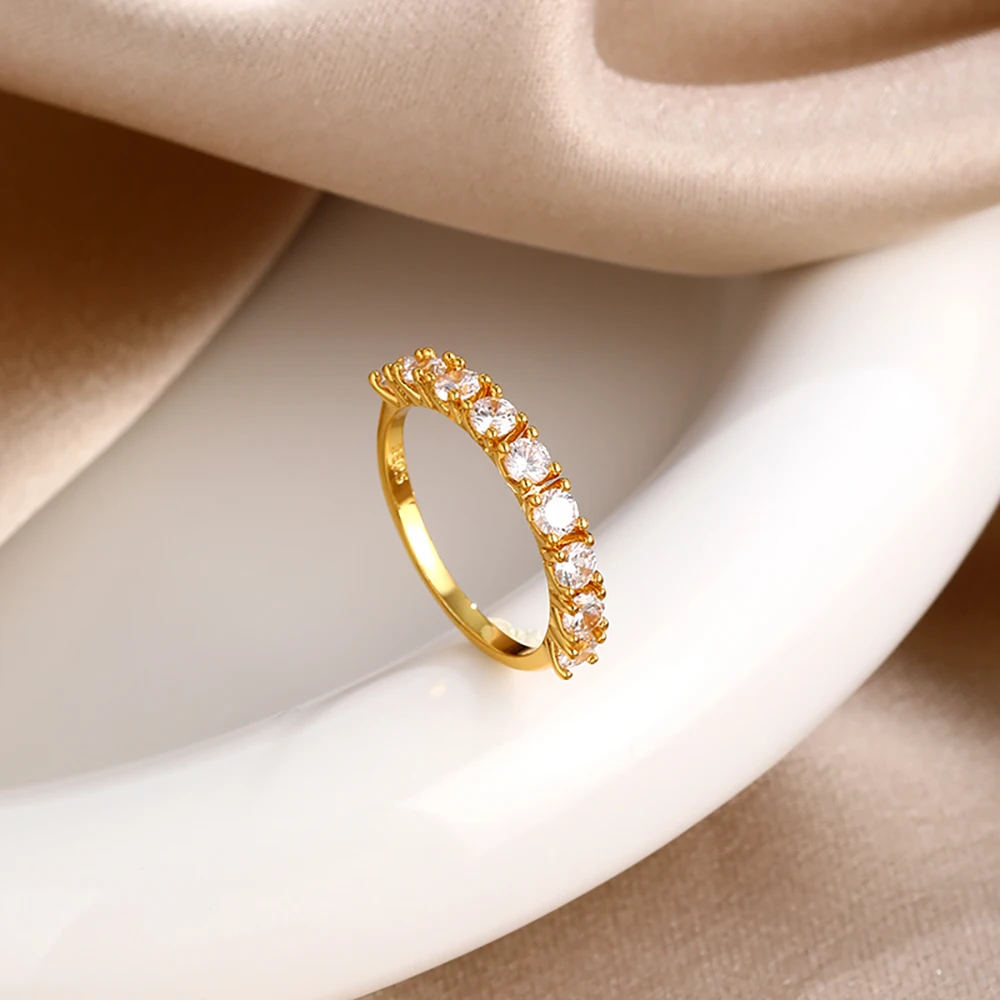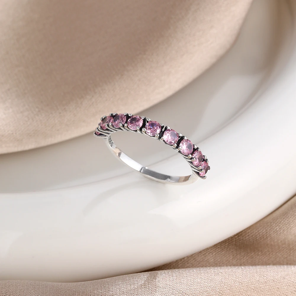 Anillo de plata 925 con banda de eternidad para mujer, repleto de circonita con incrustaciones brillantes, diseño minimalista apilable, accesorio de joyería de boda