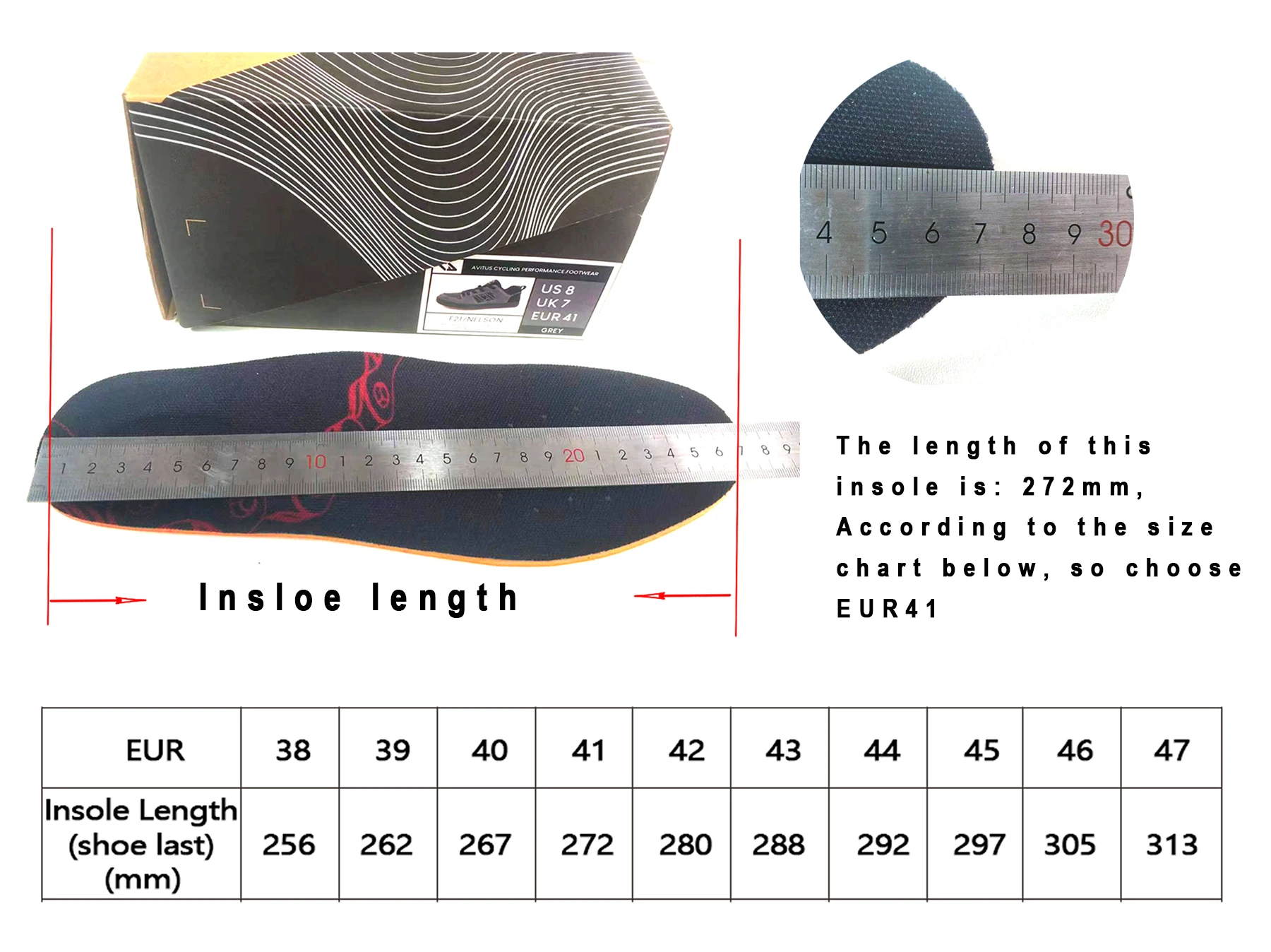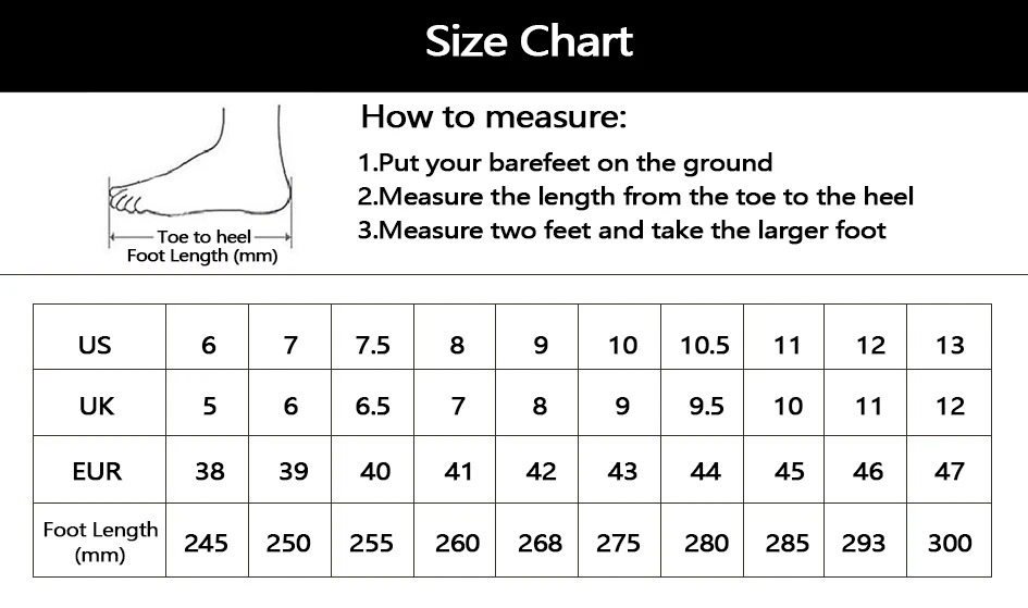 Se recomienda medir la longitud de la plantilla de sus propios zapatos adecuados antes de comprarlos y luego comparar la longitud de la plantilla en la tabla de tallas antes de comprar.
