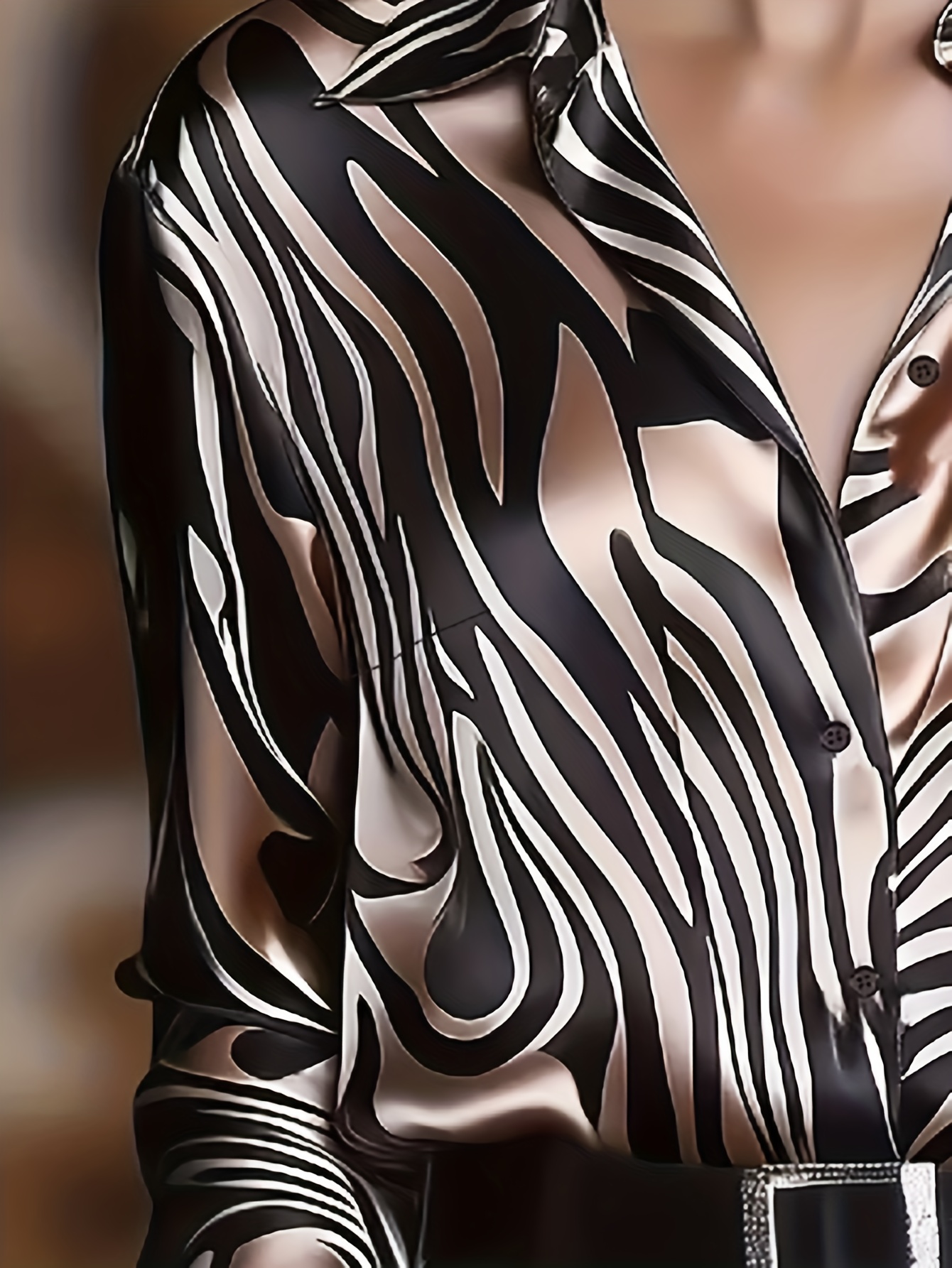 Blusa Elegante para Mujer en Negro y Rayas – Camisa de Manga Larga con Botones y Cuello Clásico, Blusa Versátil para Oficina y Fiesta en Todas las Estaciones, Moda Profesional para Mujer, Top con Estampado Floral