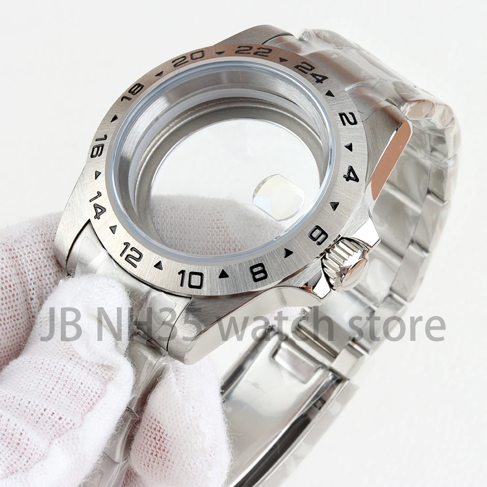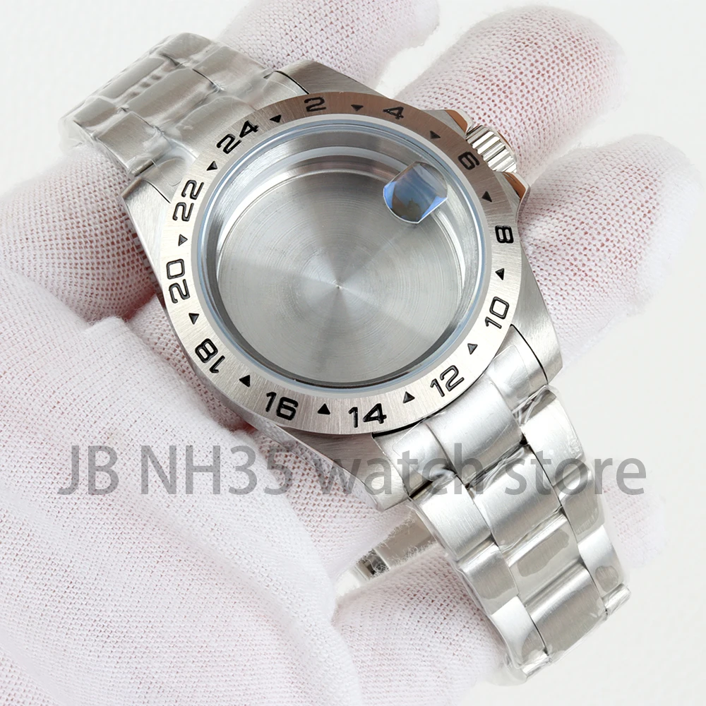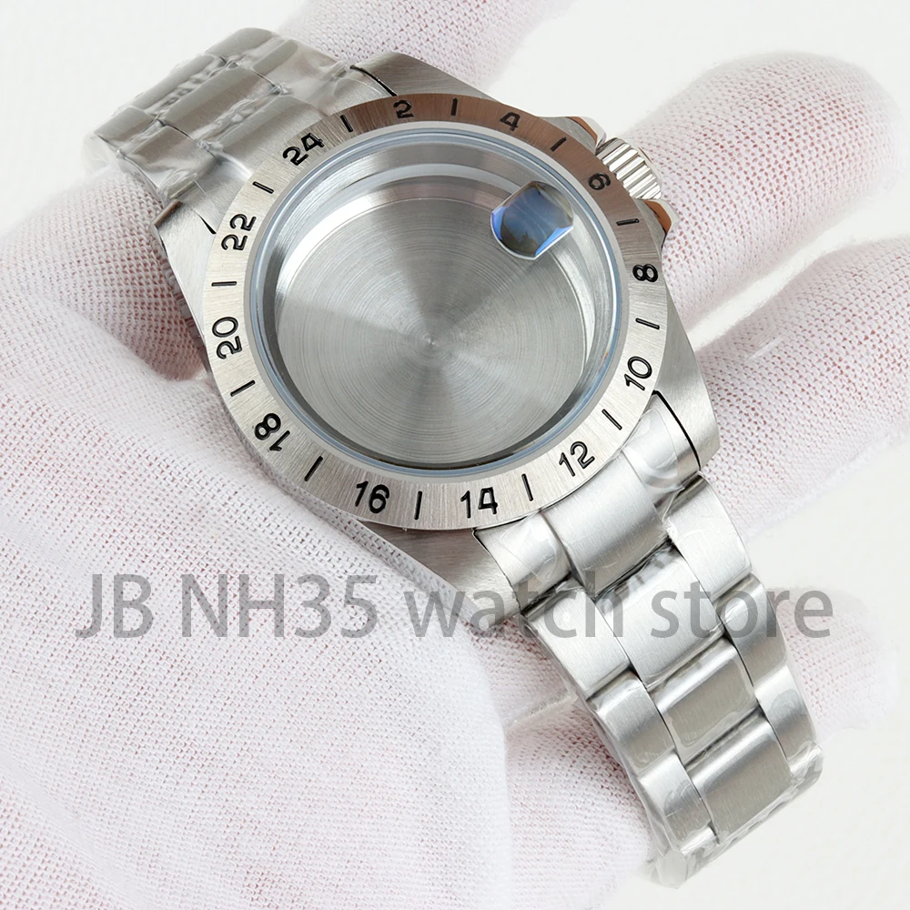 Caja de reloj con bisel de acero EXP de 39mm, 24 horas, para Explorer GMT NH34 NH35 NH36 NH38, movimiento de cristal de zafiro, esfera de 28,5mm, pulsera Oyster
