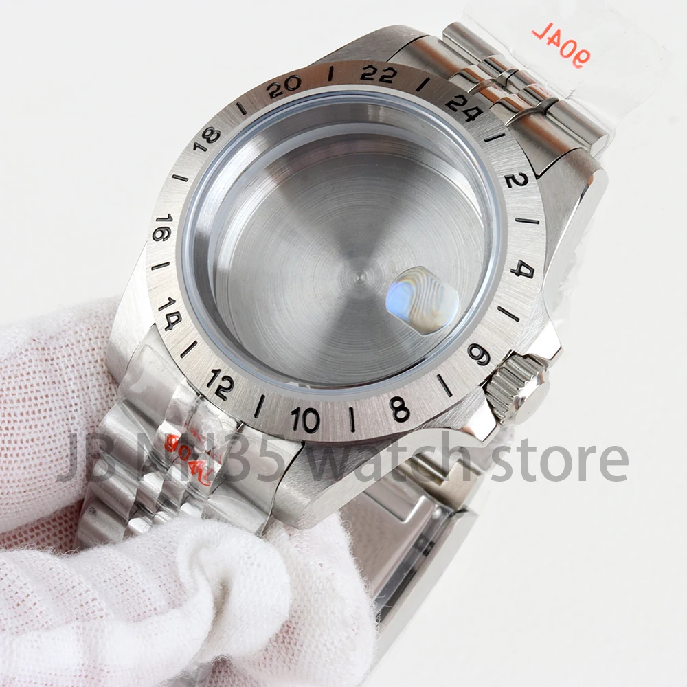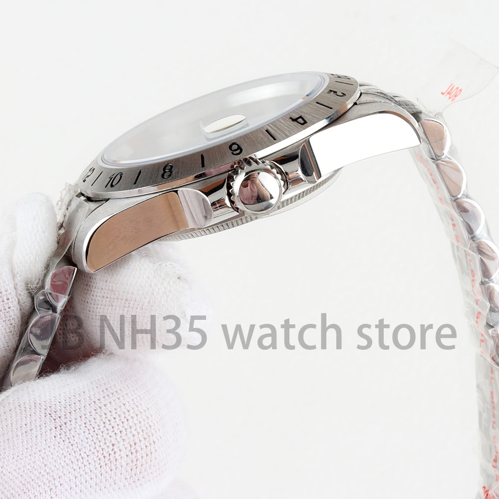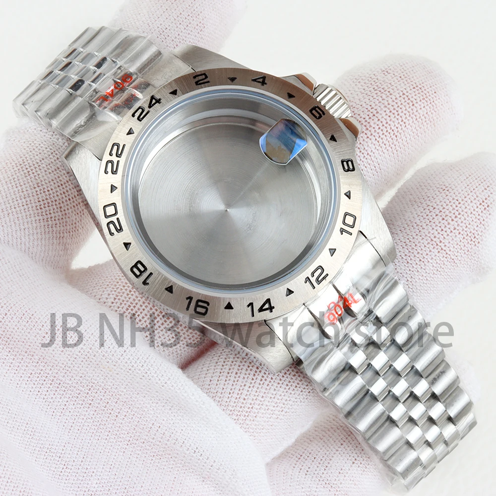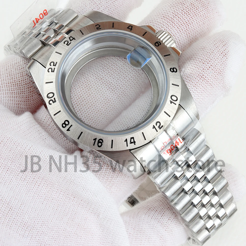 Caja de reloj con bisel de acero EXP de 39mm, 24 horas, para Explorer GMT NH34 NH35 NH36 NH38, movimiento de cristal de zafiro, esfera de 28,5mm, pulsera Oyster