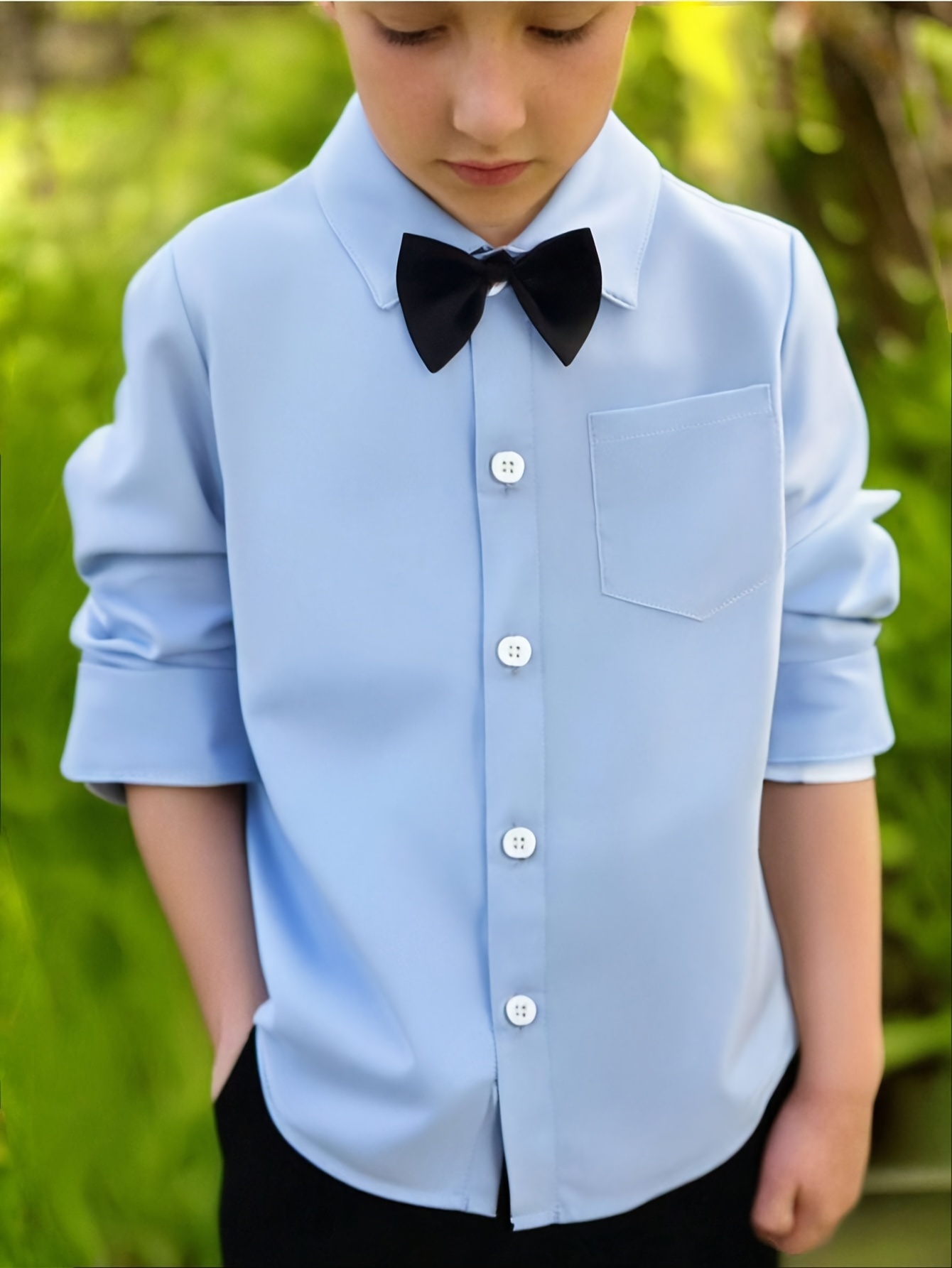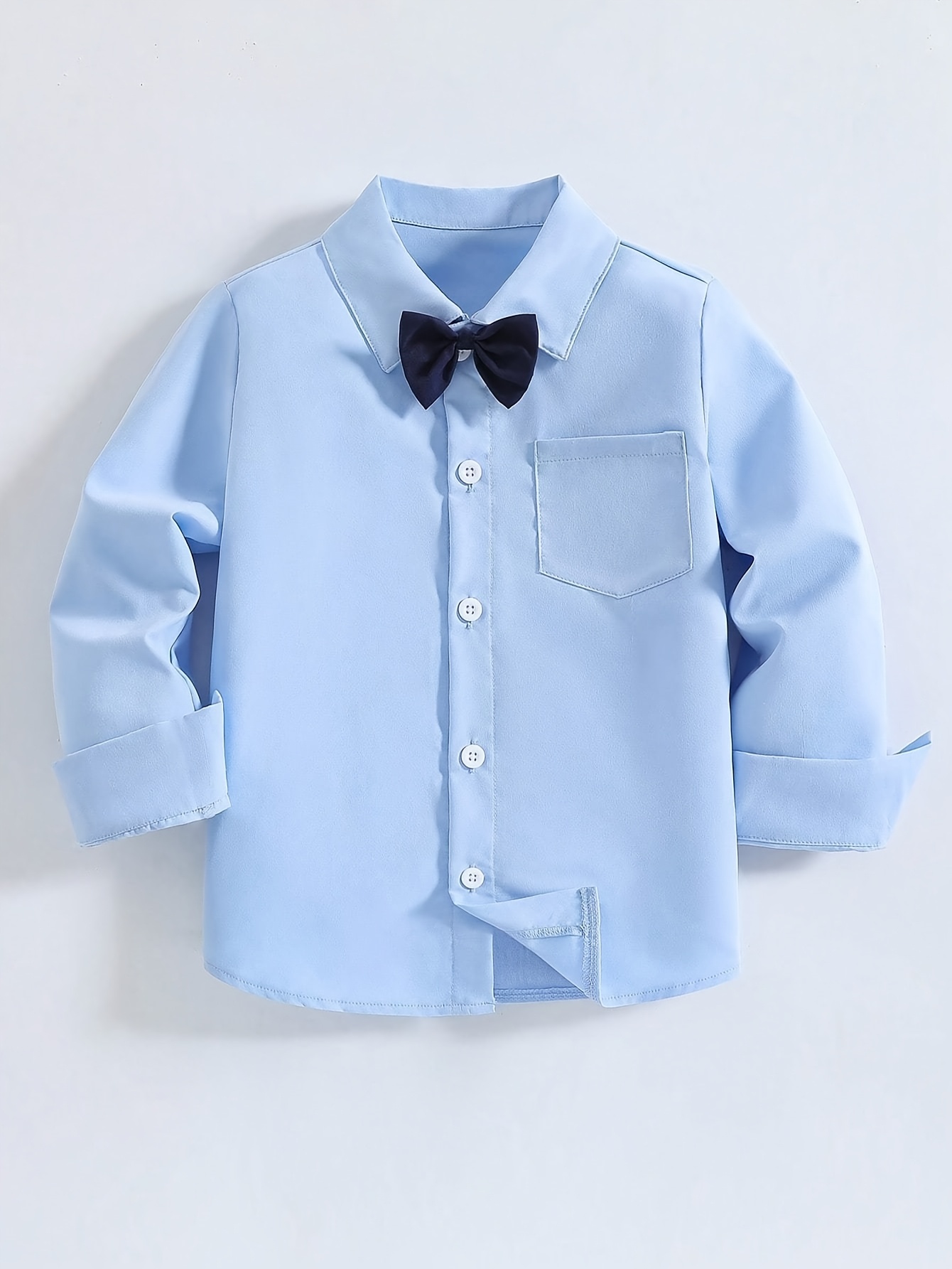 Sé el primero en valorar “Camisa azul de gentleman para niño, formal, de manga larga con cuello y pajarita, un top clásico para fiestas, bodas y regalos navideños” Cancelar respuesta