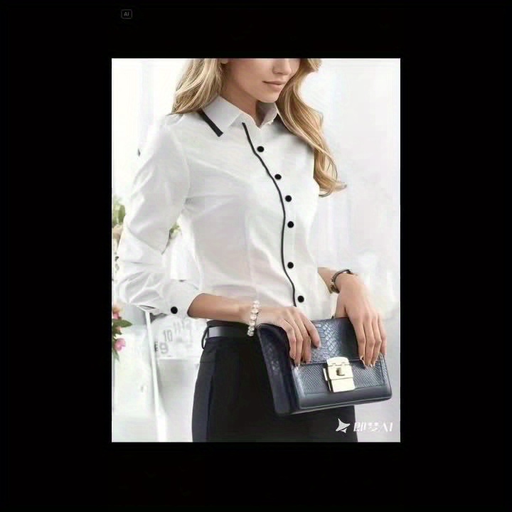 Camisa Blanca de Manga Larga para Mujer 2025 – Cuello Clásico, Ropa Profesional Lavable a Máquina, Uniforme Versátil para Oficina en Todas las Estaciones