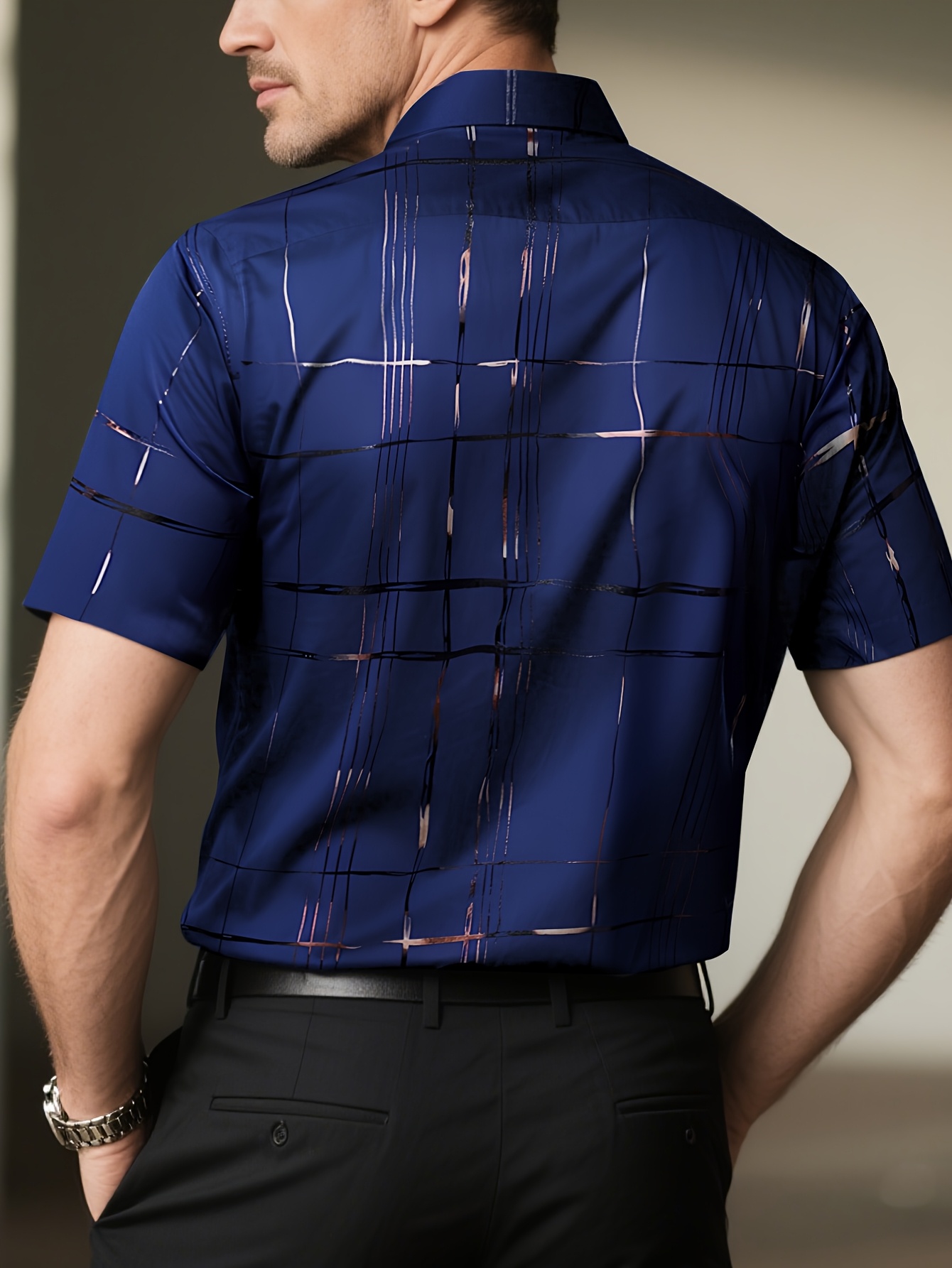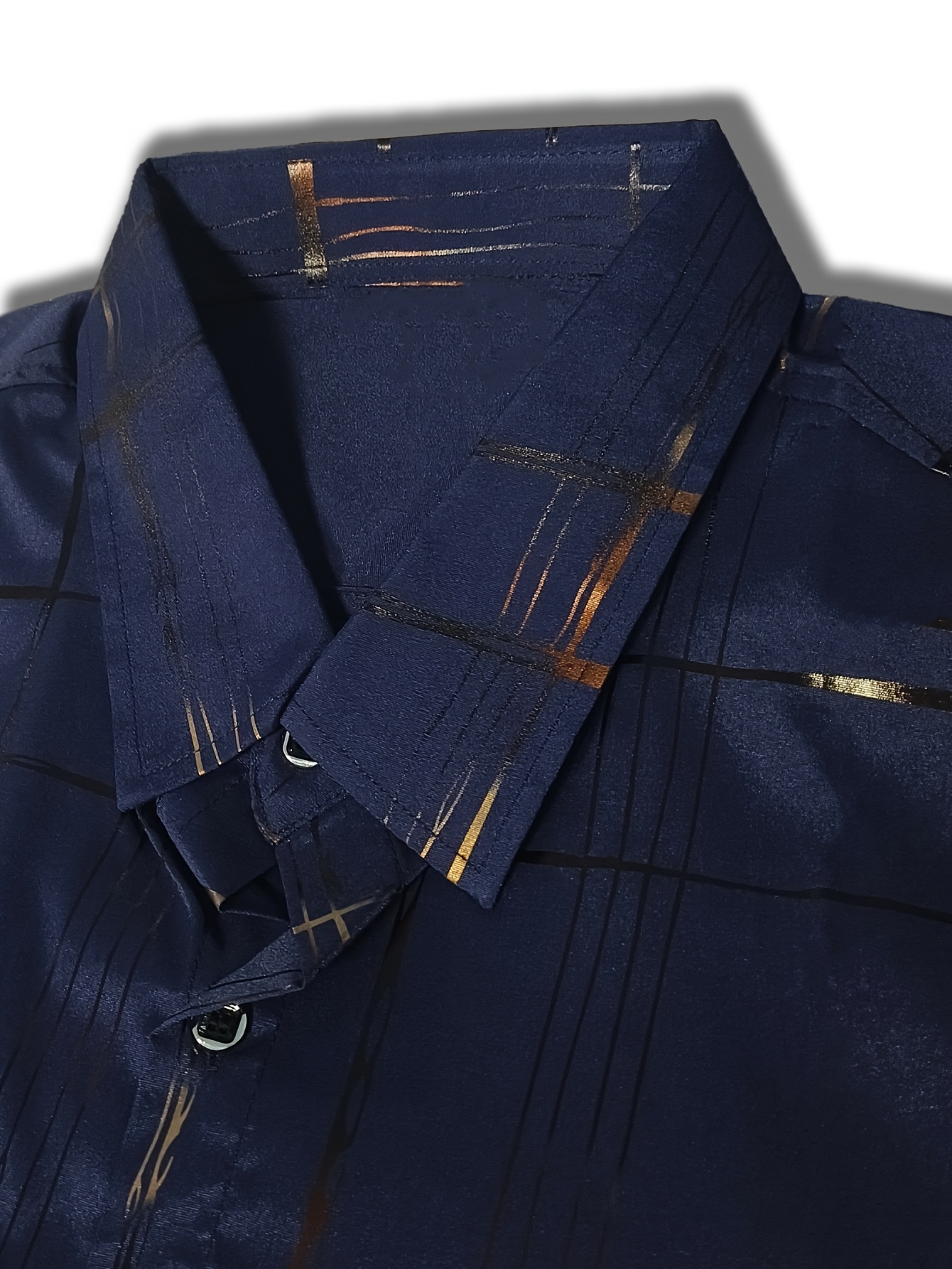 Camisa clásica de manga corta con cuello de botones para hombre, estilo náutico, con detalle de patrón de lámina dorada, ideal para primavera, verano y otoño, perfecta para la oficina, negocios, ocasiones casuales y formales.