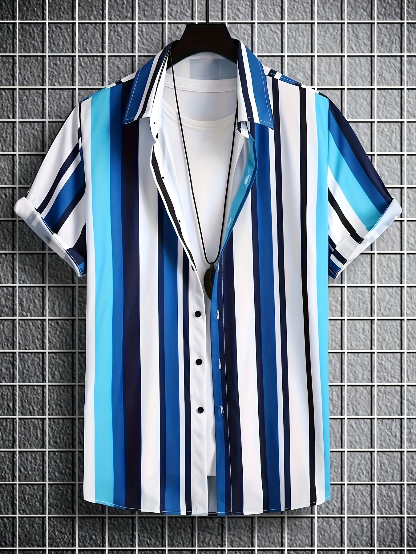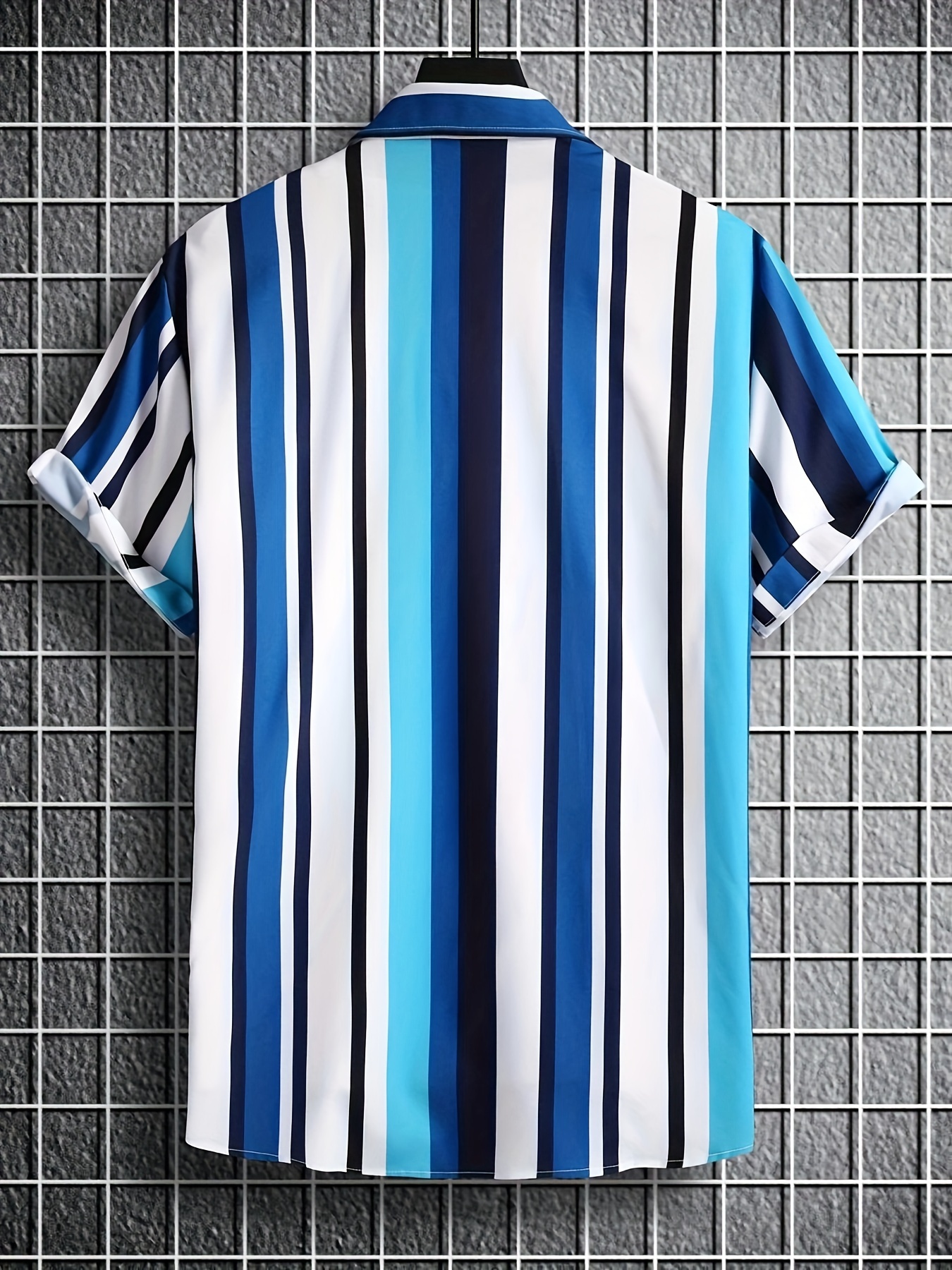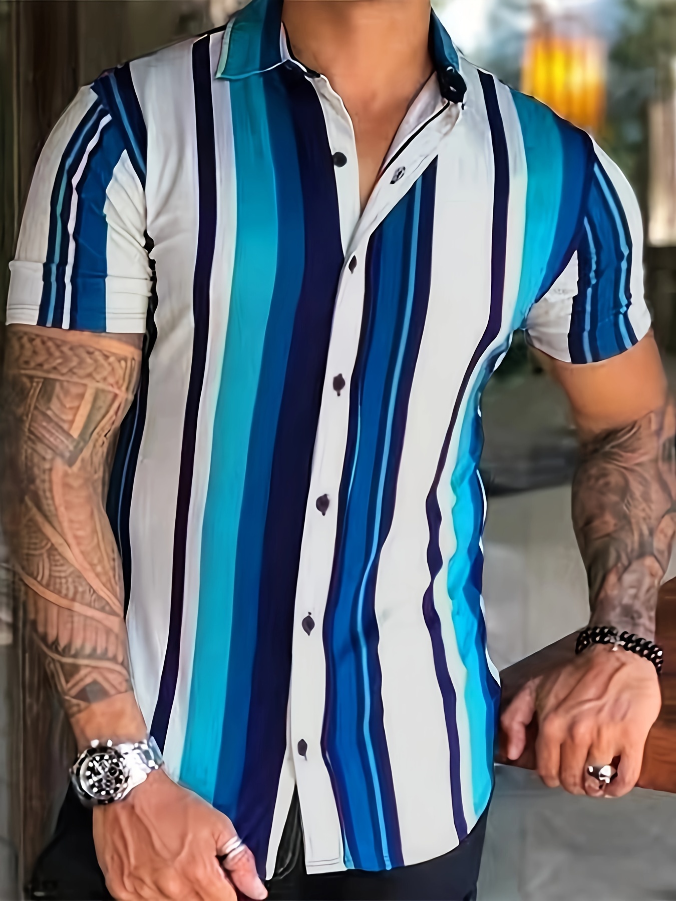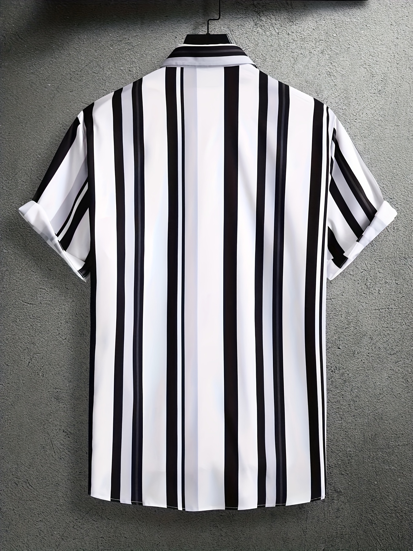 Camisa de manga corta para hombre con rayas irregulares, ideal para primavera, verano y otoño. Perfecta para vacaciones y salidas informales, 100% algodón, lavable a máquina pero no apta para limpieza en seco. C965