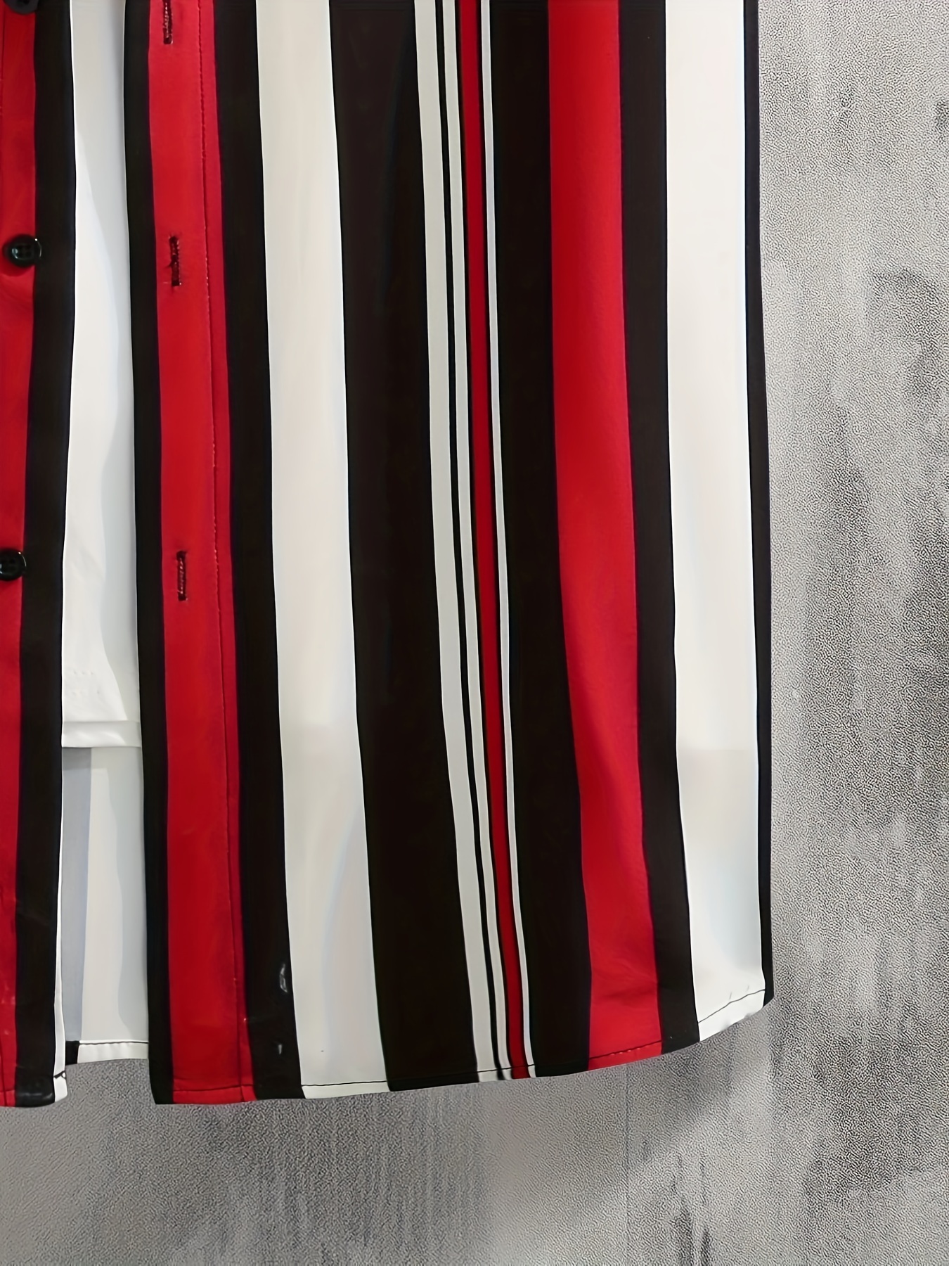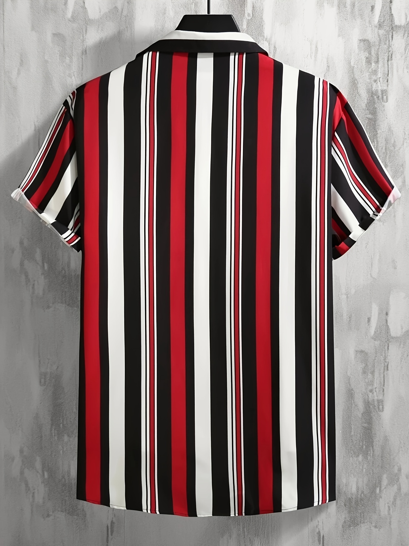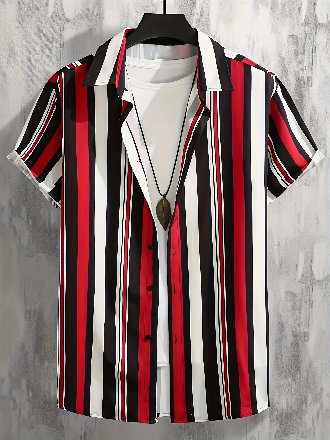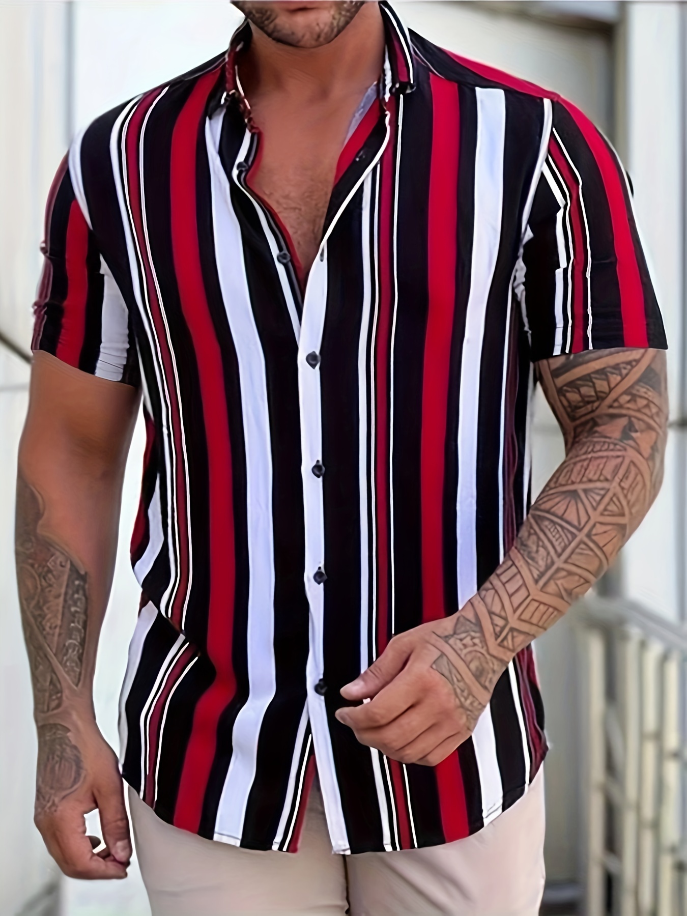 Camisa de manga corta para hombre con rayas irregulares, ideal para primavera, verano y otoño. Perfecta para vacaciones y salidas informales, 100% algodón, lavable a máquina pero no apta para limpieza en seco. C965