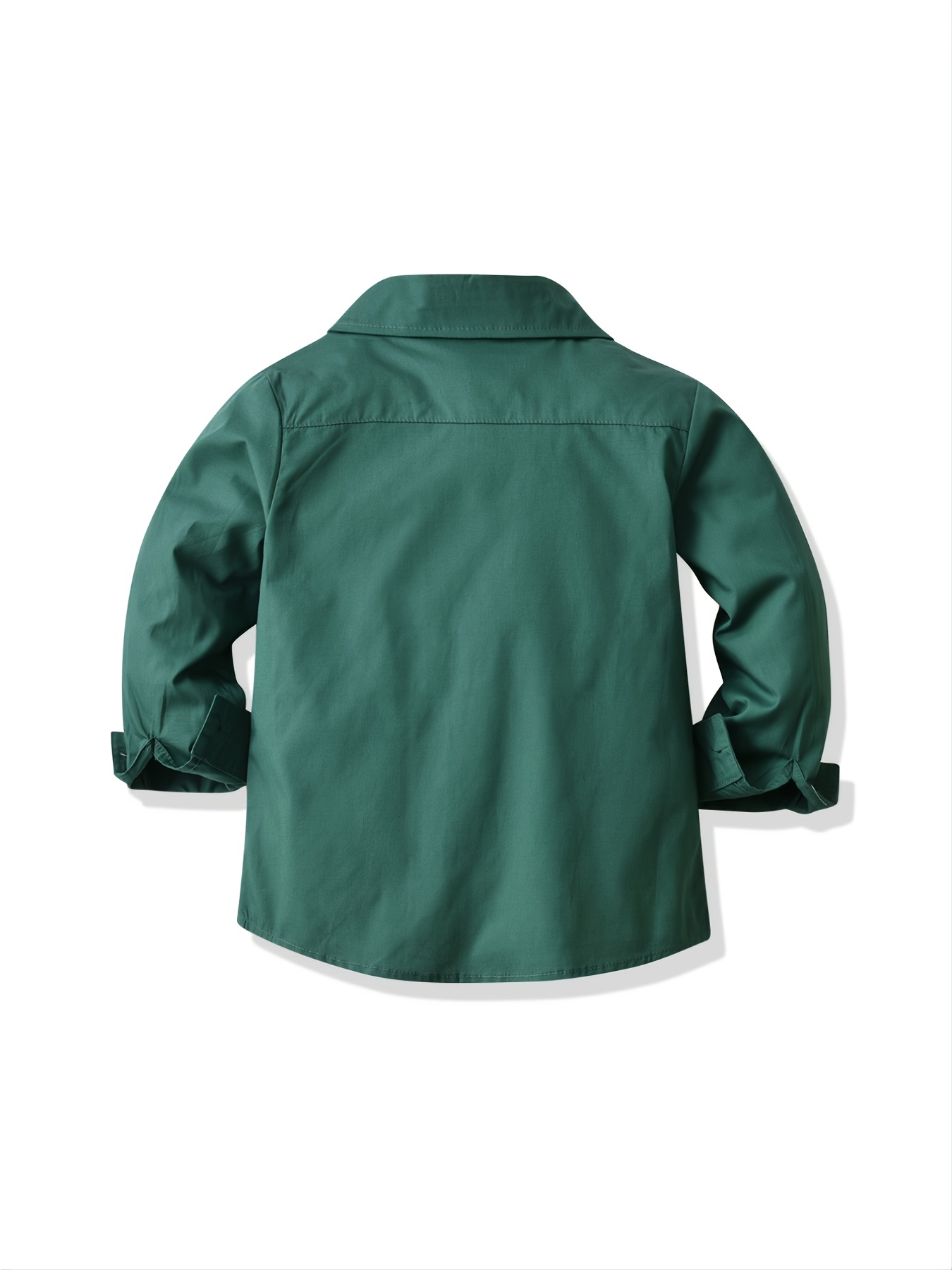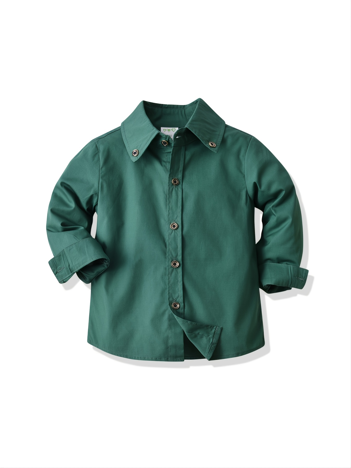 Camisa de manga larga de color sólido para niños – Cuello clásico, ajuste regular, tejido no elástico para uso casual y formal en todas las estaciones, duradera y fácil de cuidar, ideal para fiestas y uso diario, diseño eterno, textura suave.