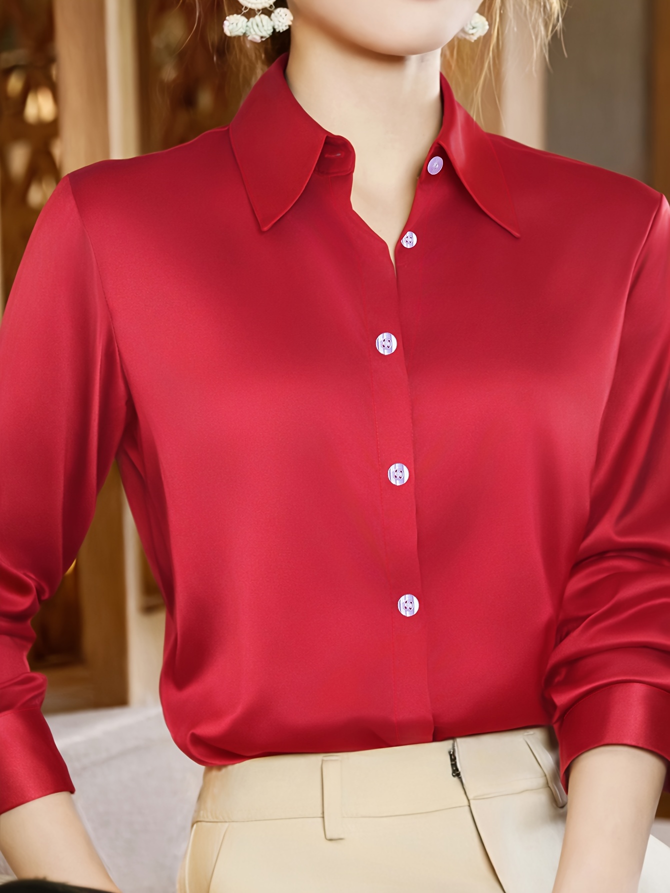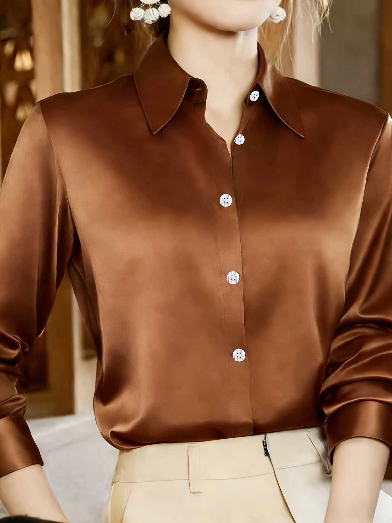 Sé el primero en valorar “Camisa de satén de moda para mujer con cuello, mangas largas, ideal para un lugar de trabajo de lujo ligero y para ir al trabajo, que emite elegancia” Cancelar respuesta