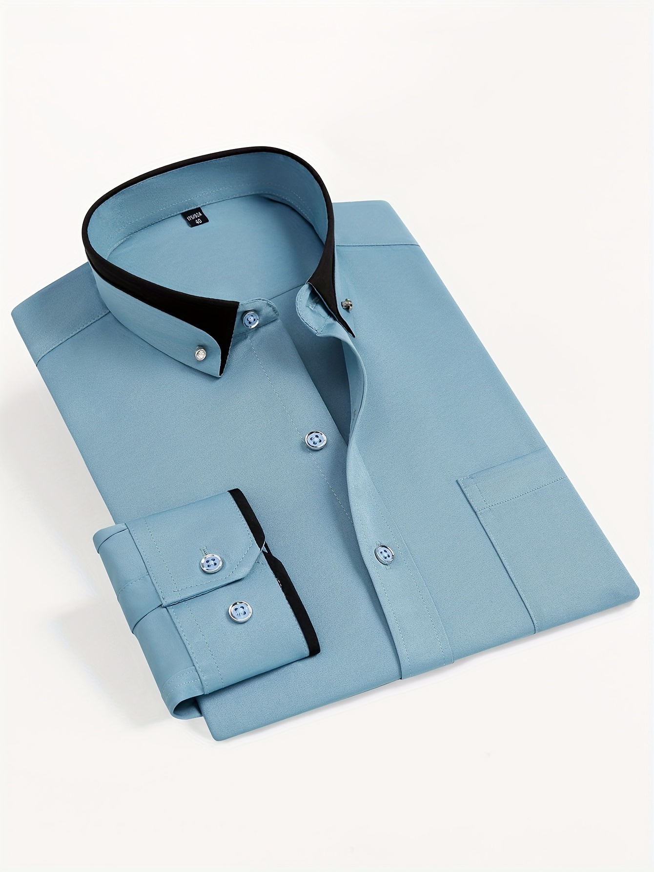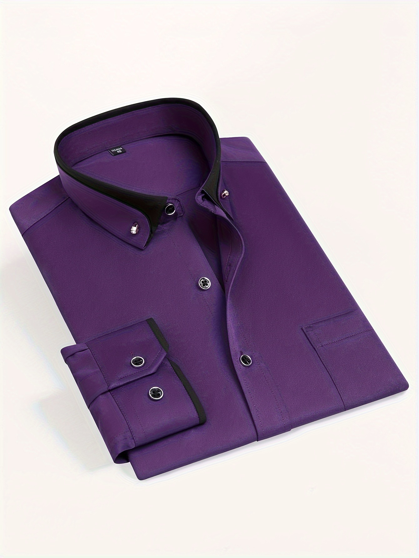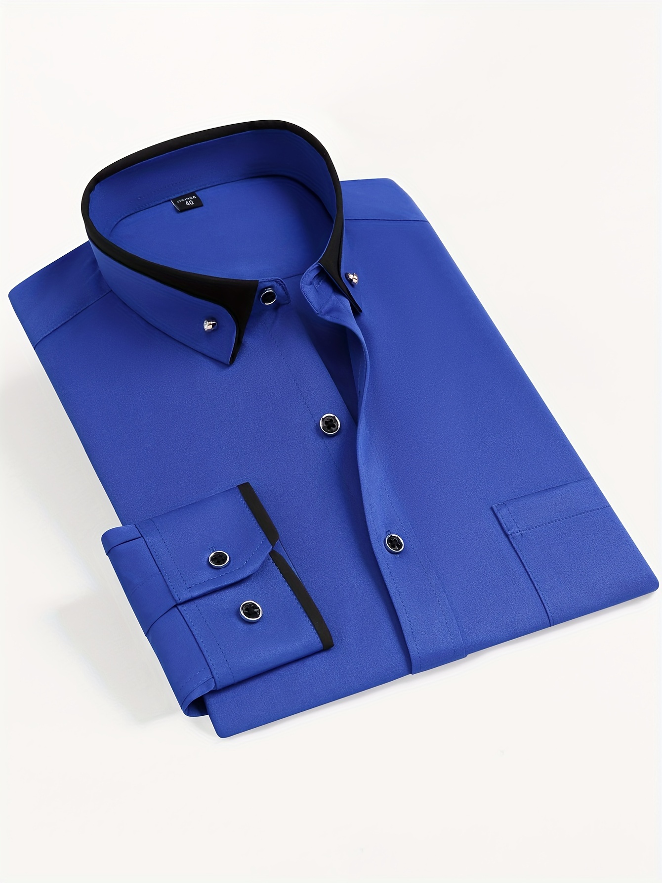 Camisa de vestir de manga larga para hombre con cuello de bloques de color, botones de cristal, cuello de solapa, cárdigan de moda casual de negocios, camisa elástica antiarrugas con bolsillos