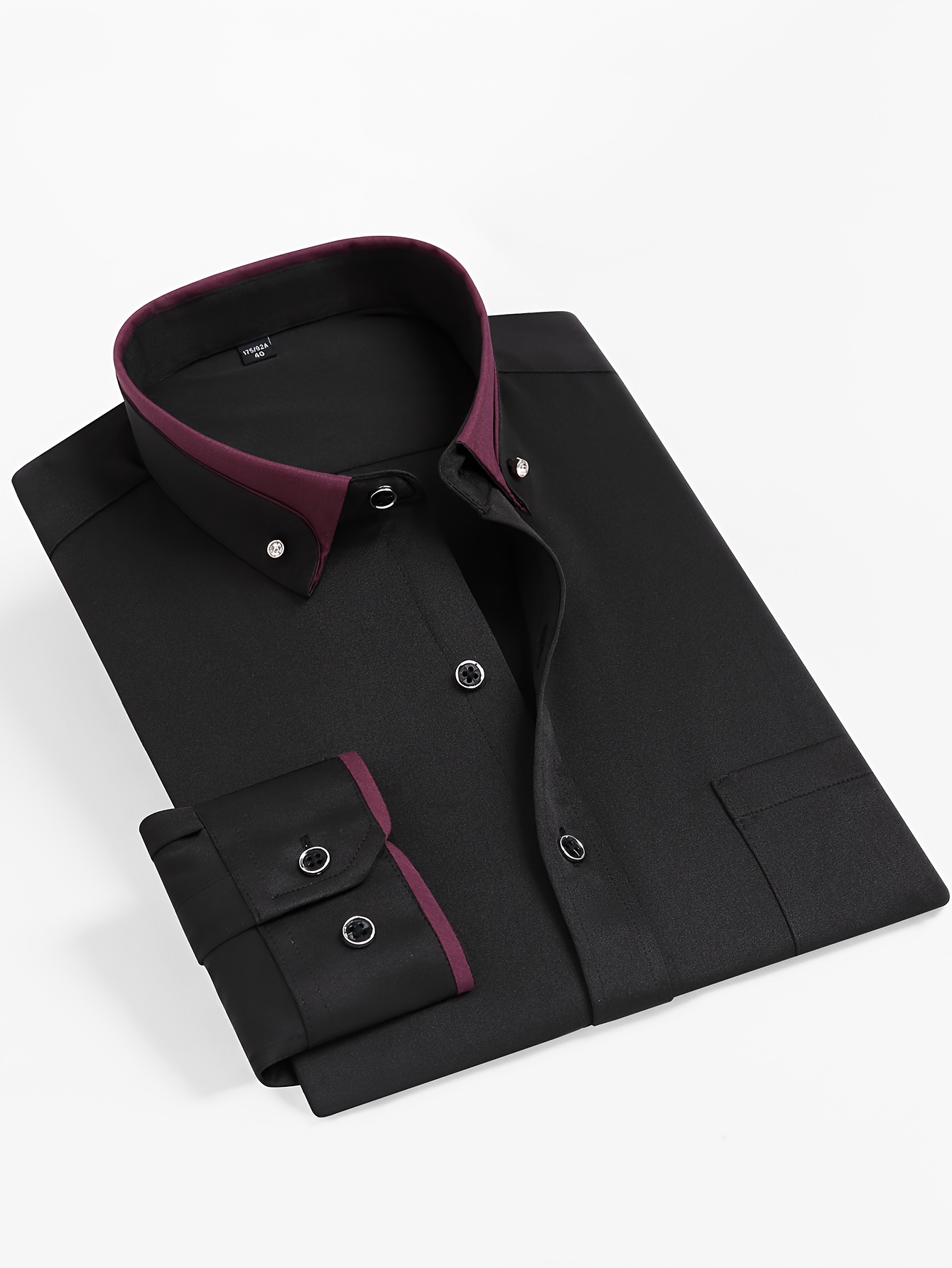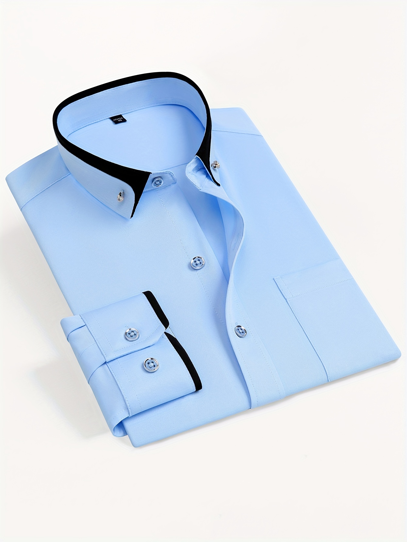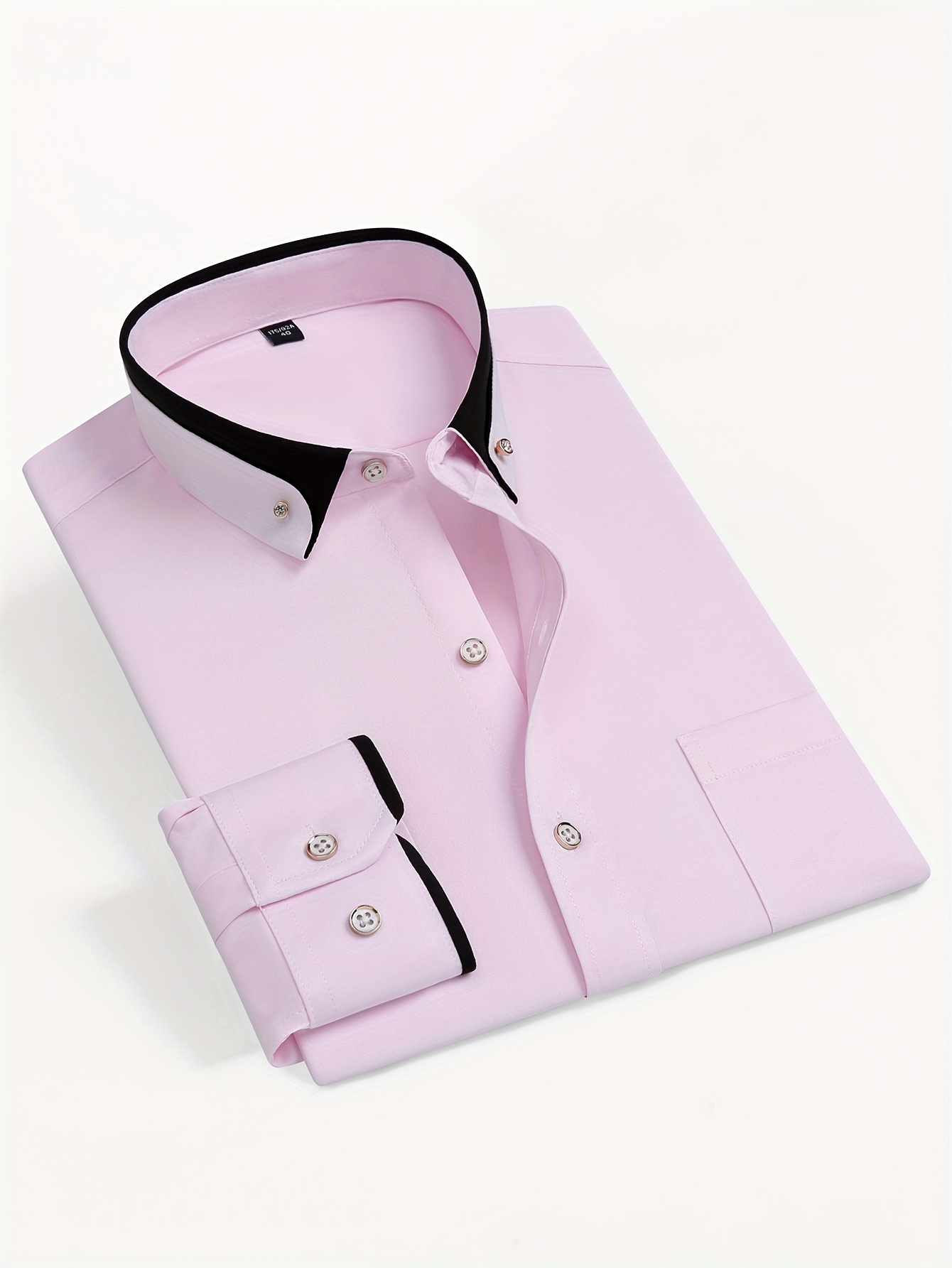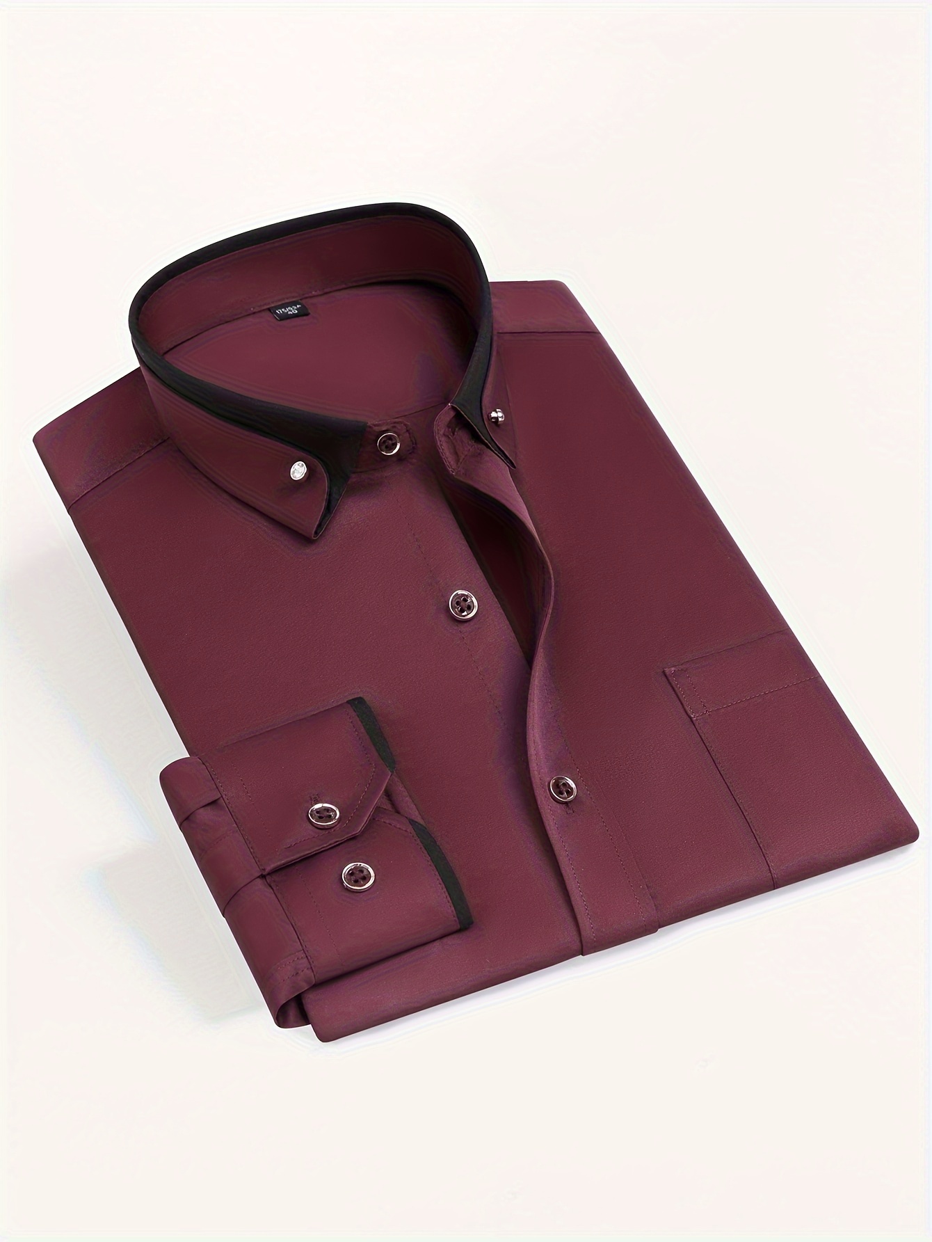 Camisa de vestir de manga larga para hombre con cuello de bloques de color, botones de cristal, cuello de solapa, cárdigan de moda casual de negocios, camisa elástica antiarrugas con bolsillos