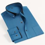 Sé el primero en valorar “Camisa de vestir de manga larga para hombre con cuello de bloques de color, botones de cristal, cuello de solapa, cárdigan de moda casual de negocios, camisa elástica antiarrugas con bolsillos” Cancelar respuesta