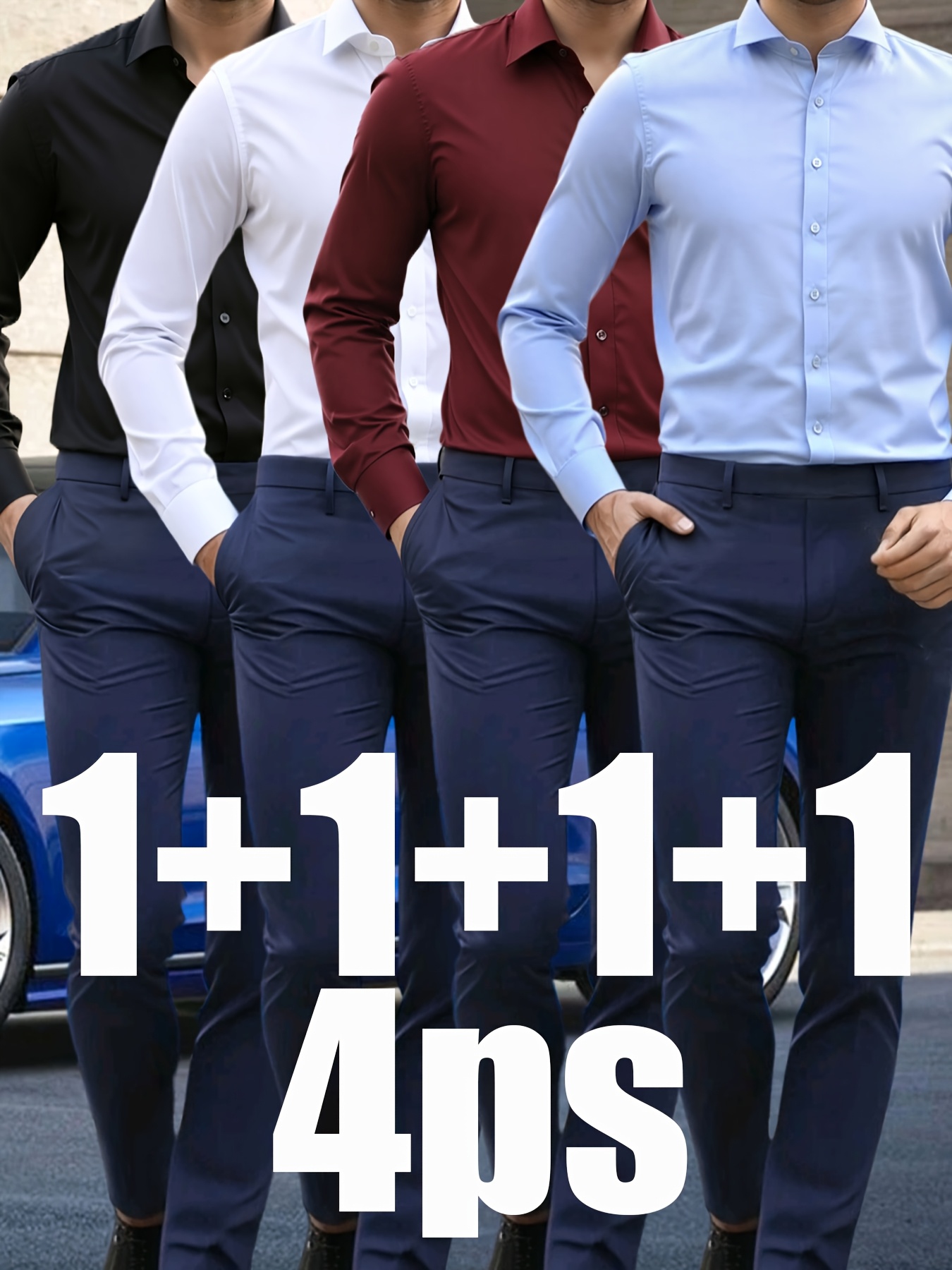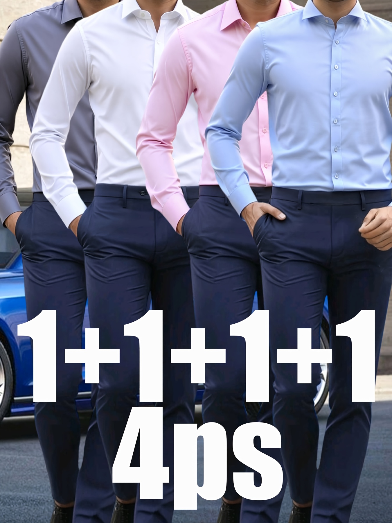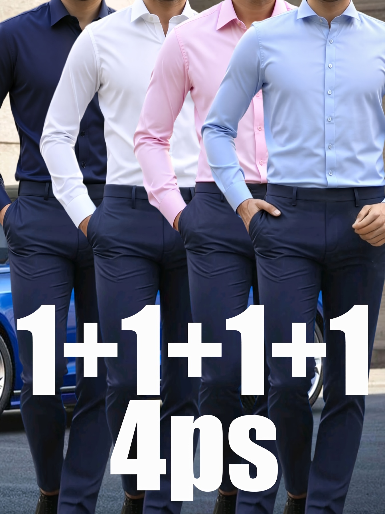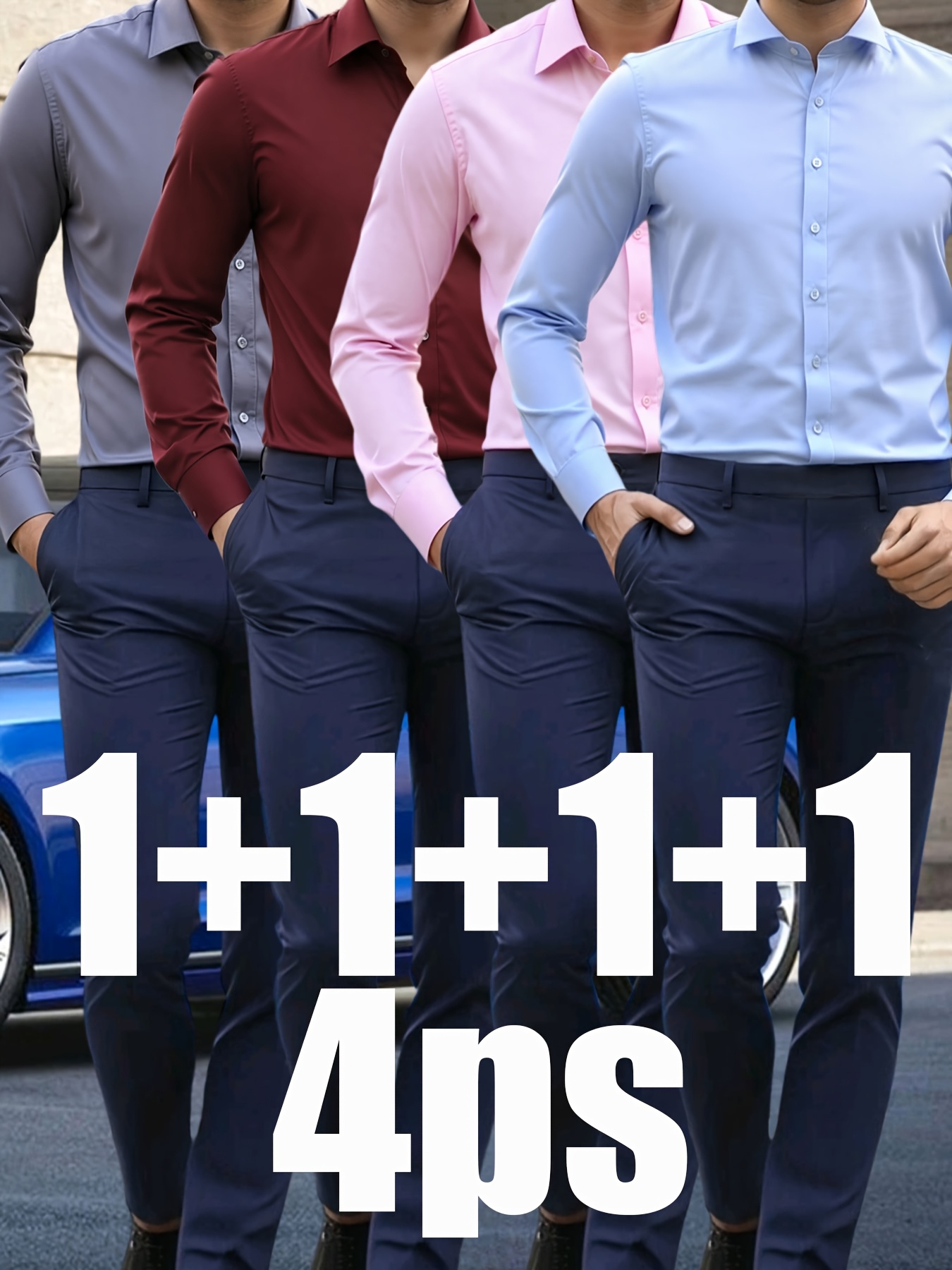 Camisa Elástica Multicolor para Hombre | Color Sólido, Manga Larga, Abotonadura Simple, Detalle de Botones, Adecuada Para Todas las Estaciones y Ocasiones de Salir