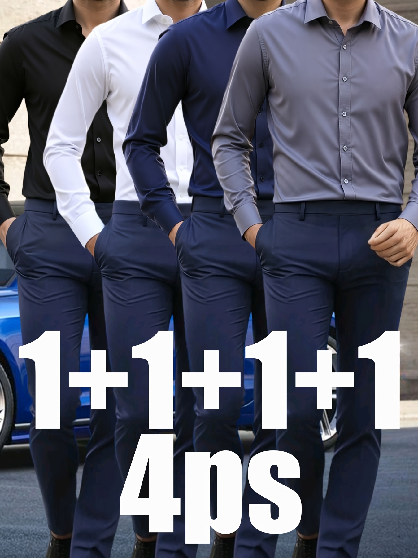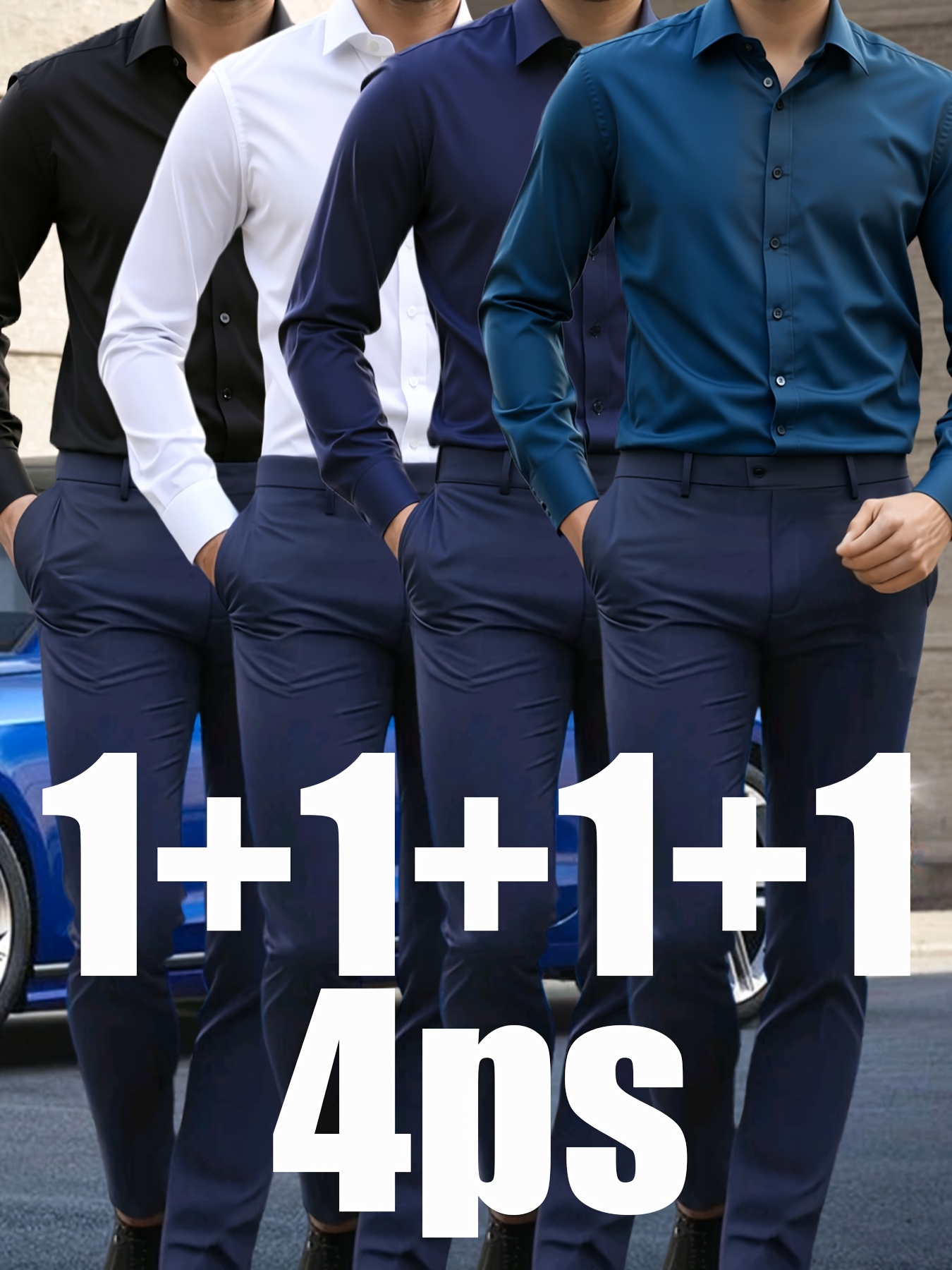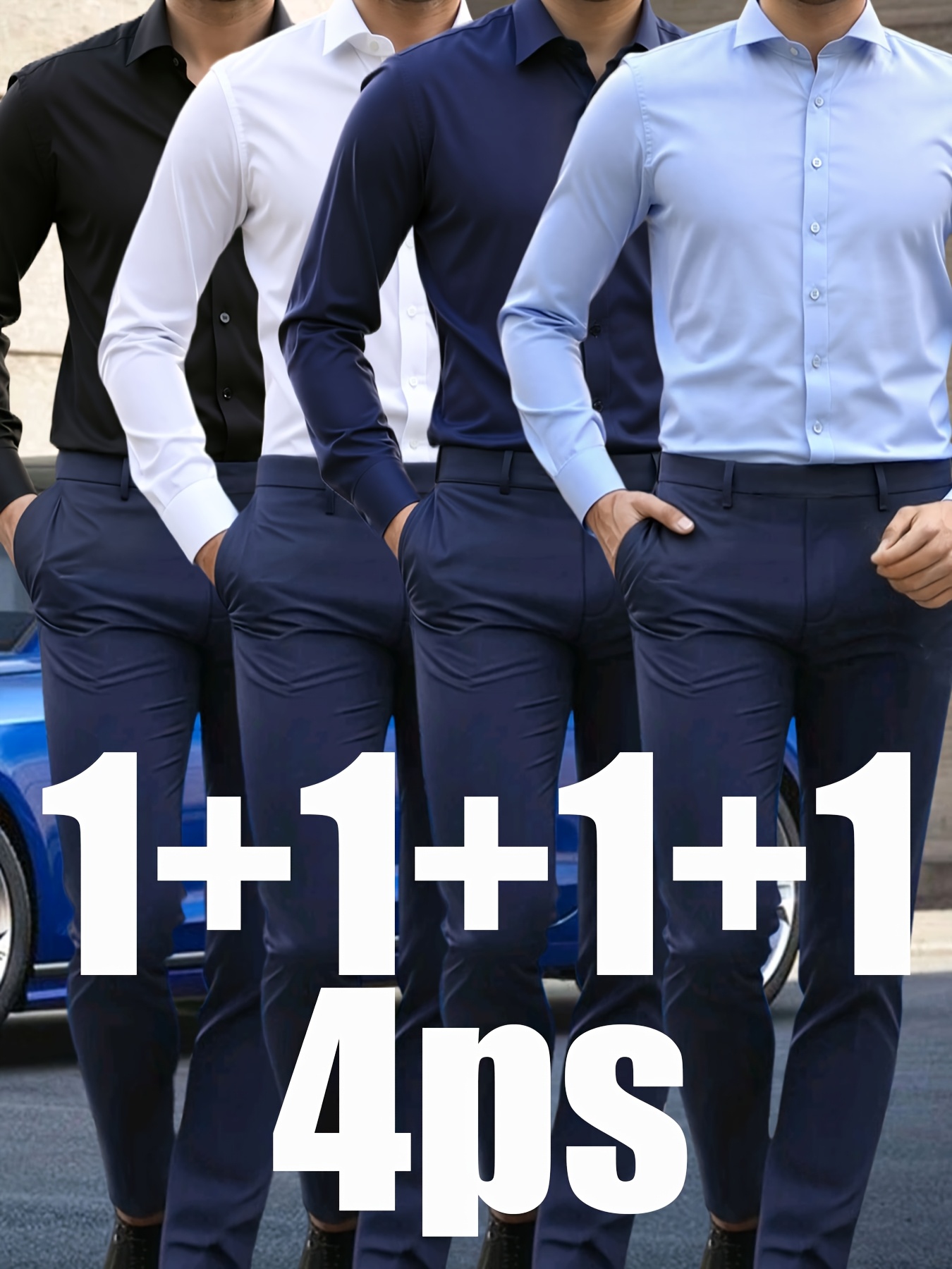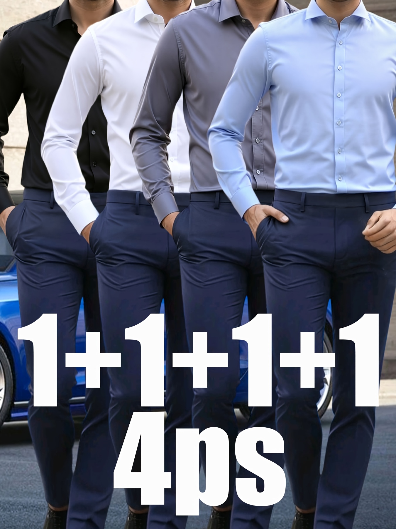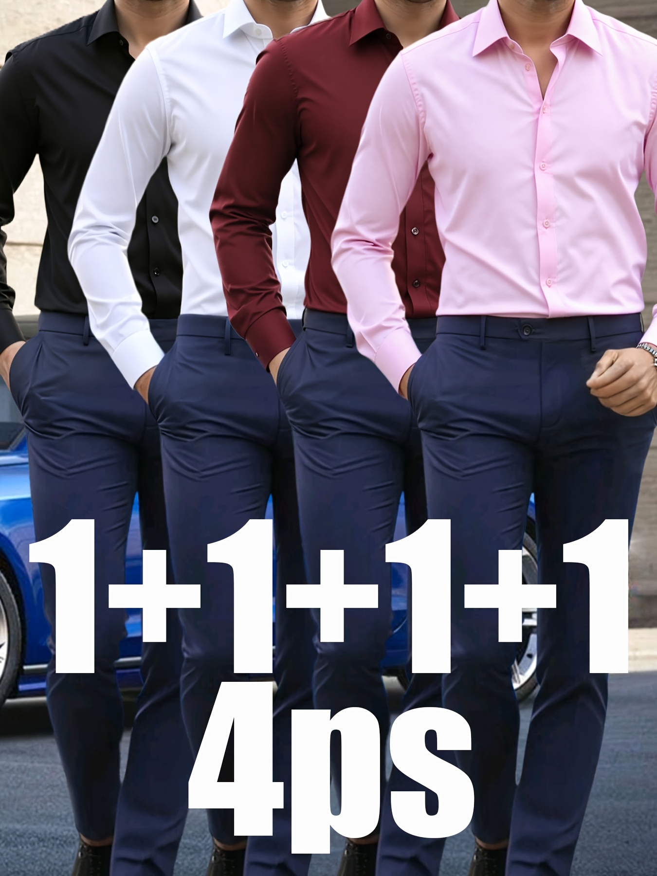 Camisa Elástica Multicolor para Hombre | Color Sólido, Manga Larga, Abotonadura Simple, Detalle de Botones, Adecuada Para Todas las Estaciones y Ocasiones de Salir