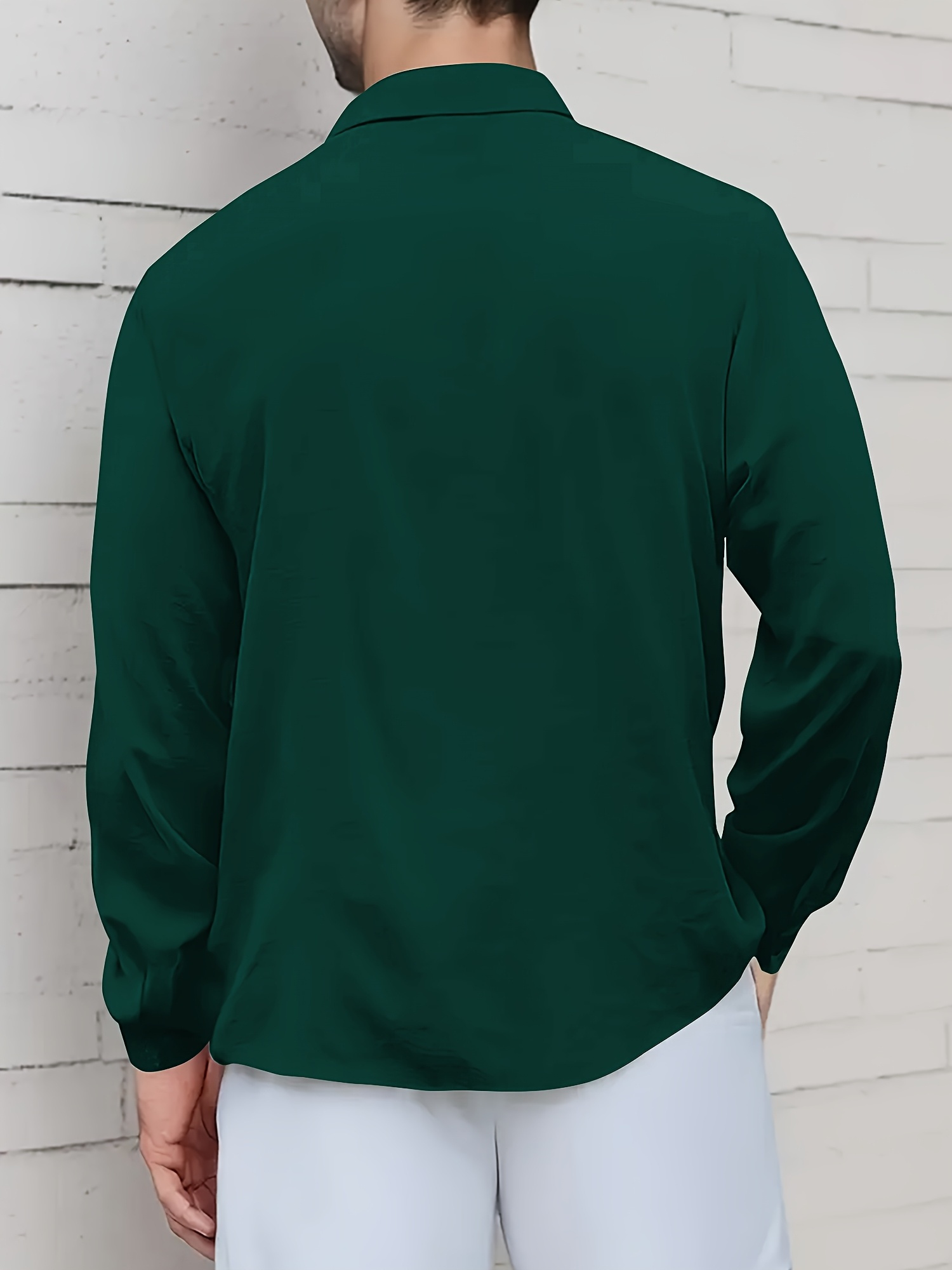 Camisa negra de manga larga para hombre con diseño geométrico – Corte ajustado, material ligero, ideal para eventos casuales o formales, top versátil | Look elegante | Tacto suave
