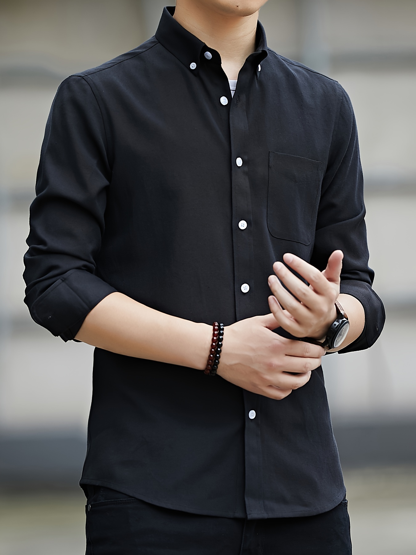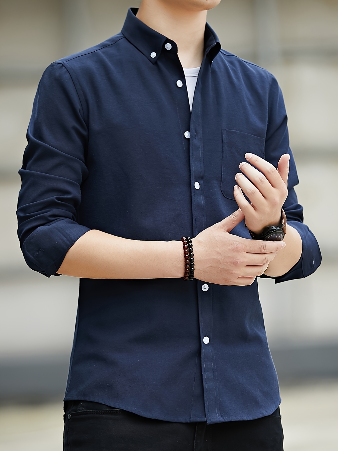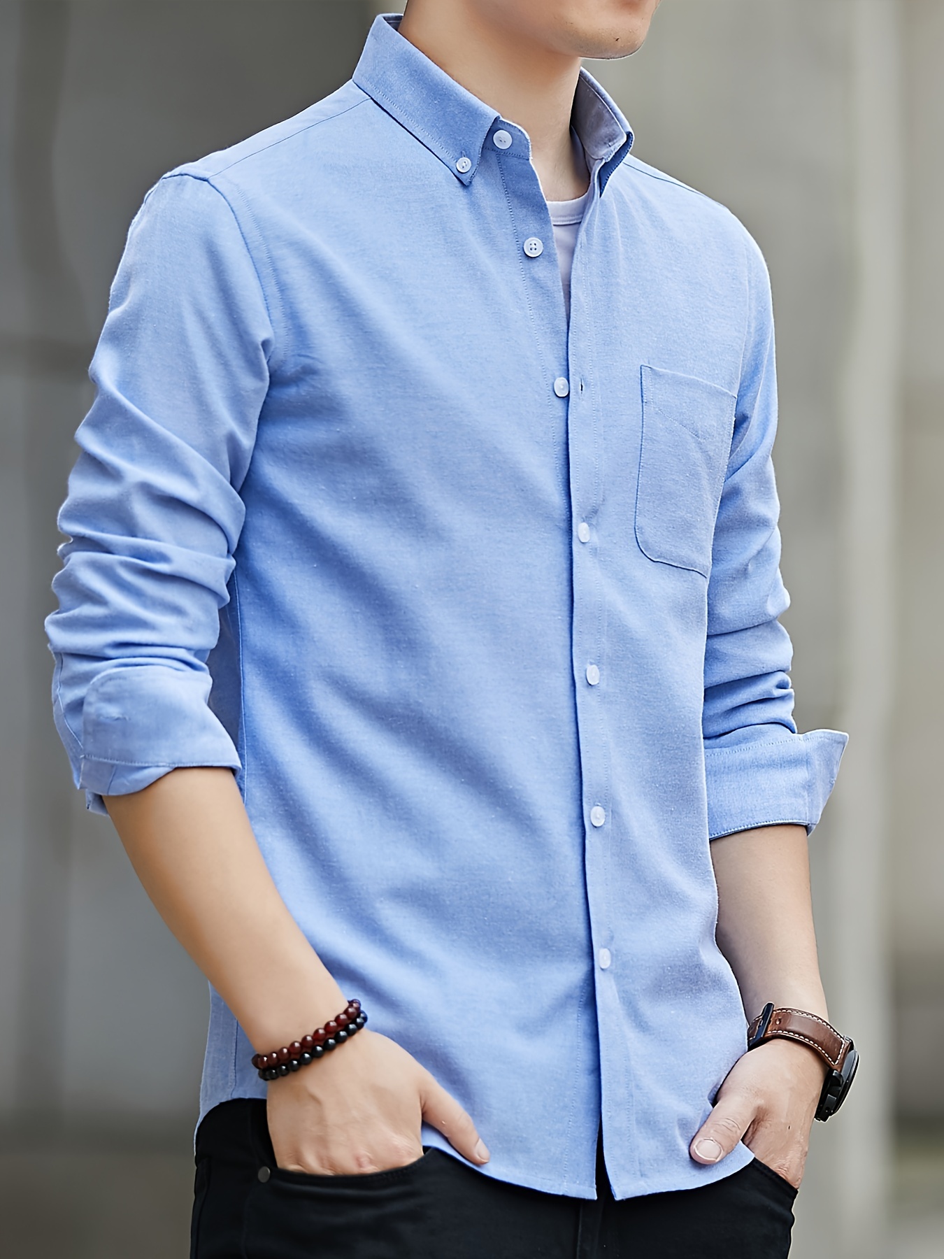 Camisa Oxford Clásica de Manga Larga con Botones para Hombre | Color Sólido con Bolsillo en el Pecho, Estilo Casual, Tejido No Elástico, Adecuada para Primavera/Otoño