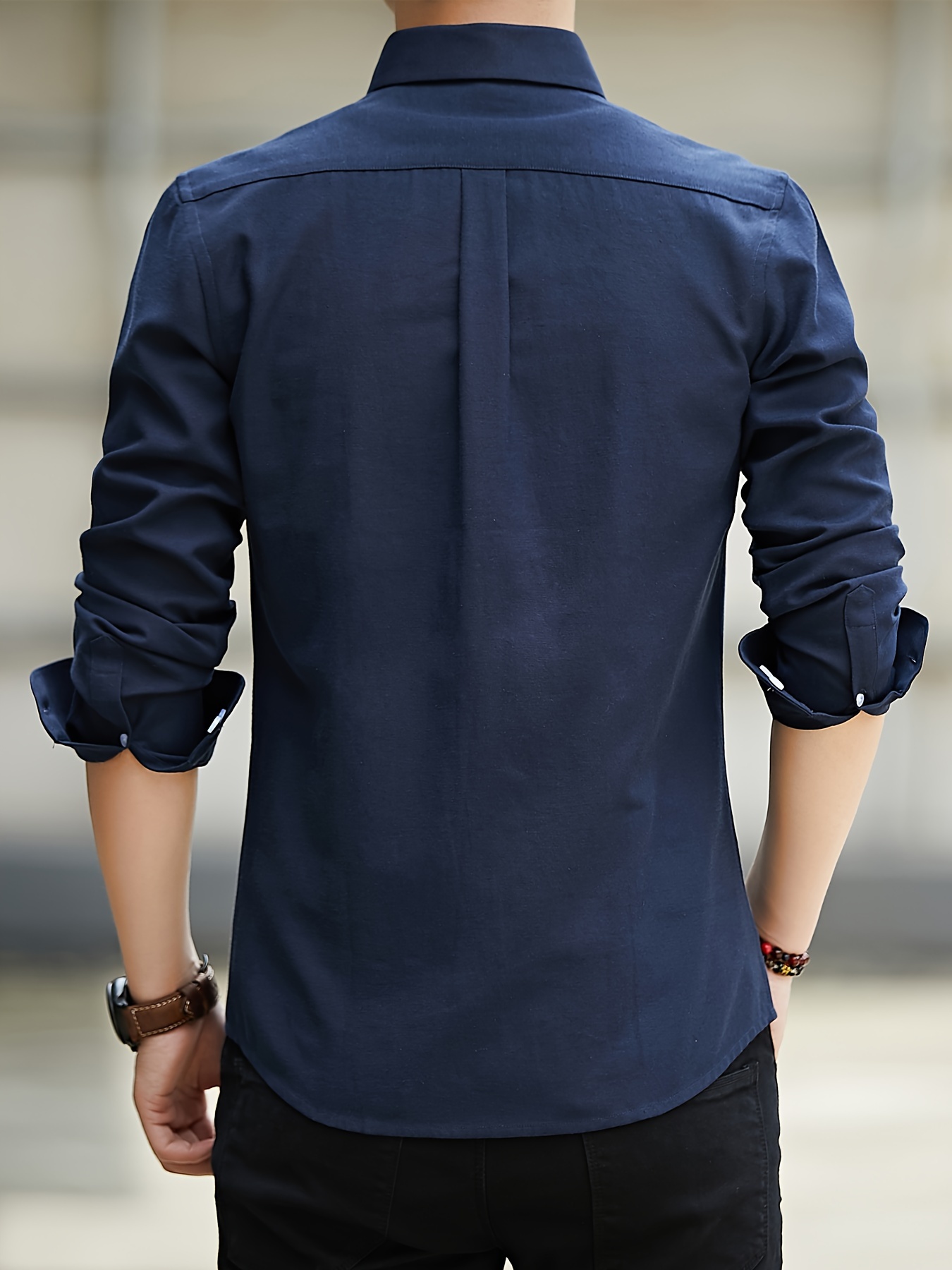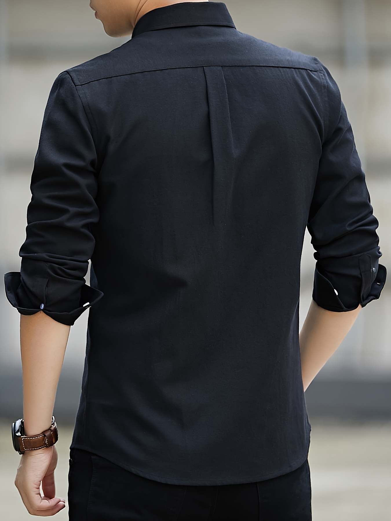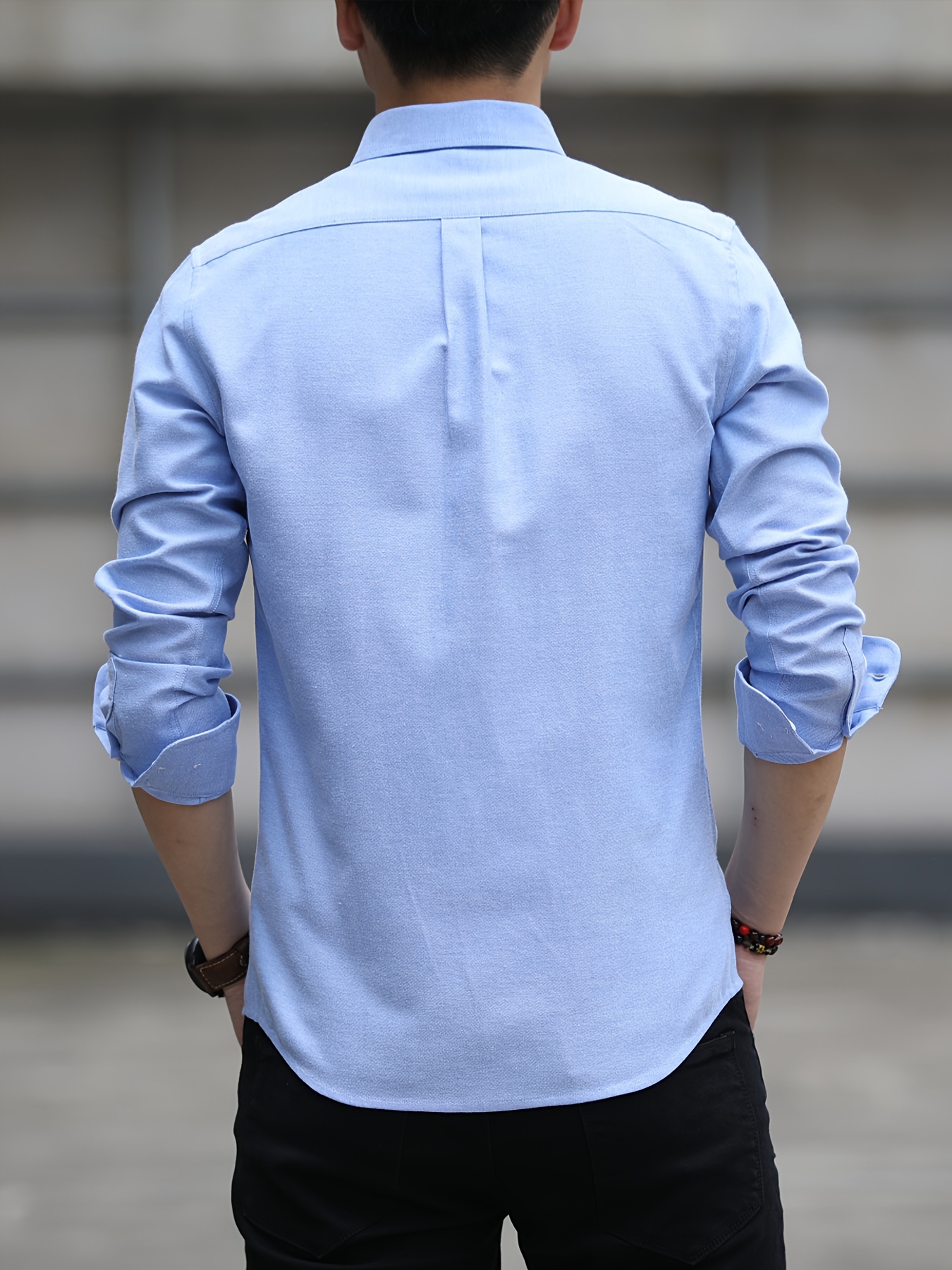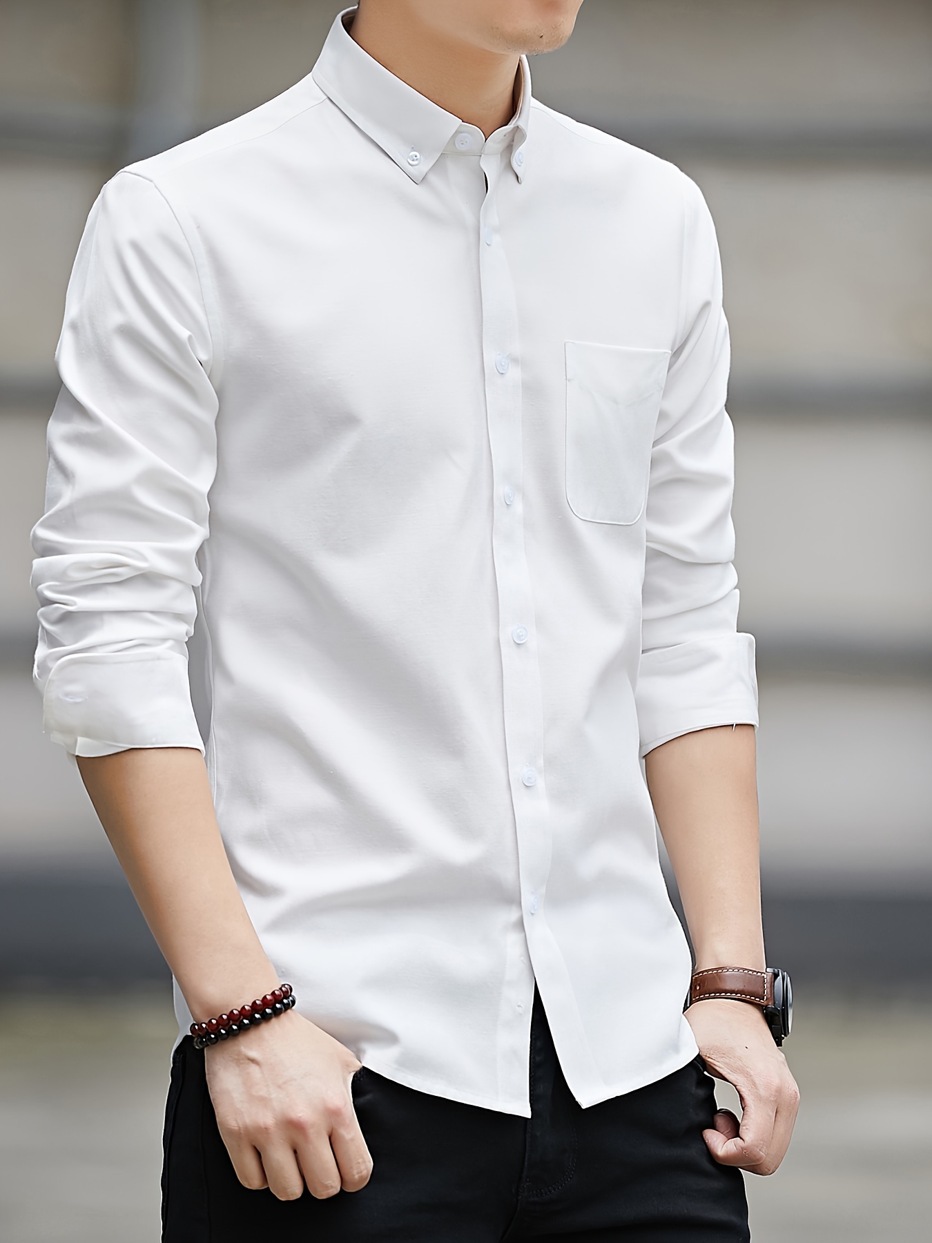 Camisa Oxford Clásica de Manga Larga con Botones para Hombre | Color Sólido con Bolsillo en el Pecho, Estilo Casual, Tejido No Elástico, Adecuada para Primavera/Otoño