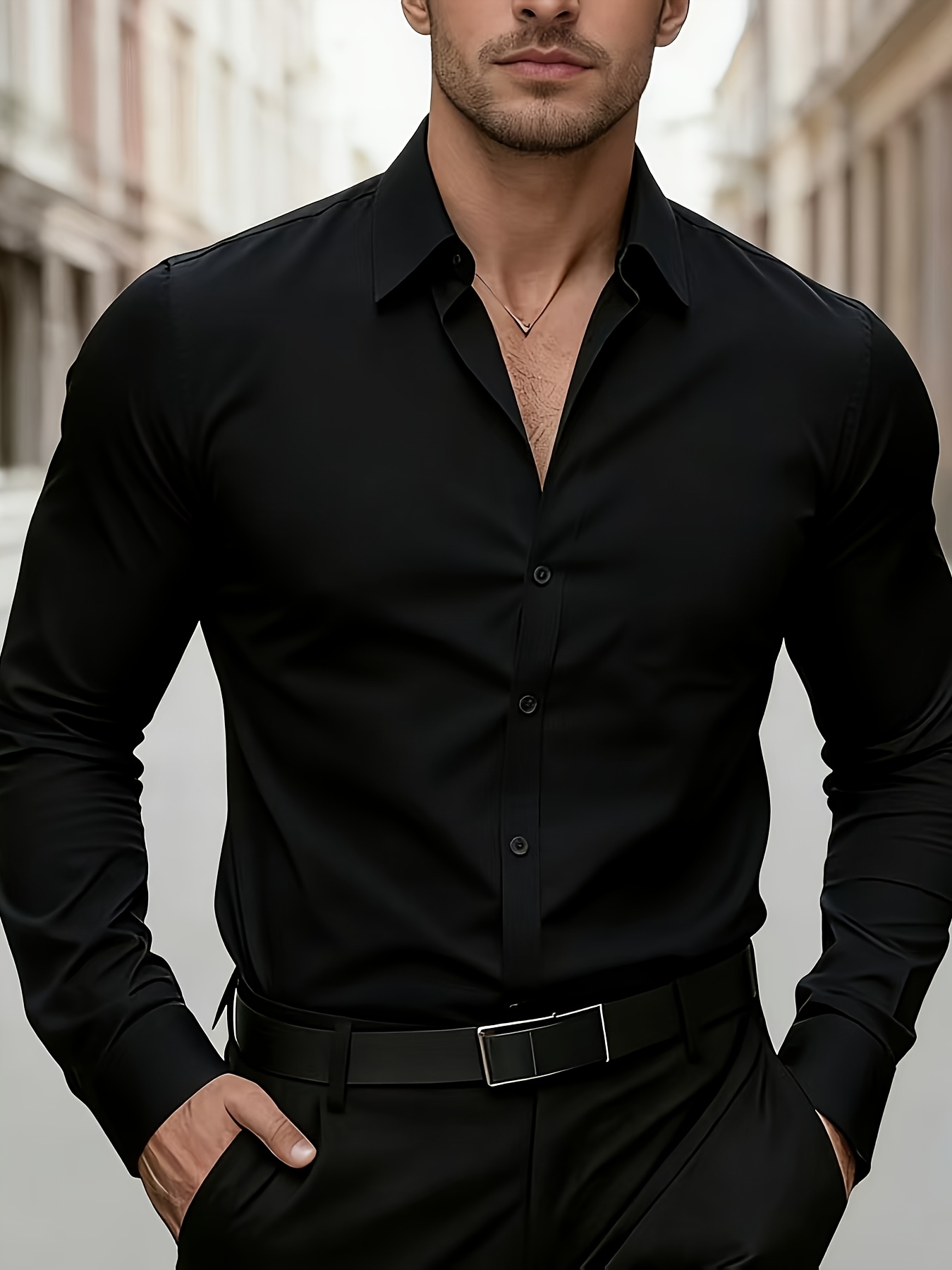 Material: Poliéster Otro material: elastano Largo de manga: Manga larga Tipo de manga: Manga de la camisa Detalles: Botón Estampado: Color sólido Público objetivo: Hombres Escarpado: No Tela: Ligero…