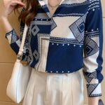 Camisas estampadas de estilo europeo y americano para primavera y verano, con diseño de cuello y mangas largas, perfectas para uso casual o para ir al trabajo