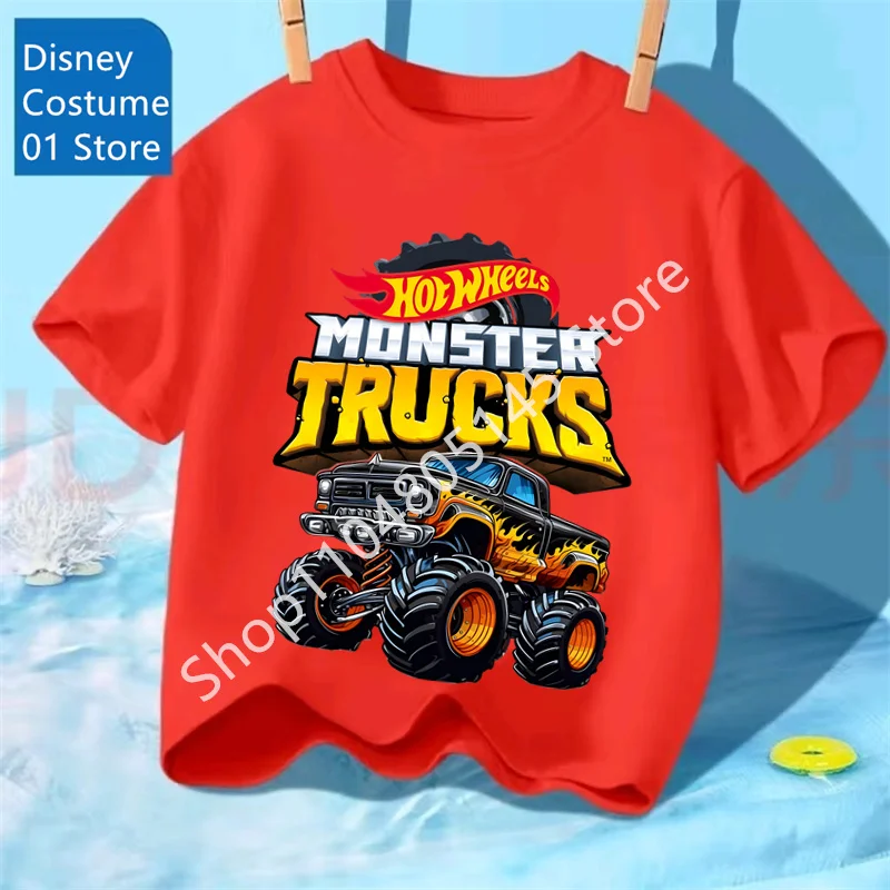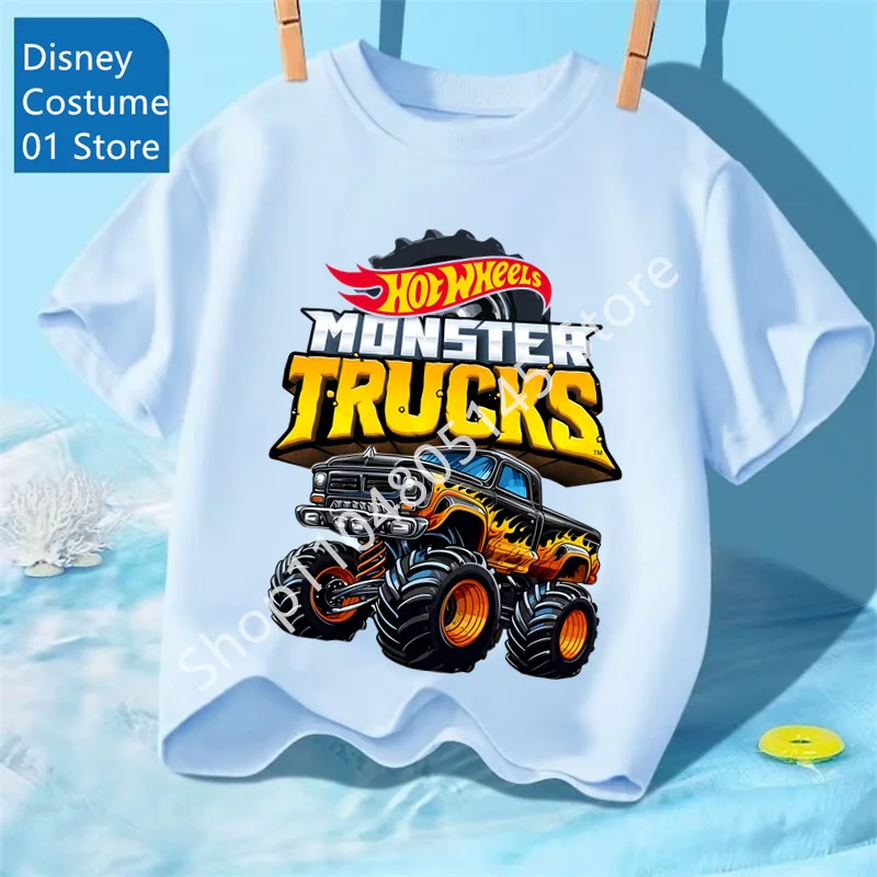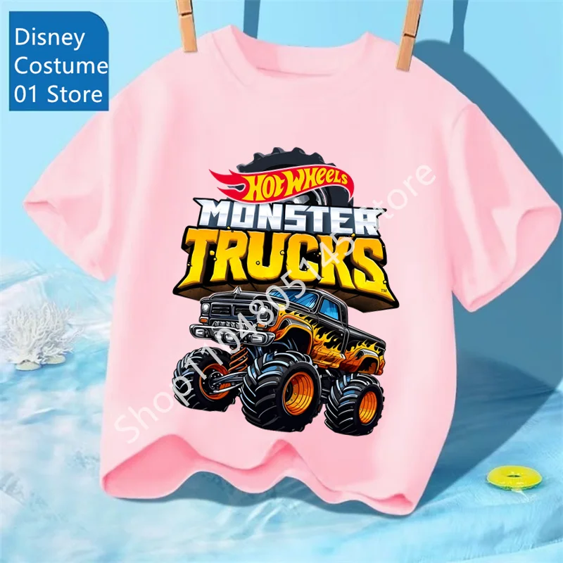 Camiseta de verano para niños, camiseta de Hot Wheels, camisetas de manga corta para niños y niñas, camiseta con estampado de camiones y coches de dibujos animados, ropa para niños