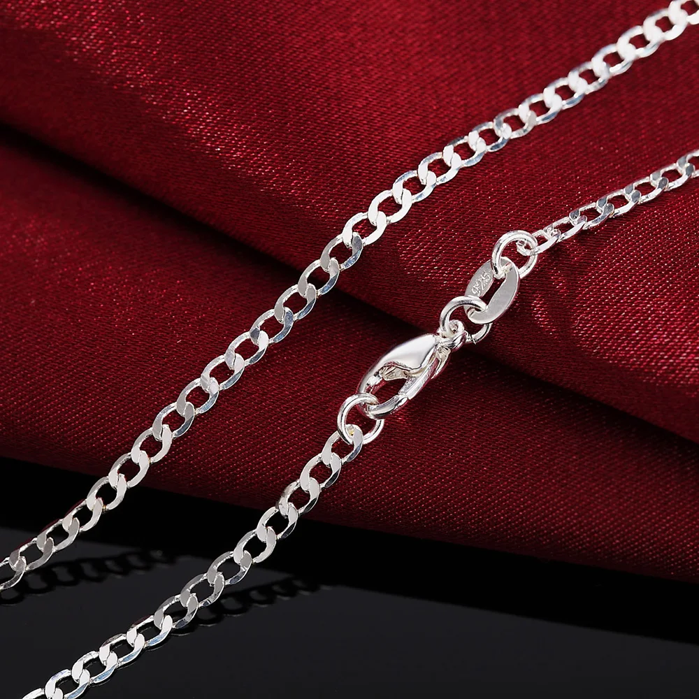 Collar de plata de ley 925 de 16/18/20/22/24/26/28/30 pulgadas, cadena lateral plana clásica de 2MM para mujeres y hombres, joyería para regalo y fiesta