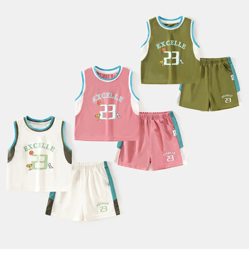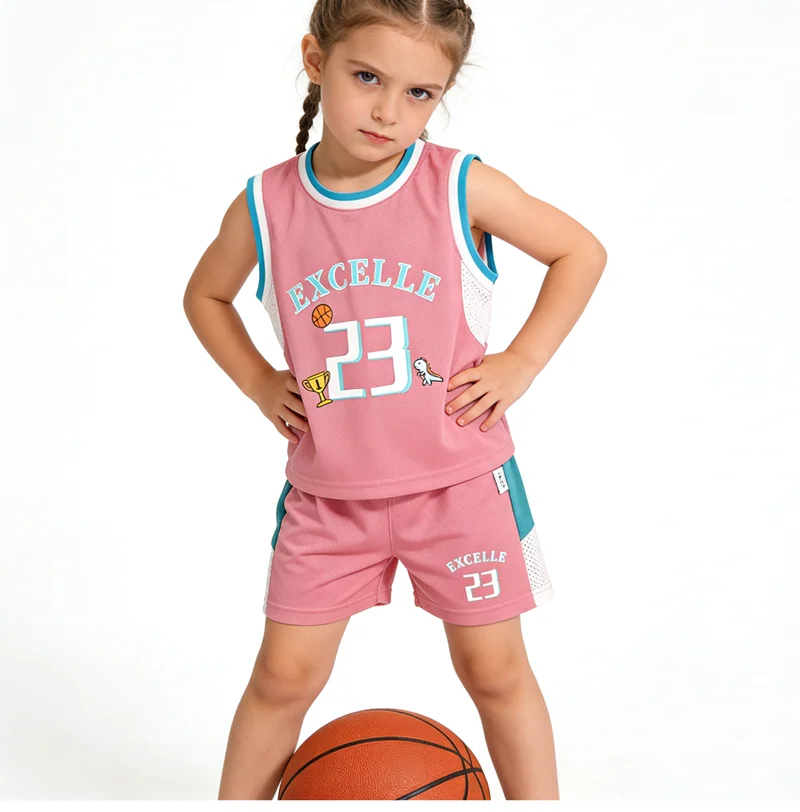 Conjunto de 2 Piezas de Jersey de Baloncesto para Niños y Niñas, Malla Transpirable, Estampado de 23 Pulgadas, Ropa Deportiva Informal para Niños de 1 a 6 Años, Rosa, Verde, Blanco