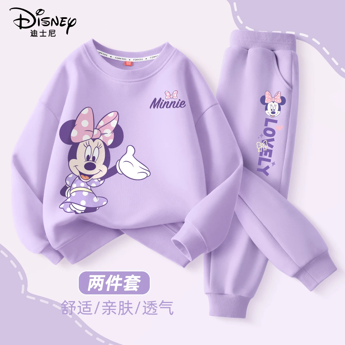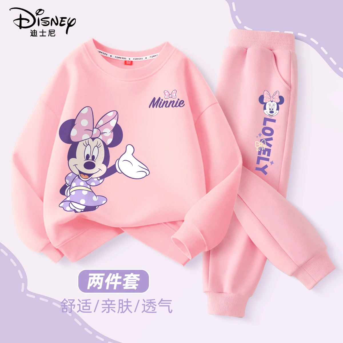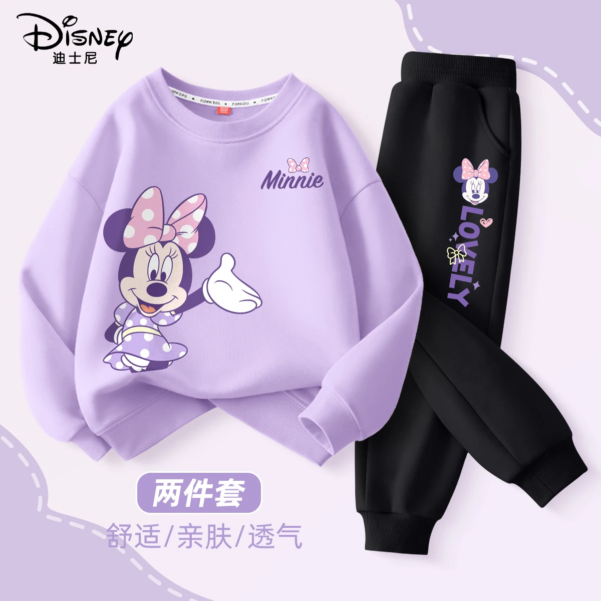 Conjunto de ropa con estampado de Minnie de Disney para niñas, sudaderas para chico y niña, jersey, Top y pantalones, traje de 2 uds, chándales para niños