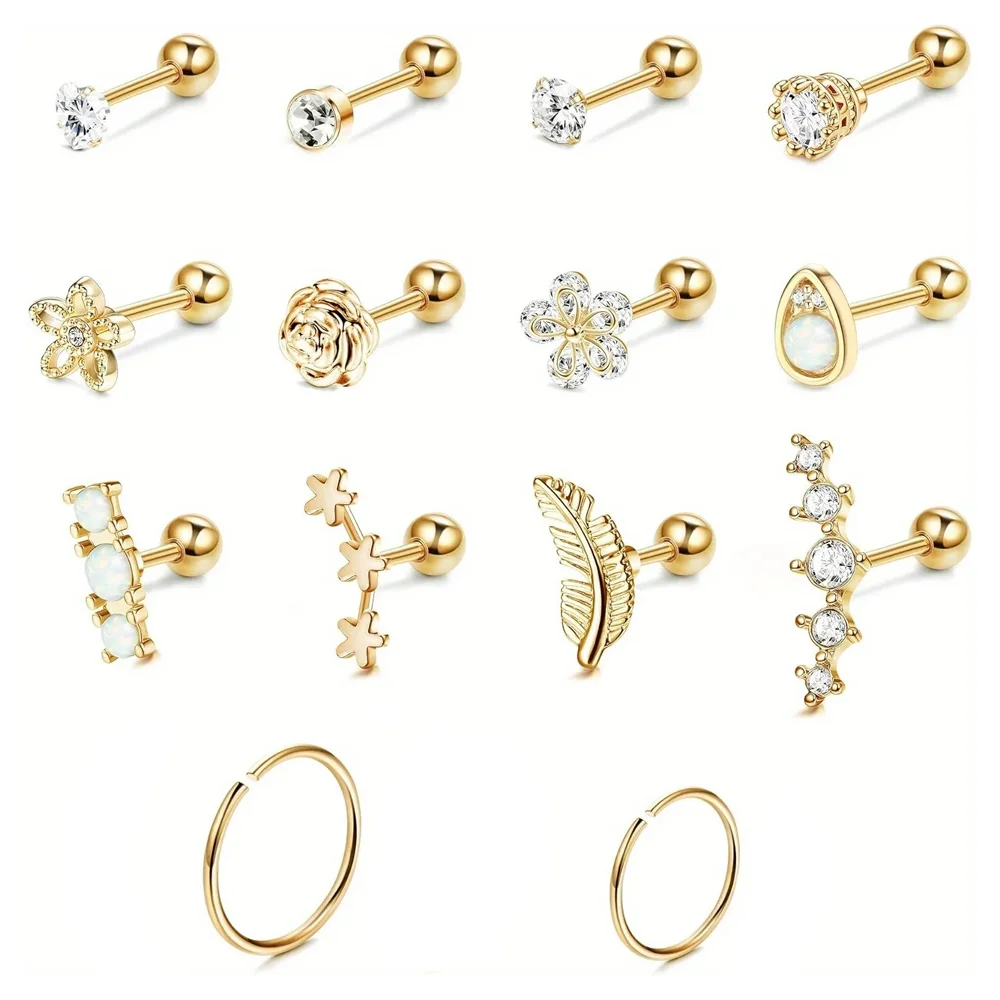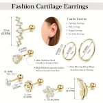 【Fashion &Convenient Design】 Star, flower, feather, heart, shiny cubic zirconia, opal, hoops are classic elements in cartilage tragus earrings. These elements are fashionable, personalized, elegant, simple and cute. Convenient Design: UPGRAGE single thread rotation, 4mm/0.16in screw ball designs are easy for wearing and taking off. They are suitable for different occasions, party, commuting and daily life.