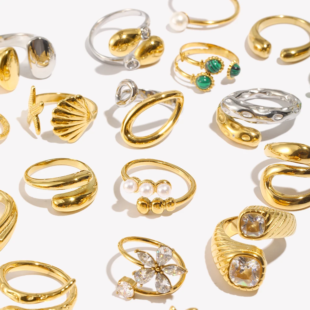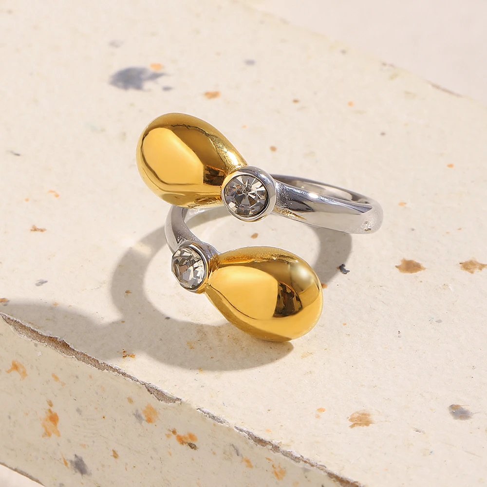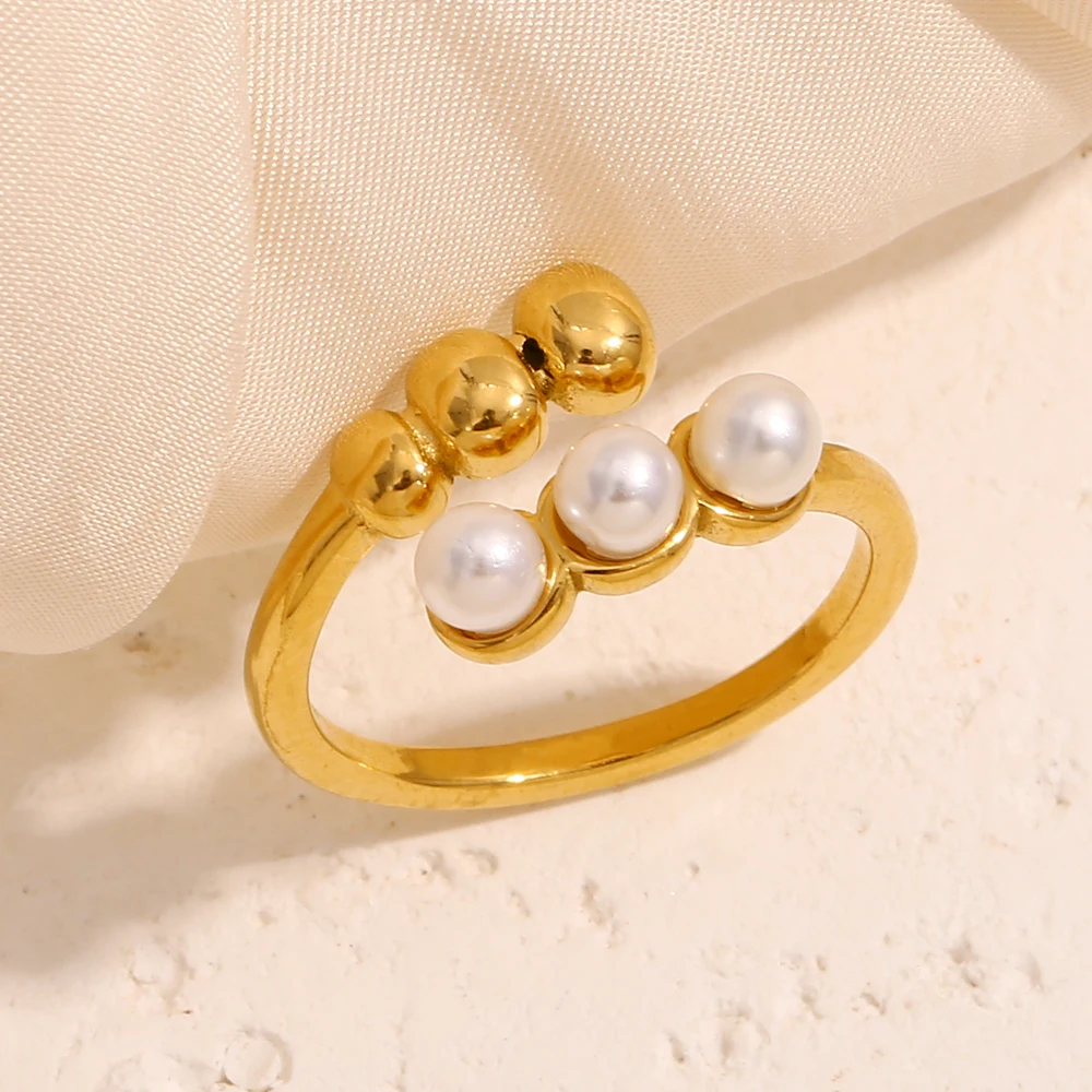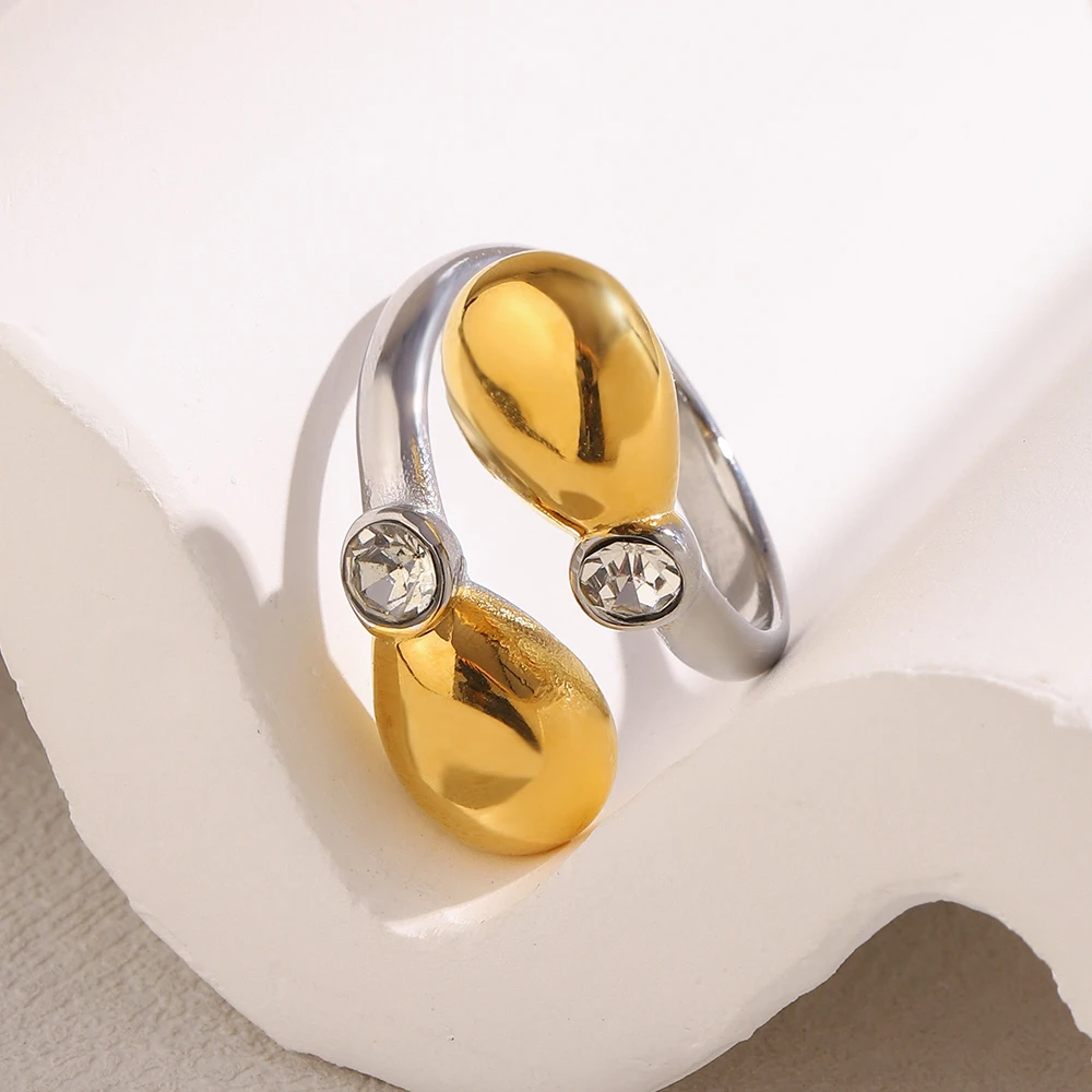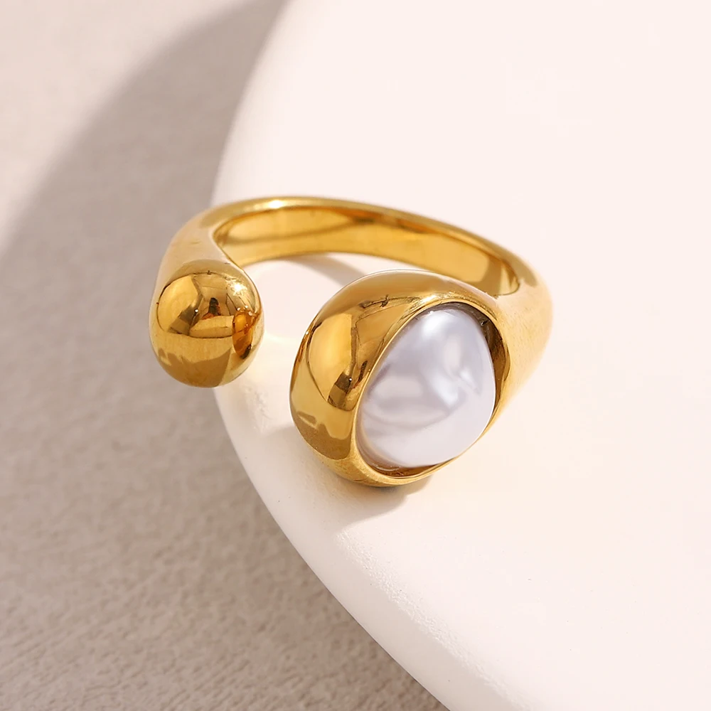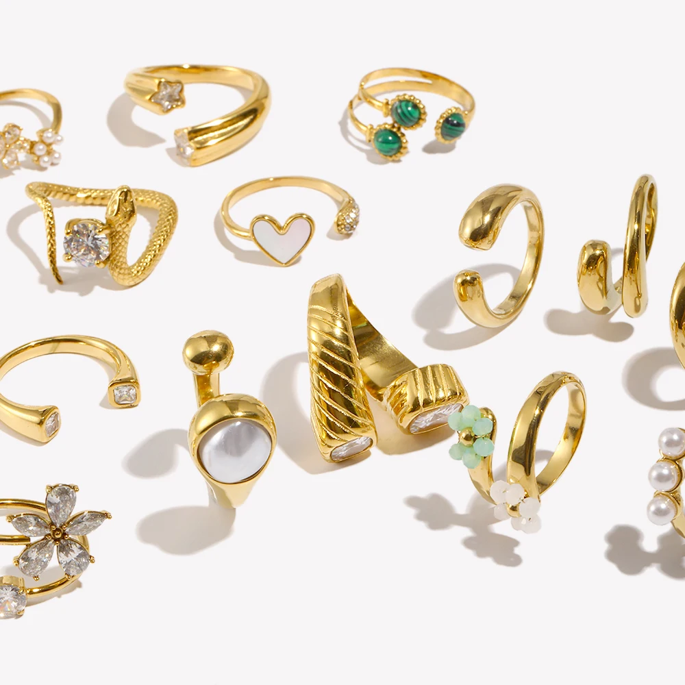 E.B.belle corazón claro circón flor perla doble cabeza de serpiente anillo abierto chapado en oro de 18 quilates joyería de fiesta de acero inoxidable para mujer
