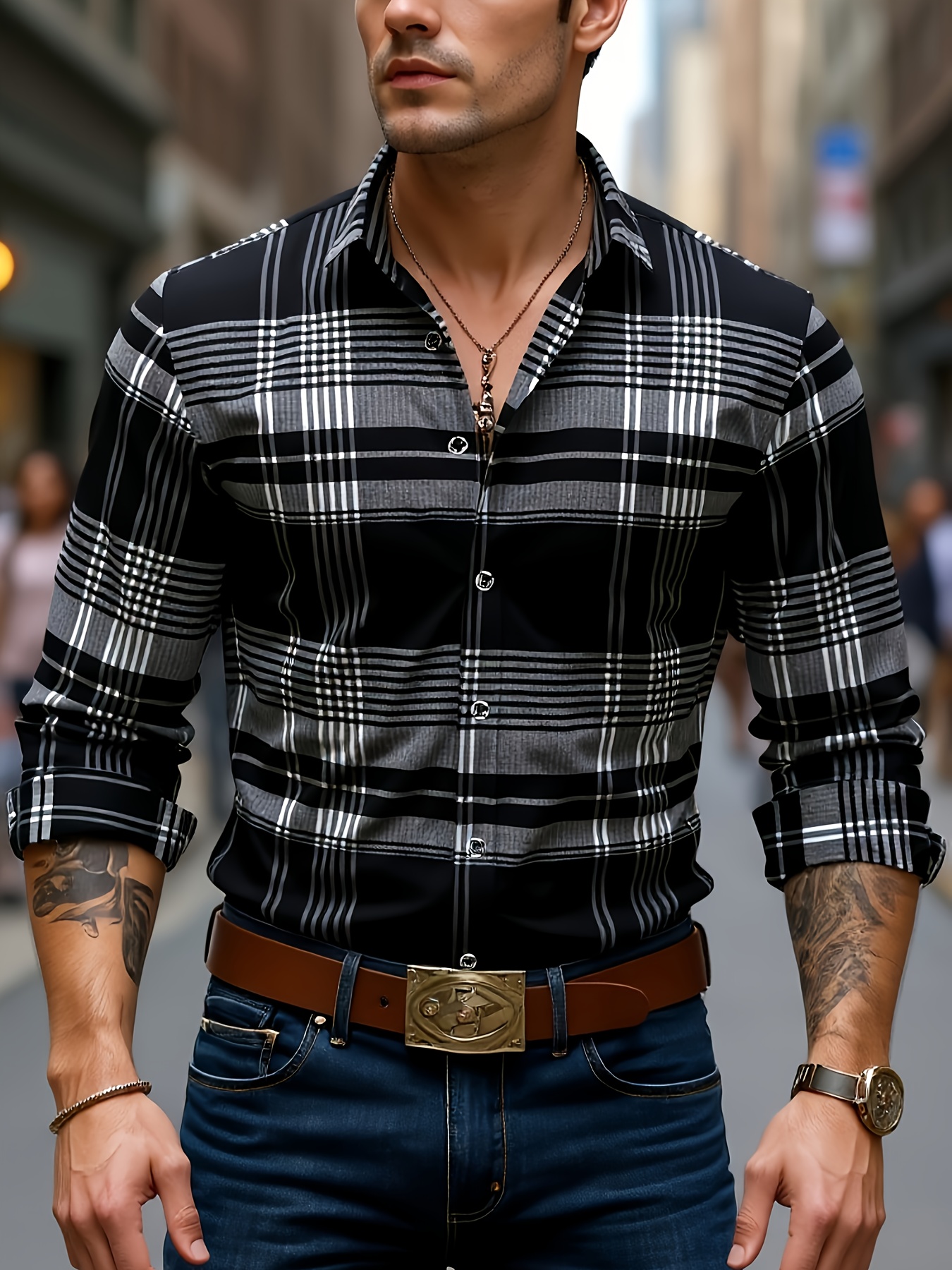 Sé el primero en valorar “¡Eleva tu estilo! Camisa de manga larga para hombre a cuadros negros y grises, desbloqueando nuevas tendencias de moda” Cancelar respuesta