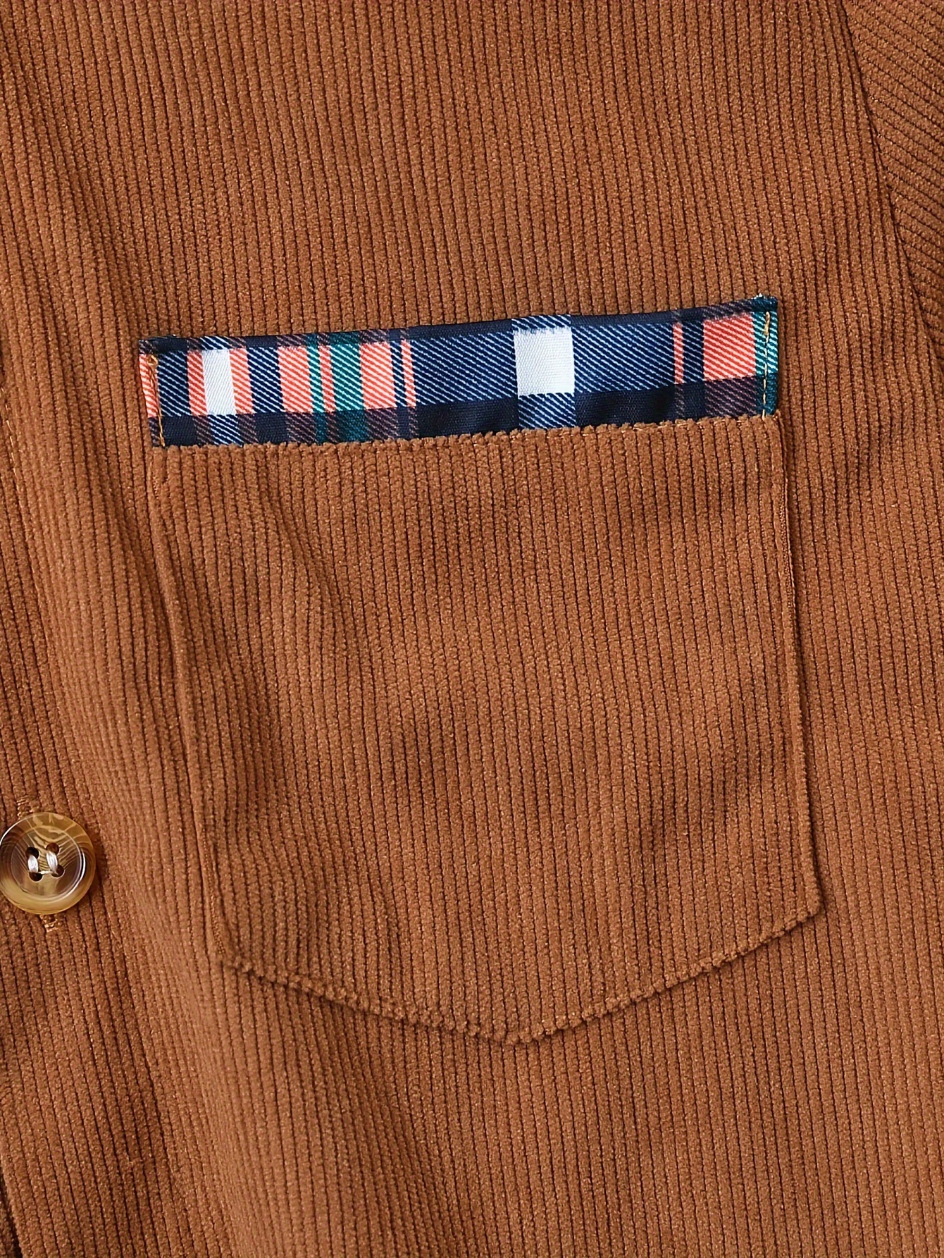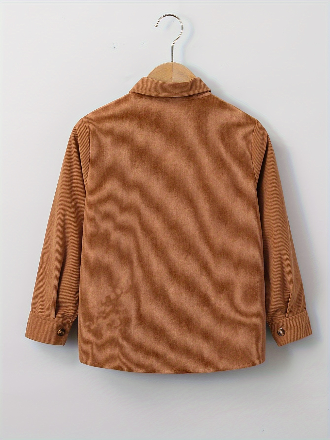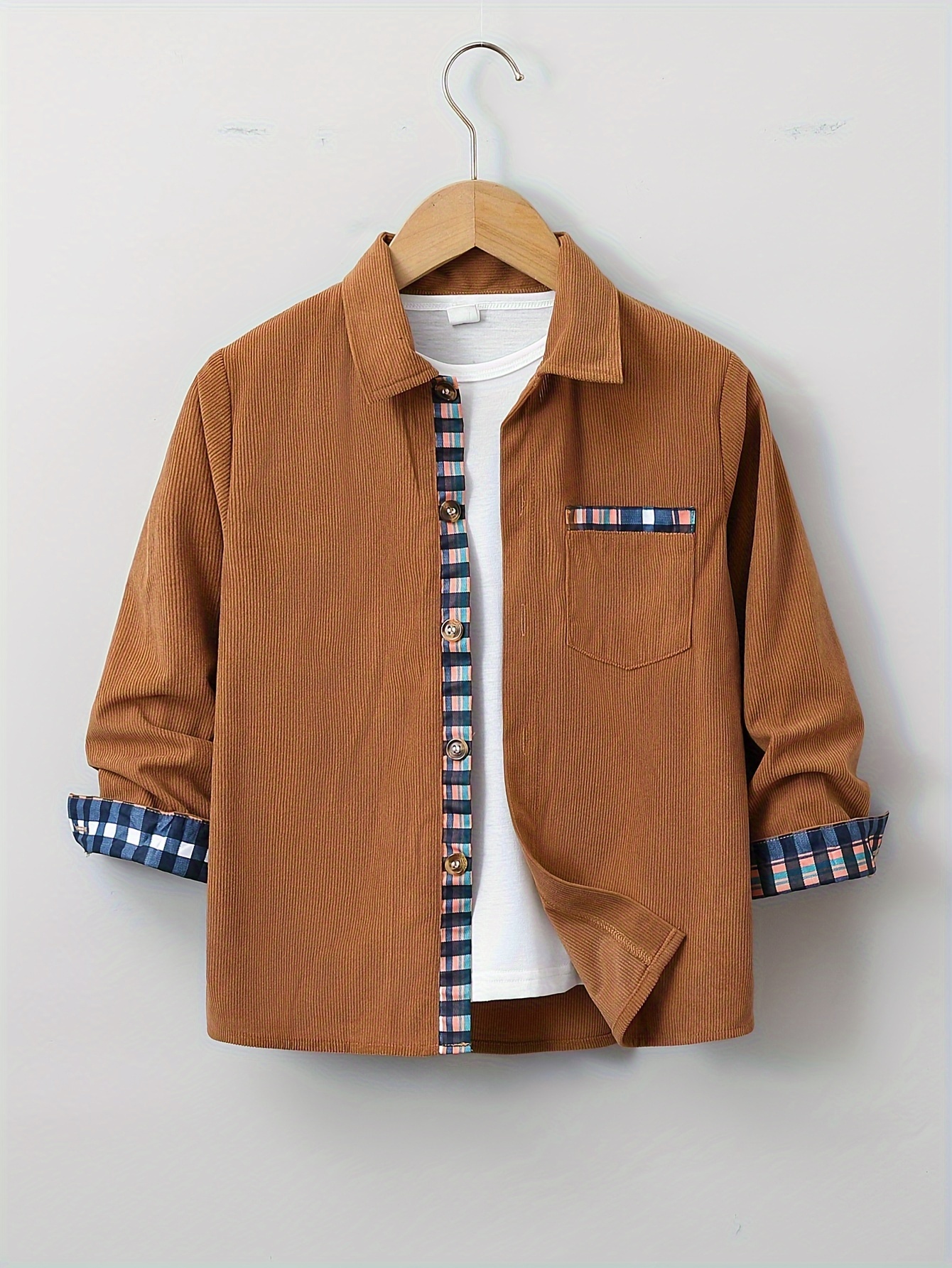 Este es un solo artículo (no incluye ropa interior): una camisa de pana de manga larga, elegante y casual, para edades de 130-170, con un diseño retro de color sólido y patchwork a cuadros, ideal para primavera y otoño.