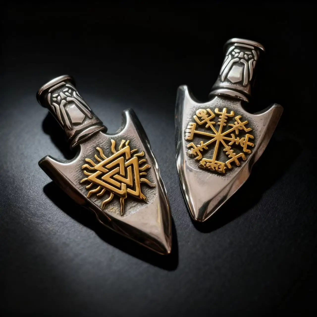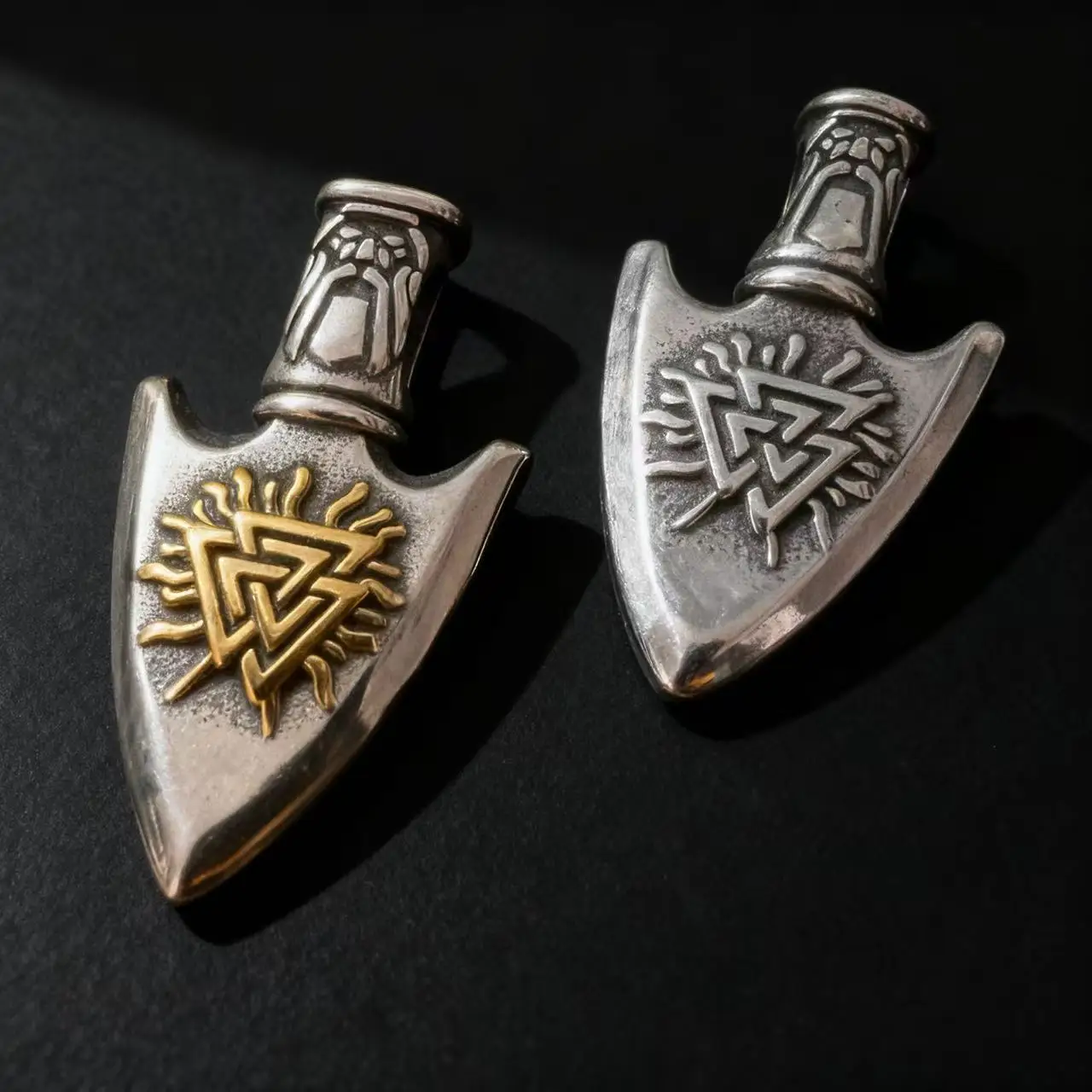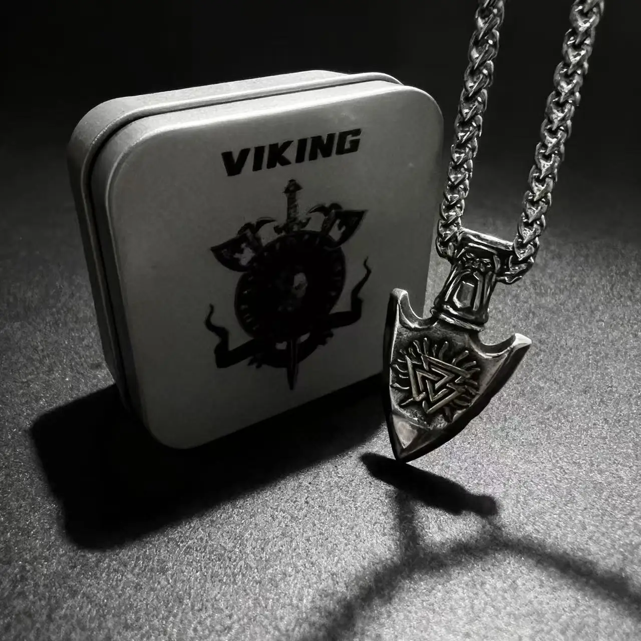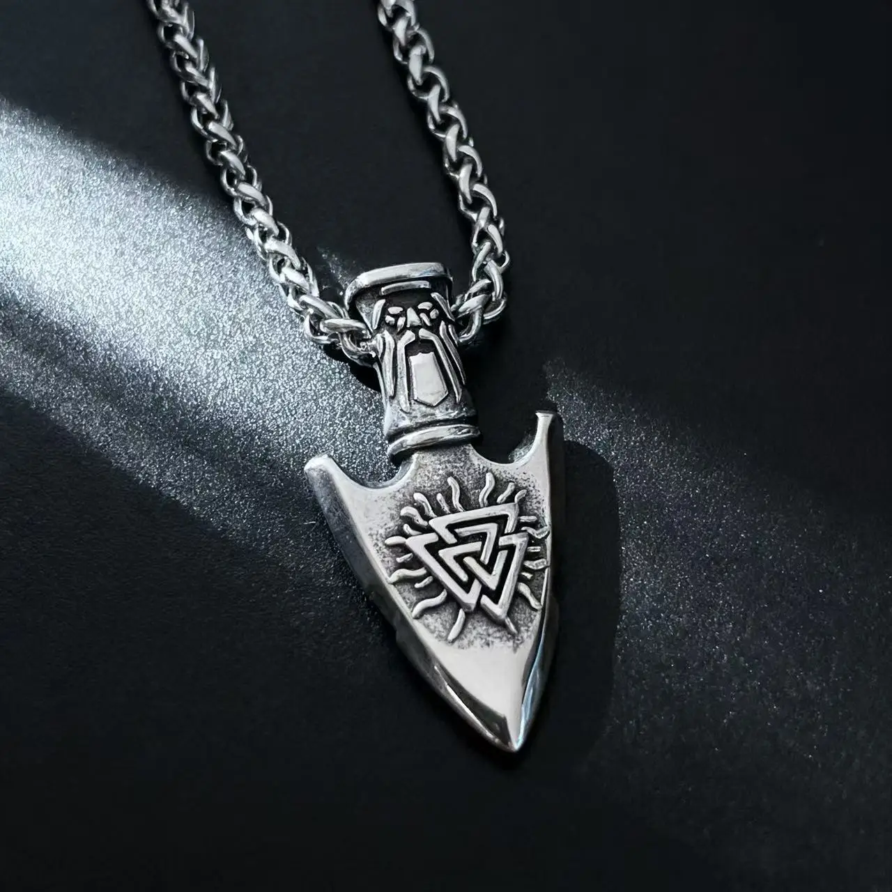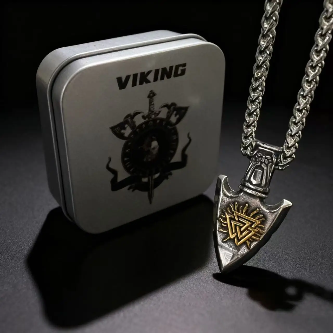 Con un exclusivo colgante de runa vikinga, este collar combina formas geométricas con un motivo Odín nórdico vintage.