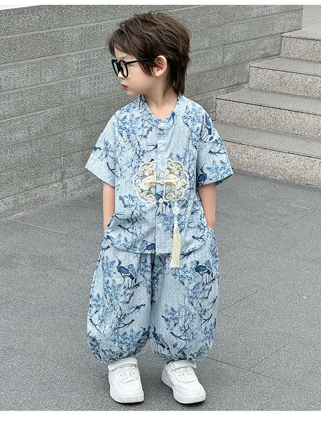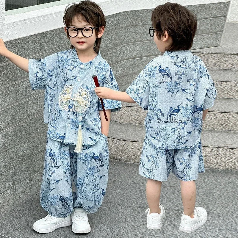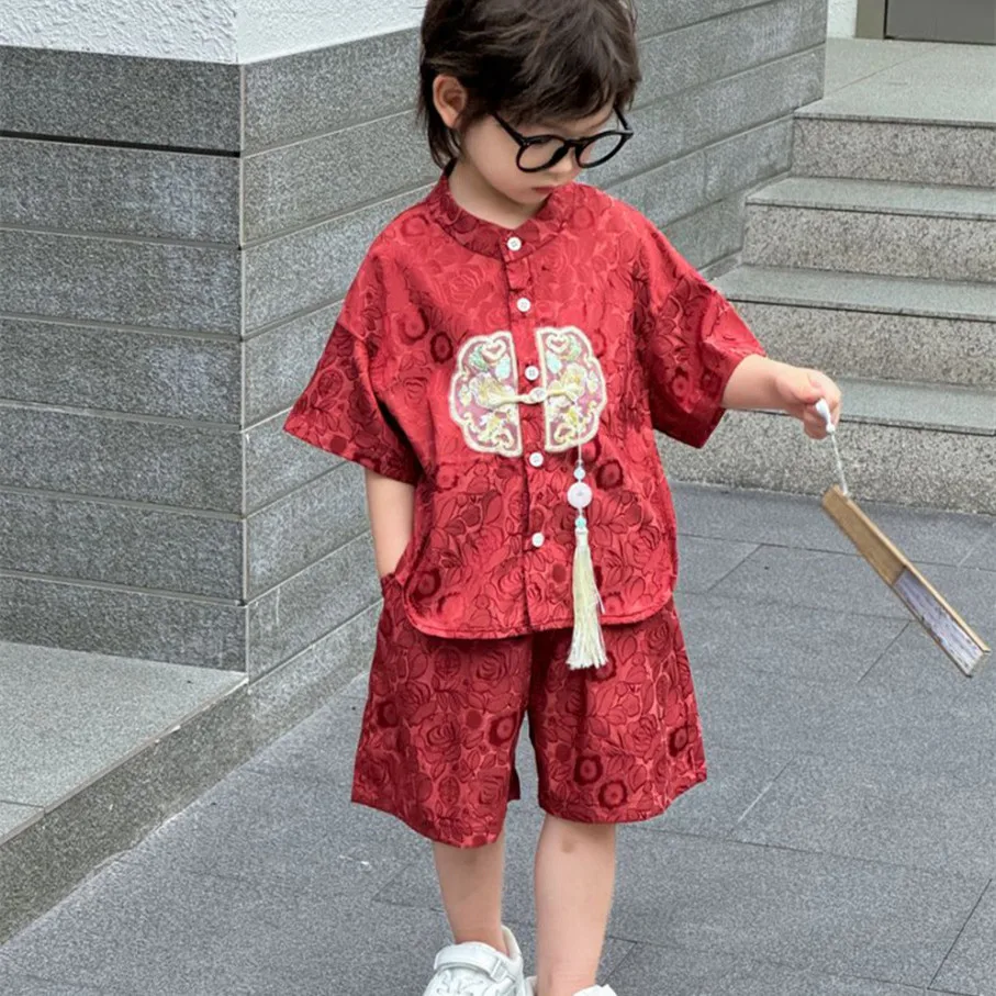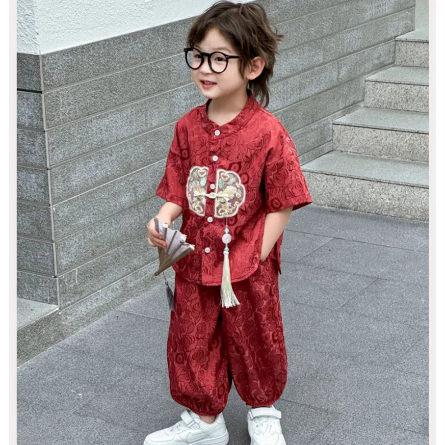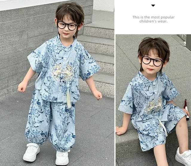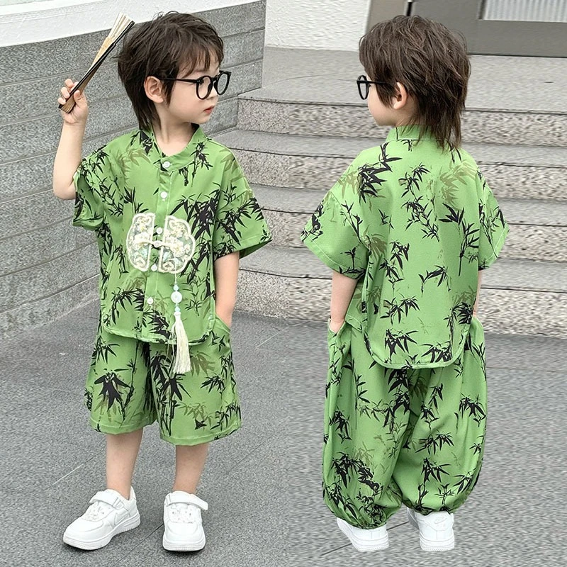 Moda bebé Tang disfraz Tops pantalones conjunto de dos piezas traje de niño conjuntos casuales para niños verano Tweens niños Hanfu traje ropa para niños