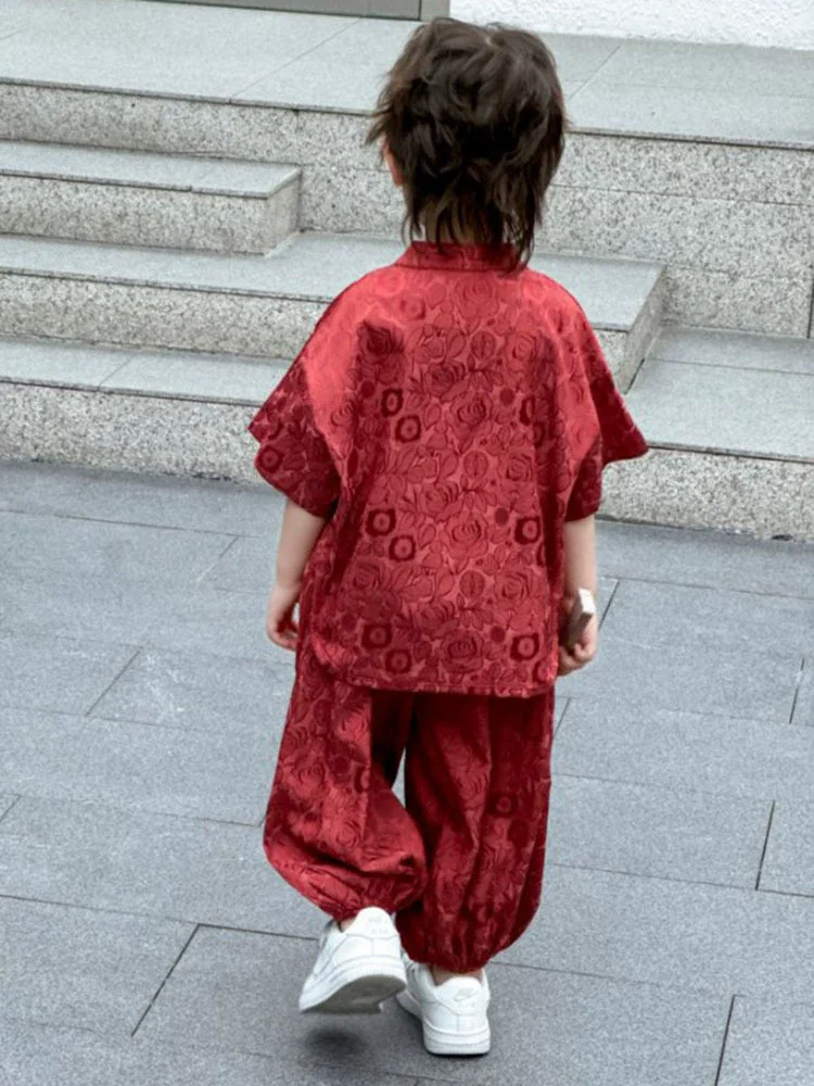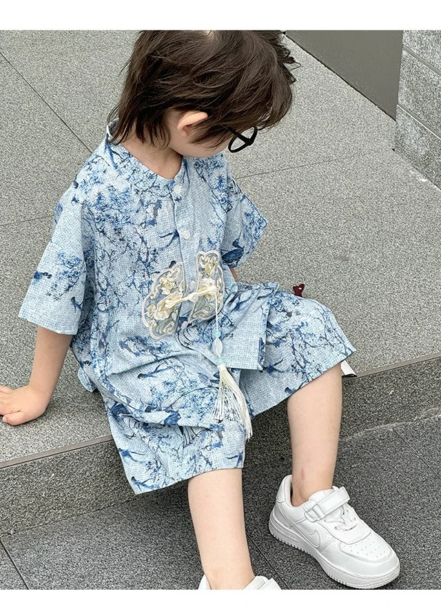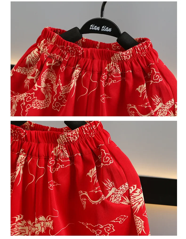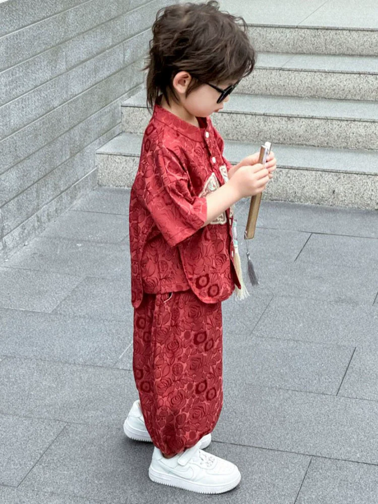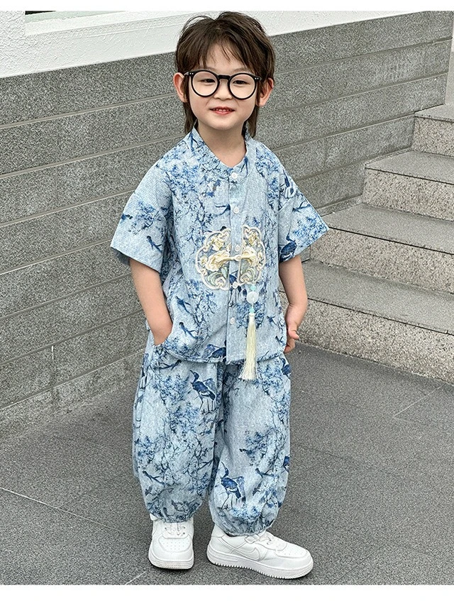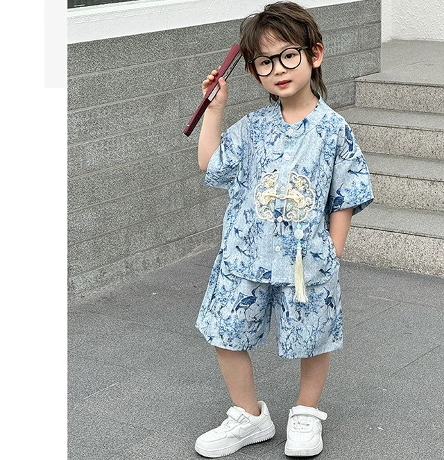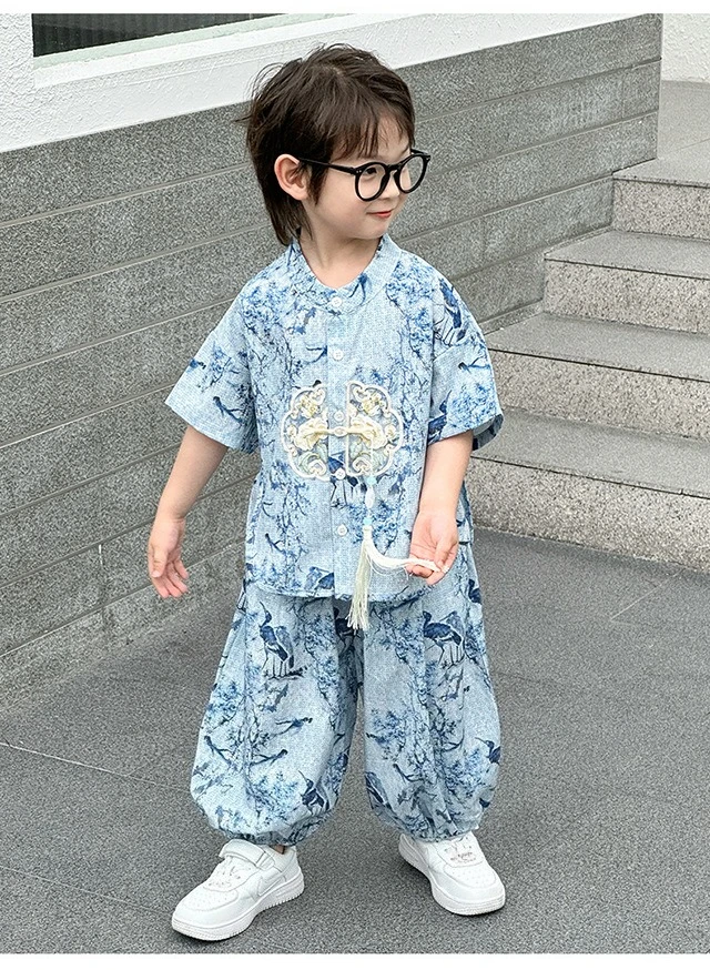 Moda bebé Tang disfraz Tops pantalones conjunto de dos piezas traje de niño conjuntos casuales para niños verano Tweens niños Hanfu traje ropa para niños
