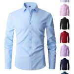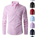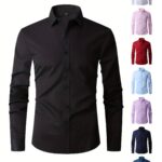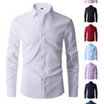 Nueva camisa de manga larga para hombres, ajuste slim para adultos jóvenes, camisa blanca casual de negocios en color sólido, disponible en tallas grandes.