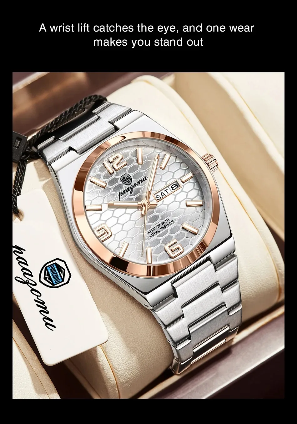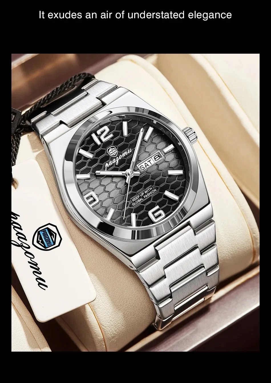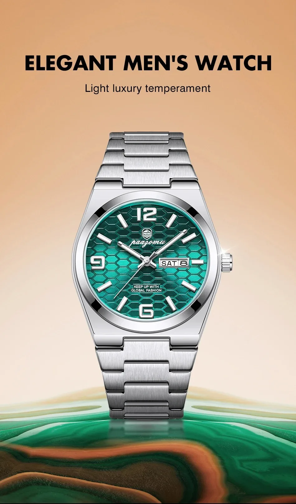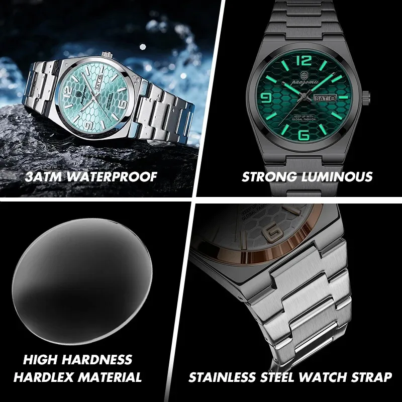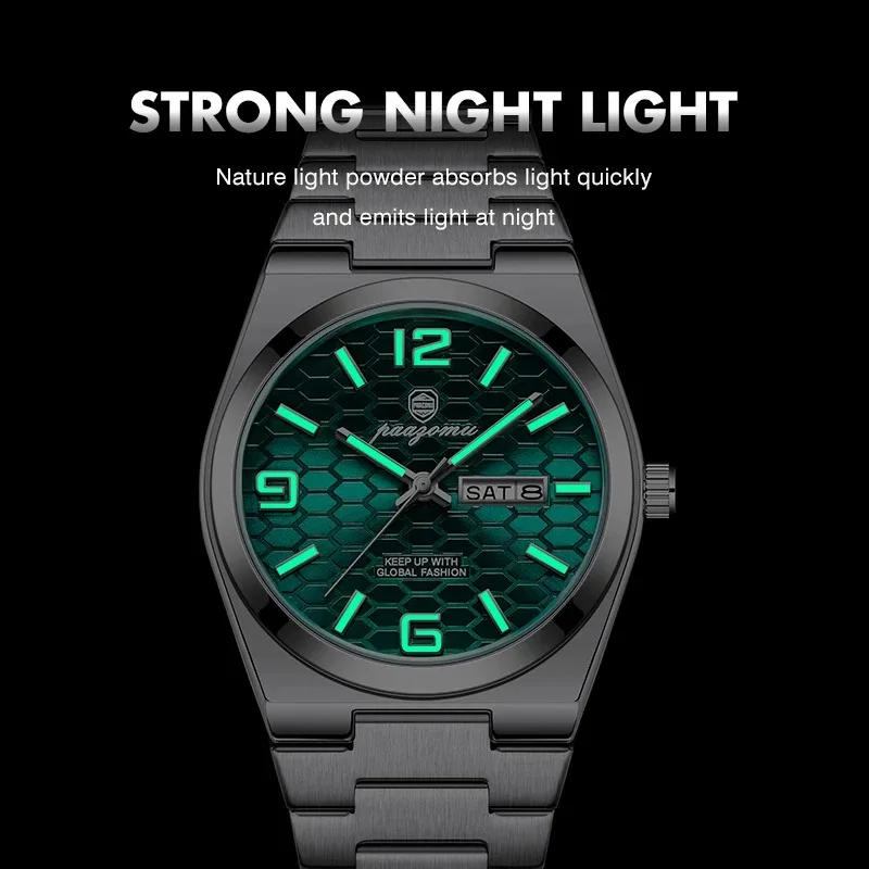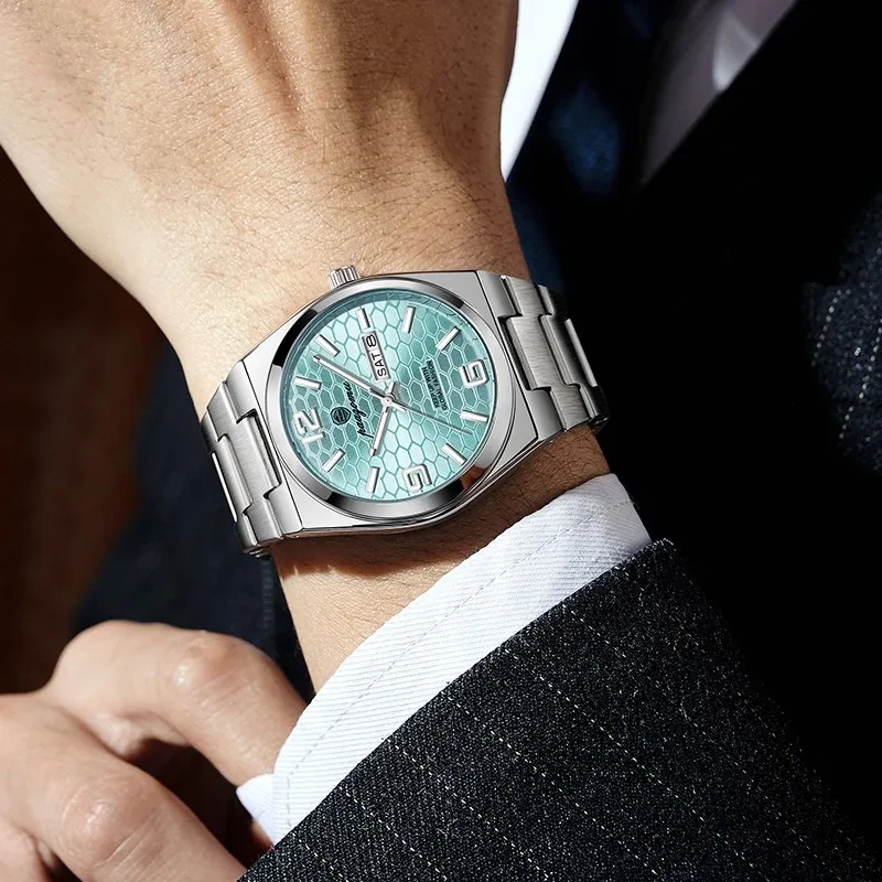 Nuevo reloj de pulsera de cuarzo para hombre, marca de lujo, a la moda, luminoso, de acero inoxidable, resistente al agua, reloj con calendario y semana para hombre 2026