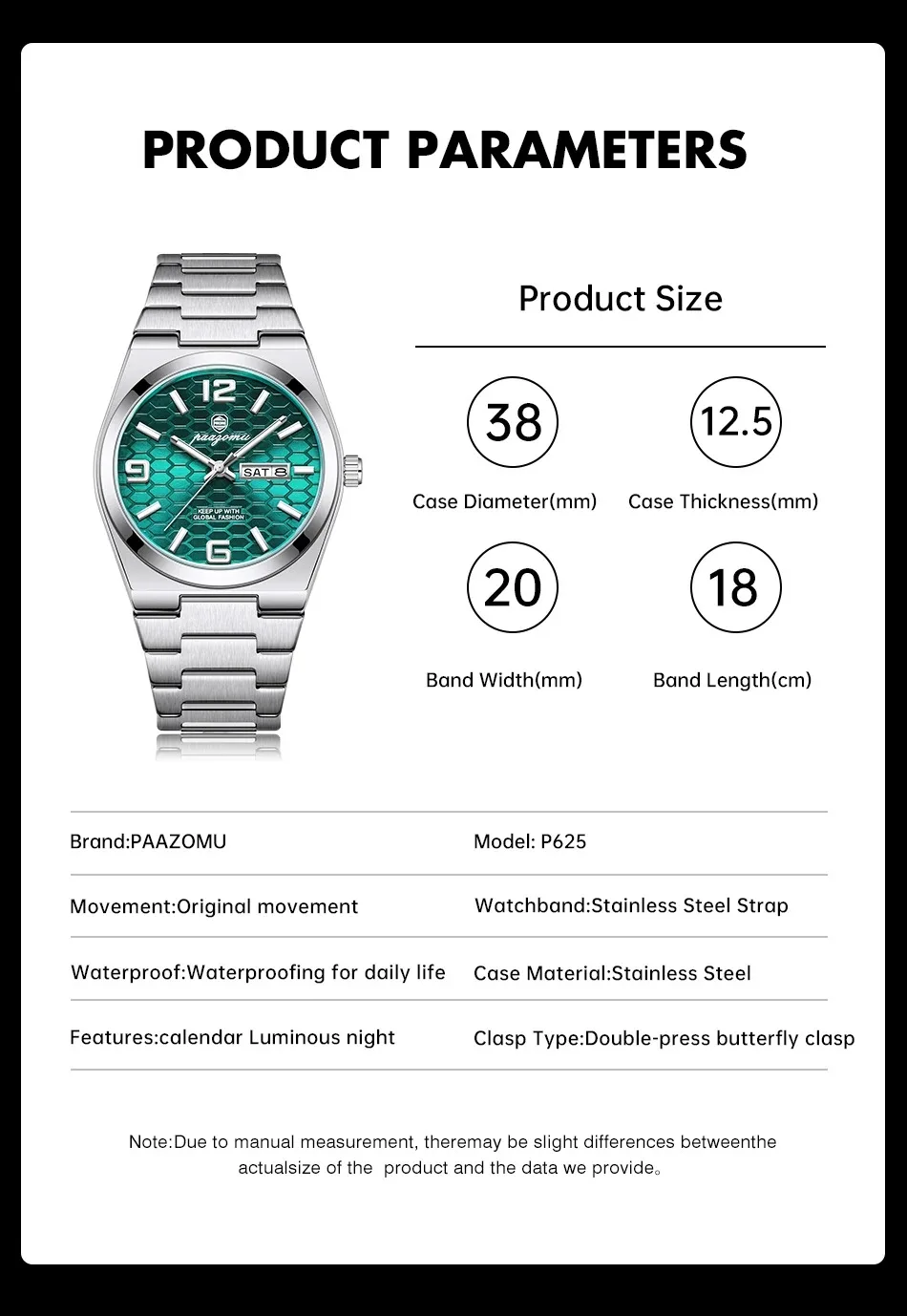 Producto químico de alta preocupación: Ninguno Tipo de pantalla: Sin número Grosor de la caja: 10mm Ancho de banda: 20 a 24 mm Tipo de material de la correa: Acero Inoxidable Origen del movimiento: China…