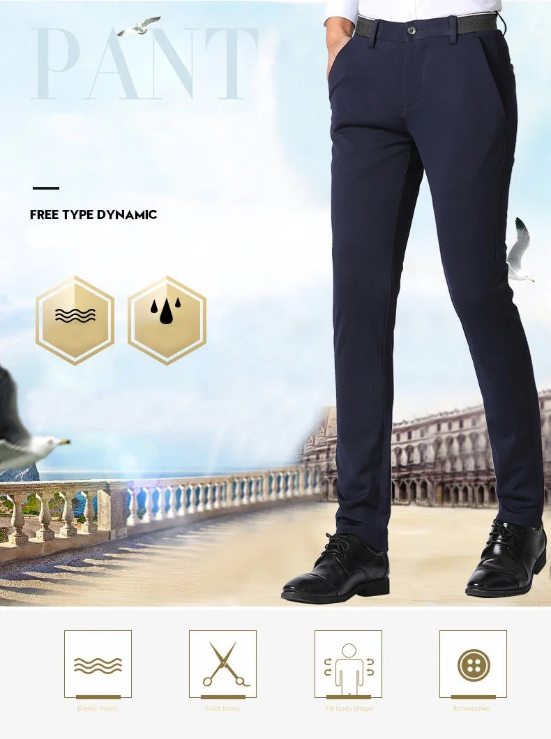 Pantalones largos informales de negocios a la moda de verano para hombre, pantalones de traje, pantalones formales rectos elásticos para hombre, talla grande 28-40