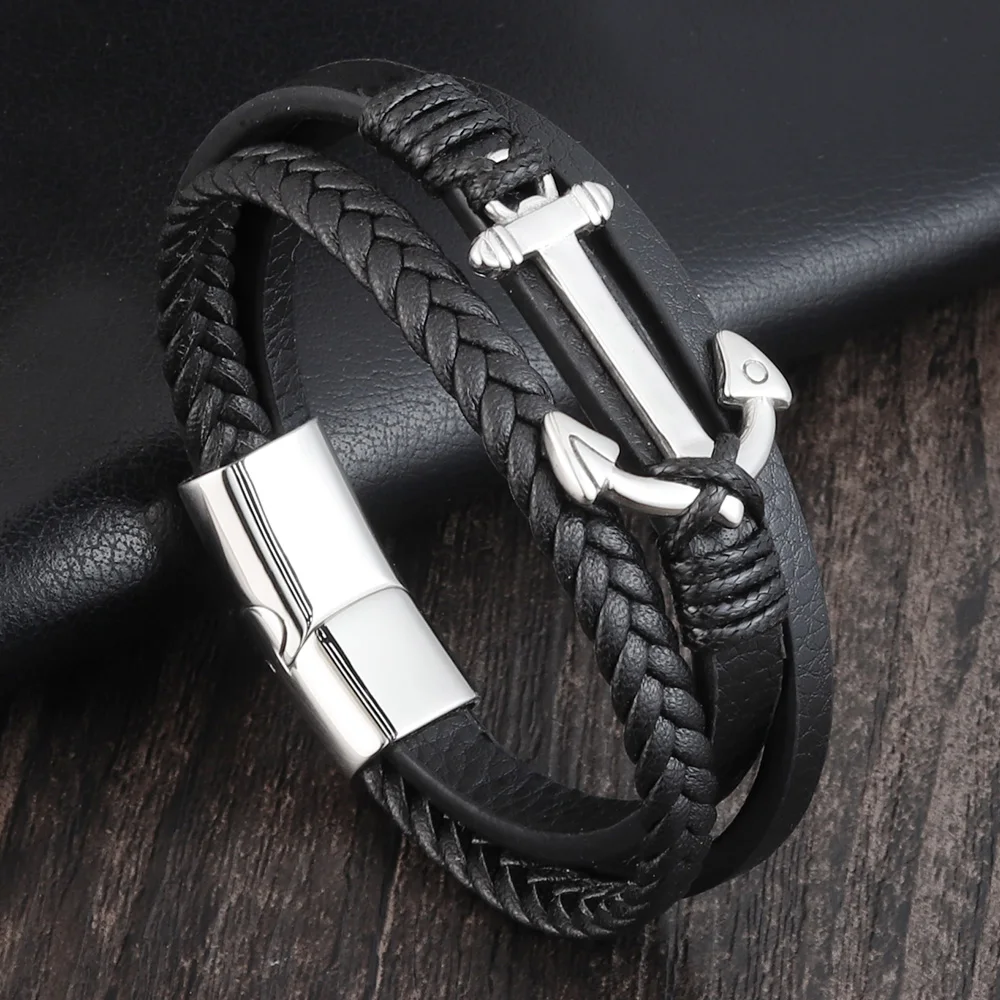 Sé el primero en valorar “Pulseras de ancla de acero inoxidable Punk, pulsera y brazaletes de cuero genuino para hombres, joyería de Color negro, regalo de moda” Cancelar respuesta