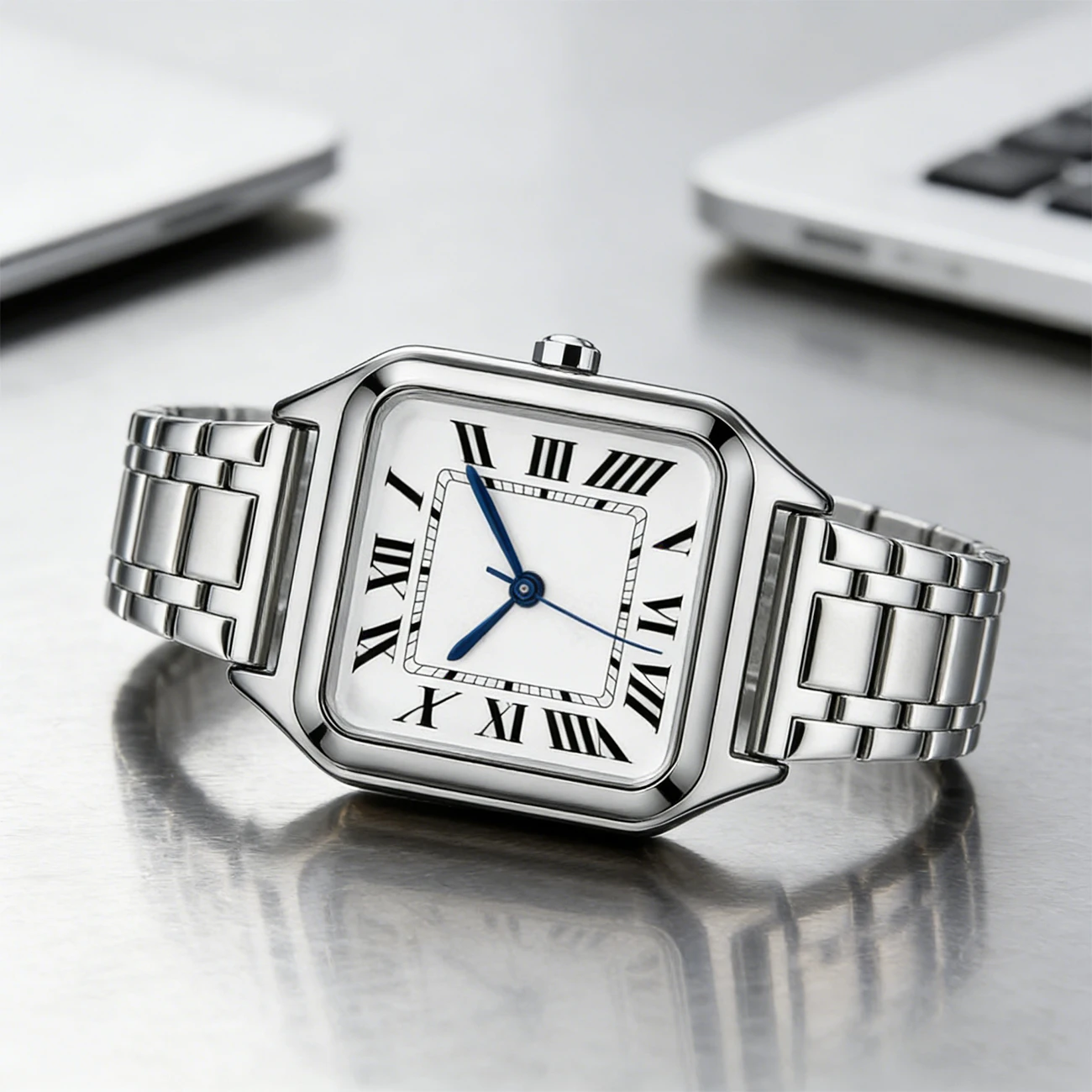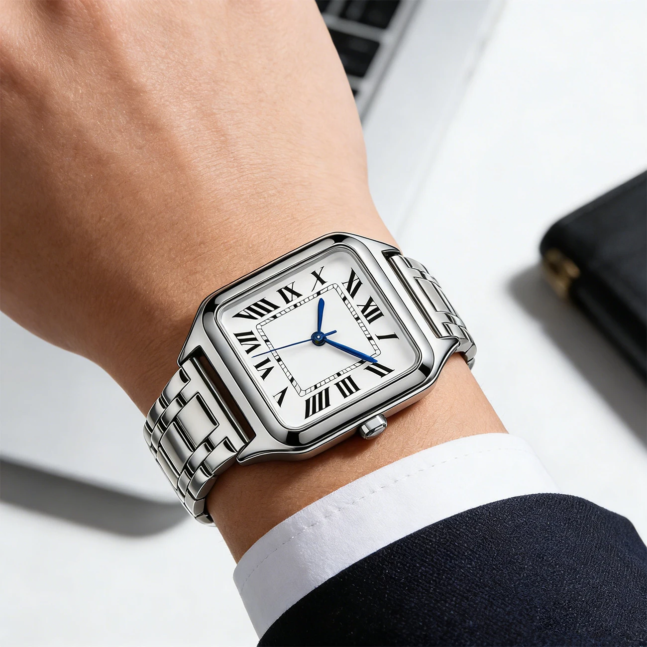 Reloj de cuarzo de aleación de acero inoxidable para hombres de negocios de alta gama, reloj de plata simple y moderno para hombres, nuevo modelo 2026