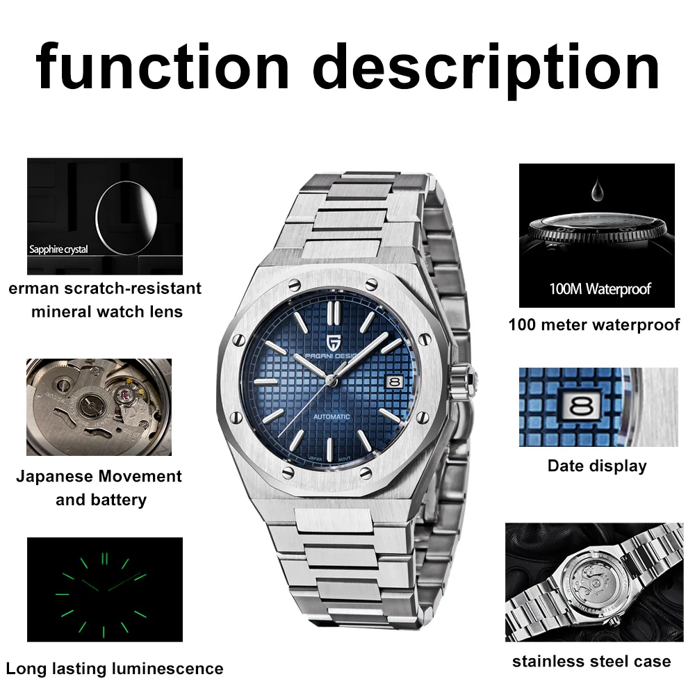 • Movimiento: Movimiento japonés NH35 para una hora exacta y de larga duración.