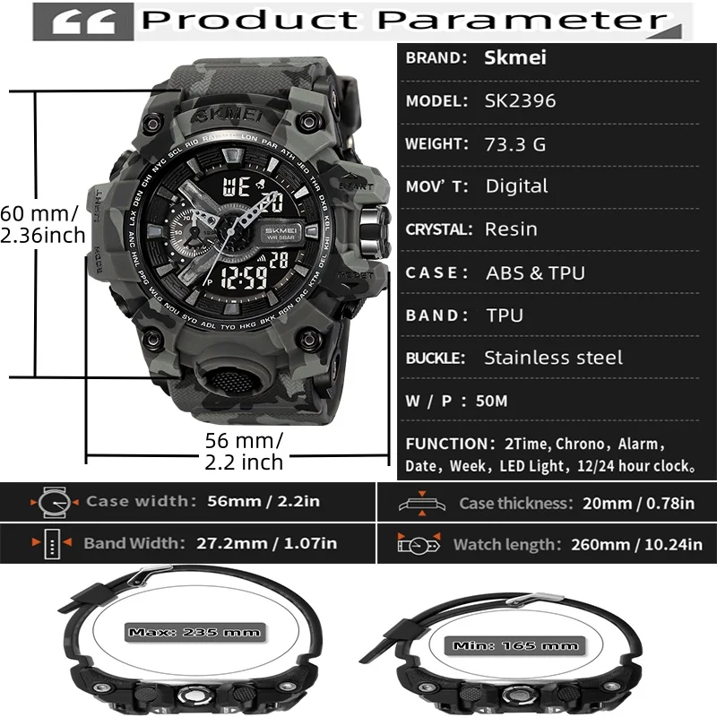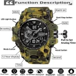 - Característica: Luz de fondo,Resistente a los golpes,Pantalla LED,Repetidor,Cronógrafo,Calendario completo,Alarma,Visualización de la semana