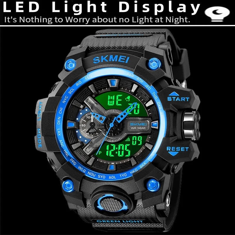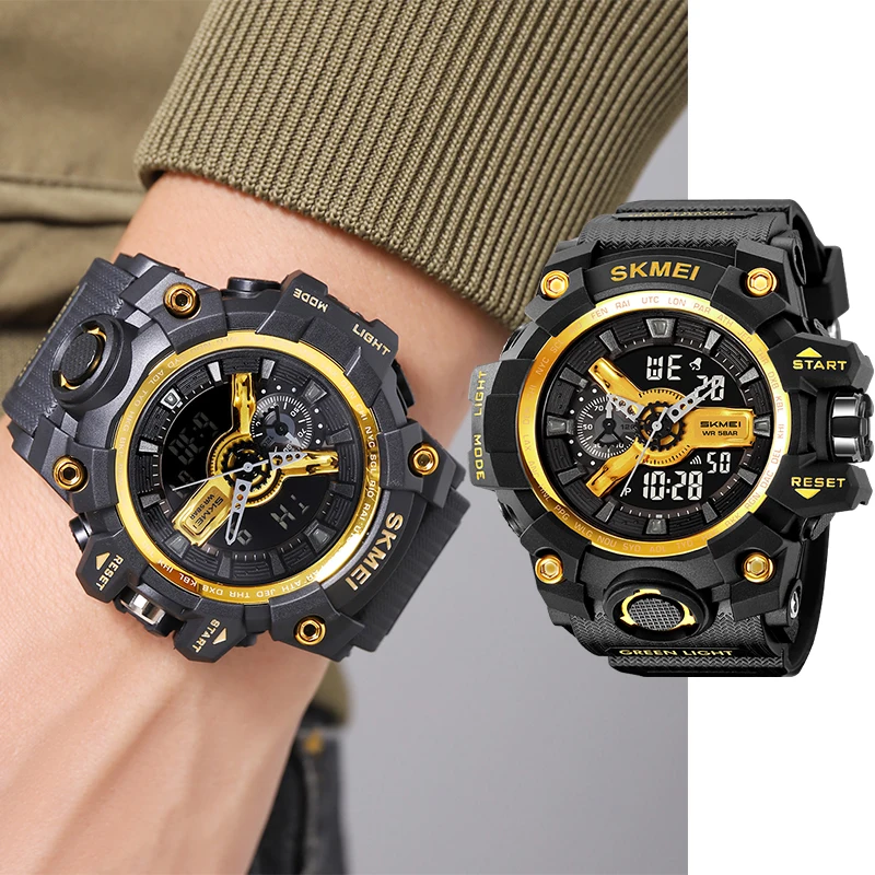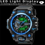 Relojes deportivos militares Skmei a prueba de golpes para hombre con fecha, pantalla Digital analógica a la moda, esfera de gran tamaño, reloj despertador LED resistente al agua, zona horaria dual para hombre