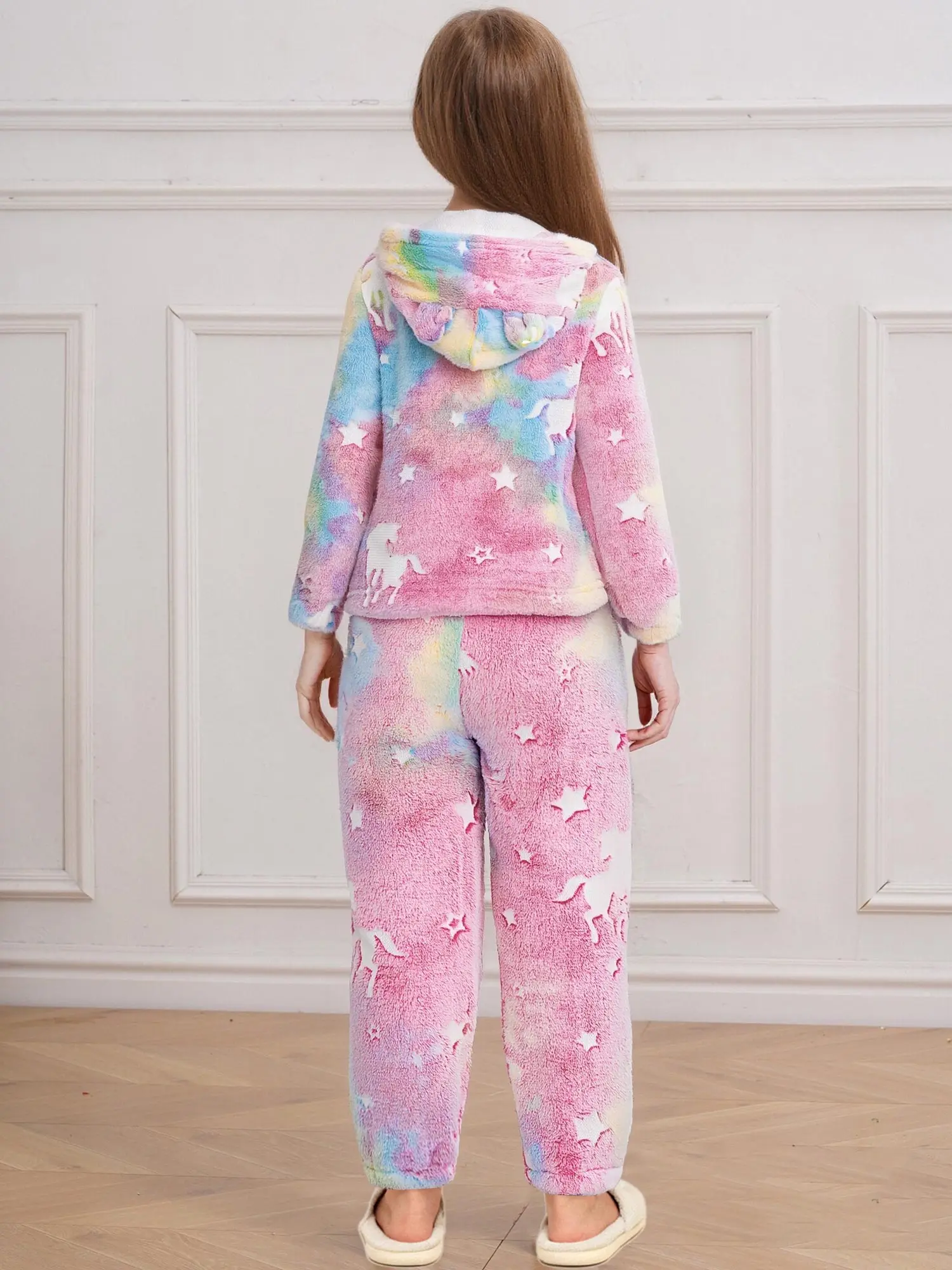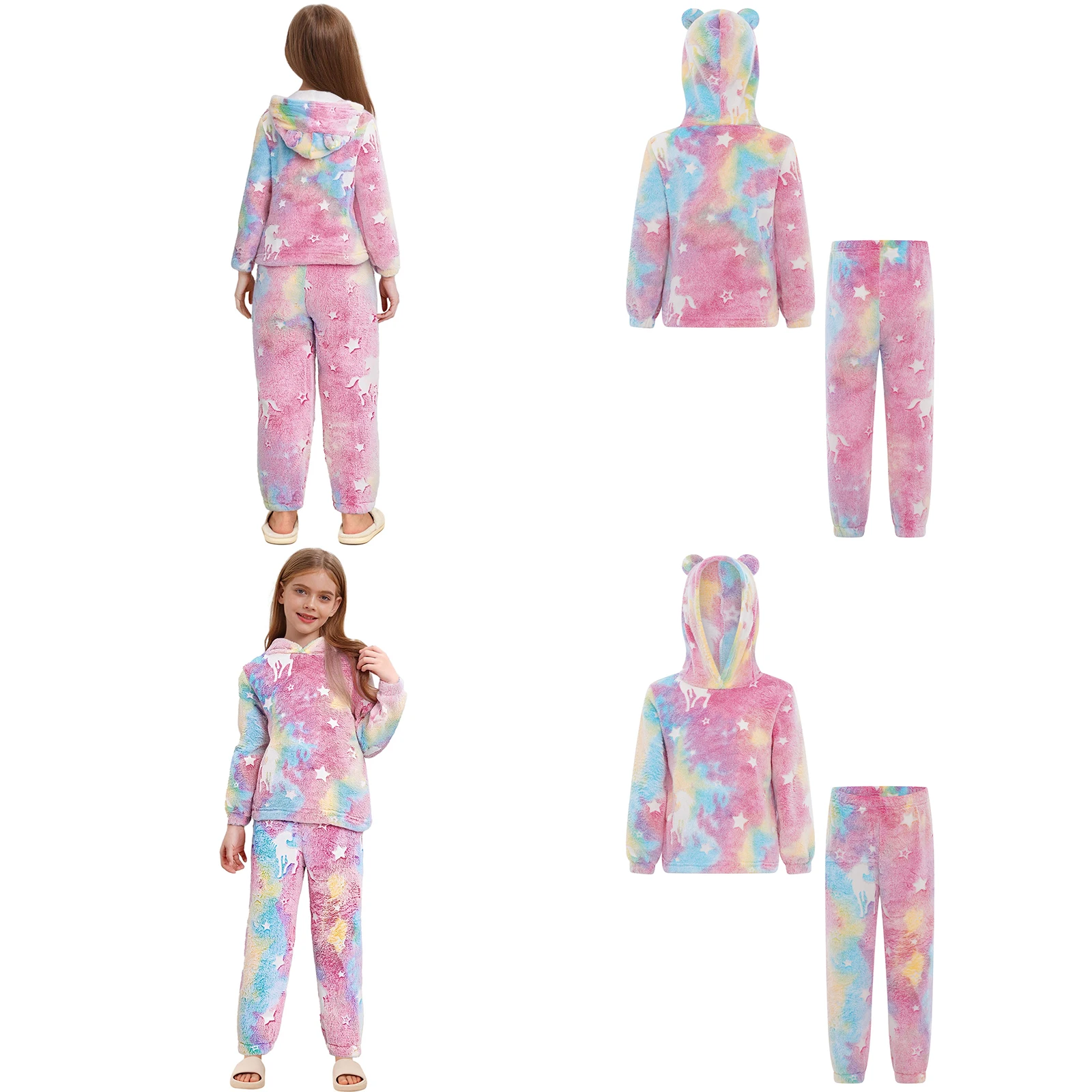 La sudadera con capucha de manga larga proporciona calidez y protección adicionales, adecuada para diversas condiciones climáticas, y los pantalones con cinturilla elástica ofrecen un ajuste flexible y cómodo.