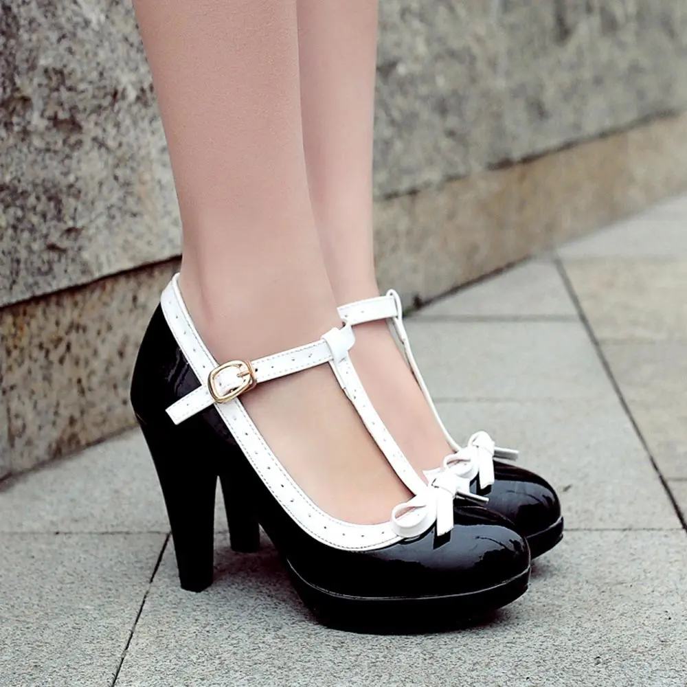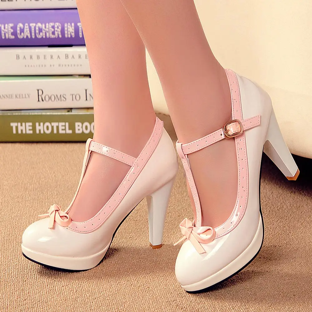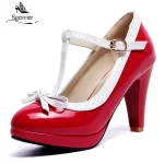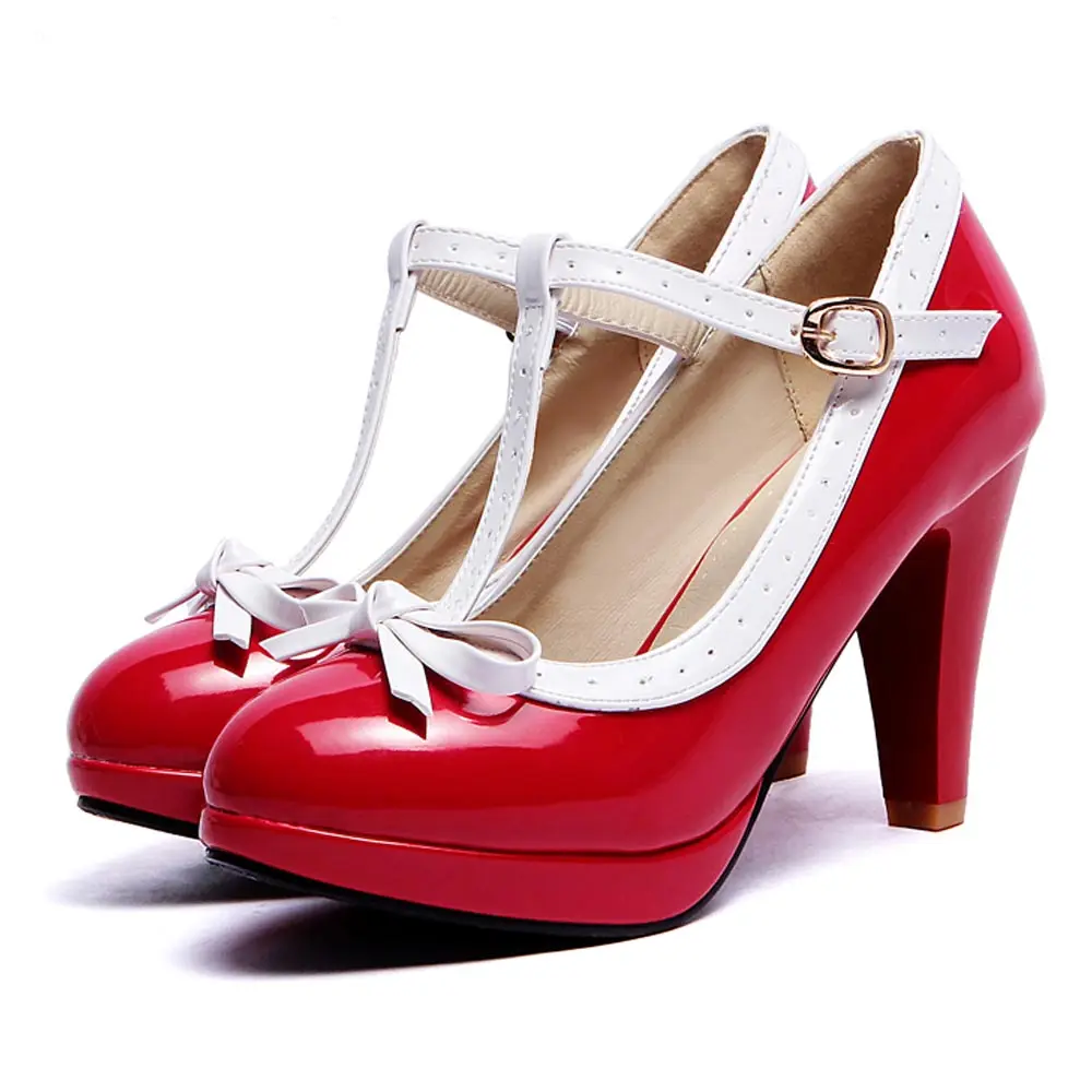 Sgesvier princesa Lolita Mary Jane zapatos mujer tacones altos rojo blanco pajarita señoras verano Spike tacón bombas fiesta verano B212
