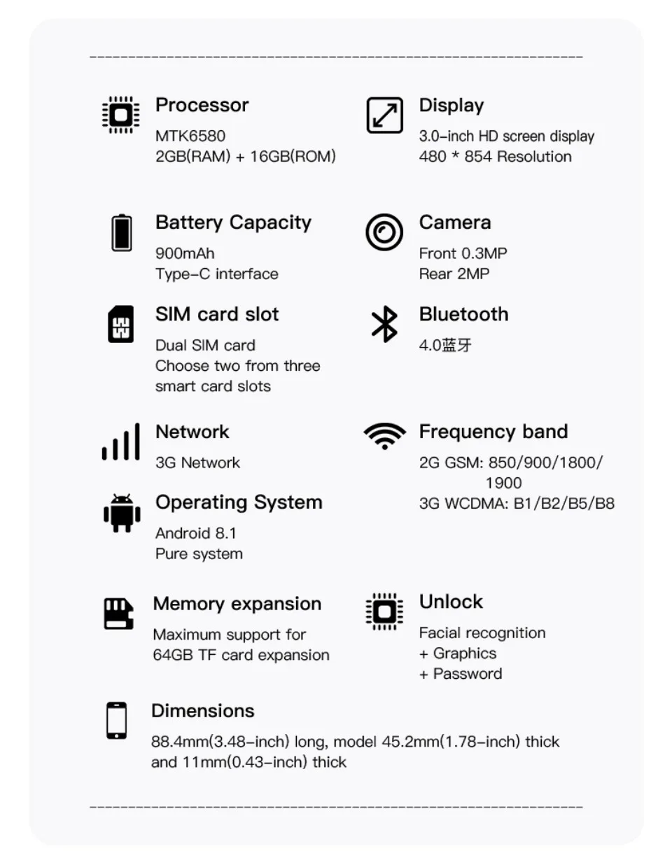 3G WCDMA: B1/B3/B5/B8 |