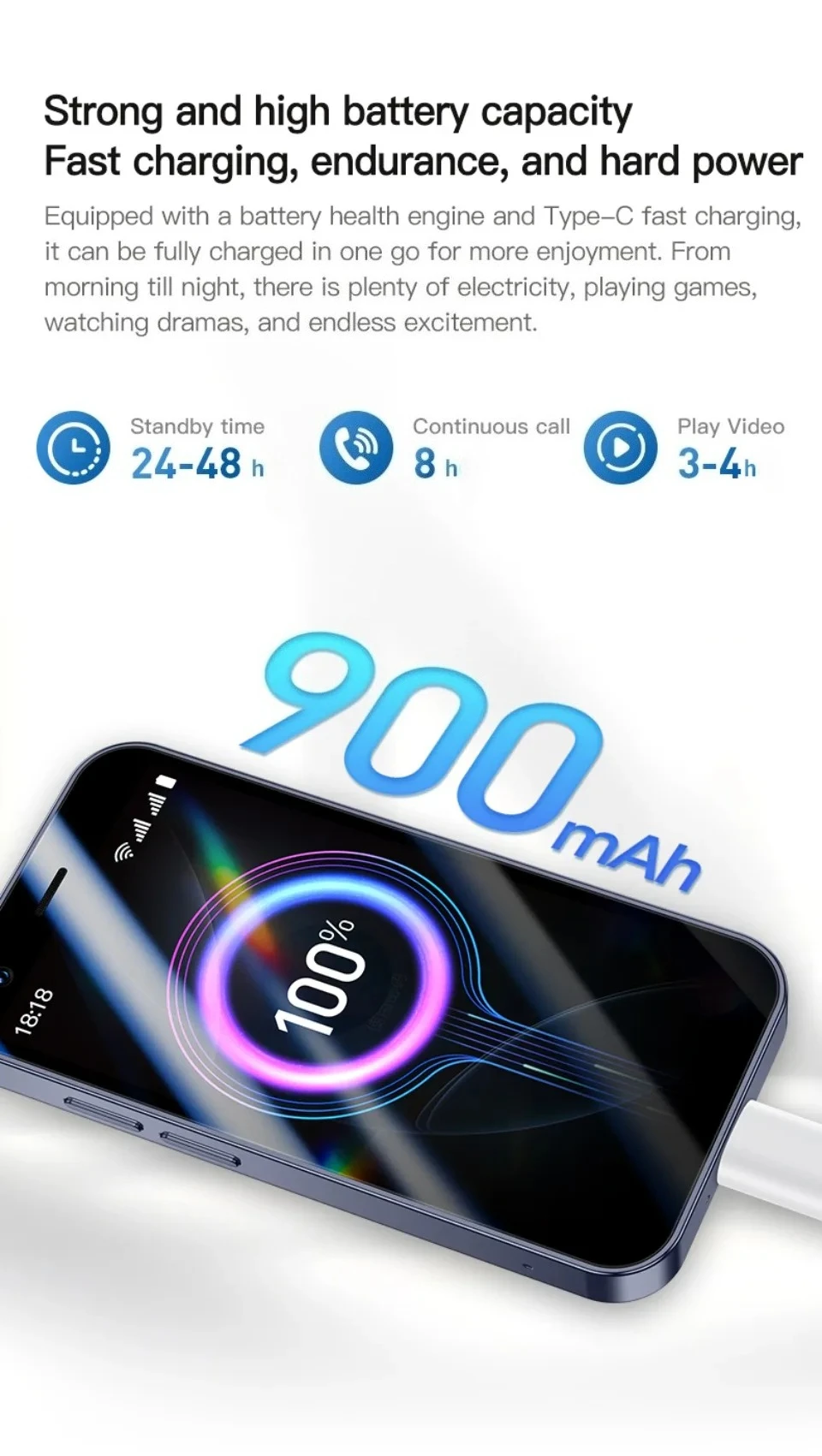 - Capacidad de la batería (mAh): 900