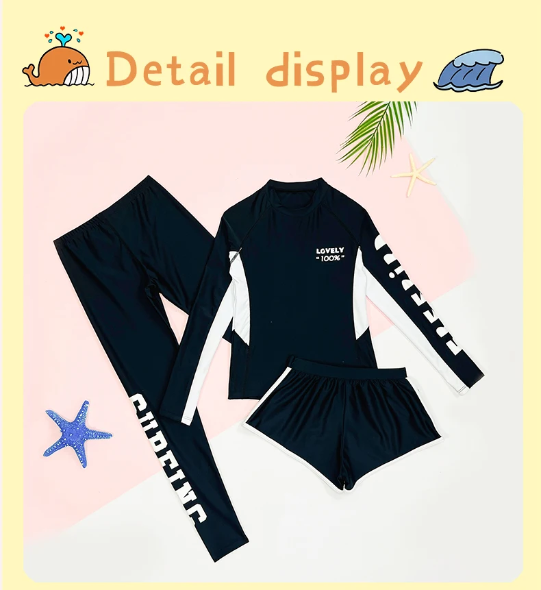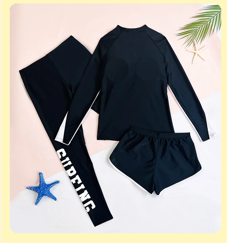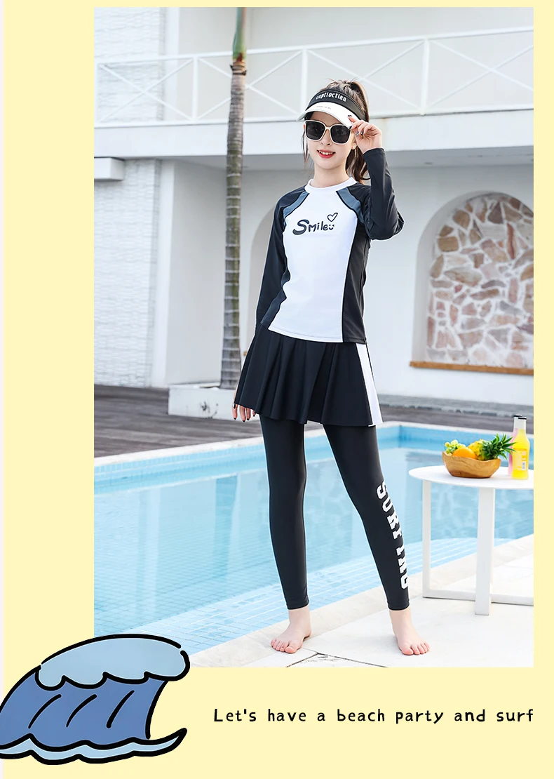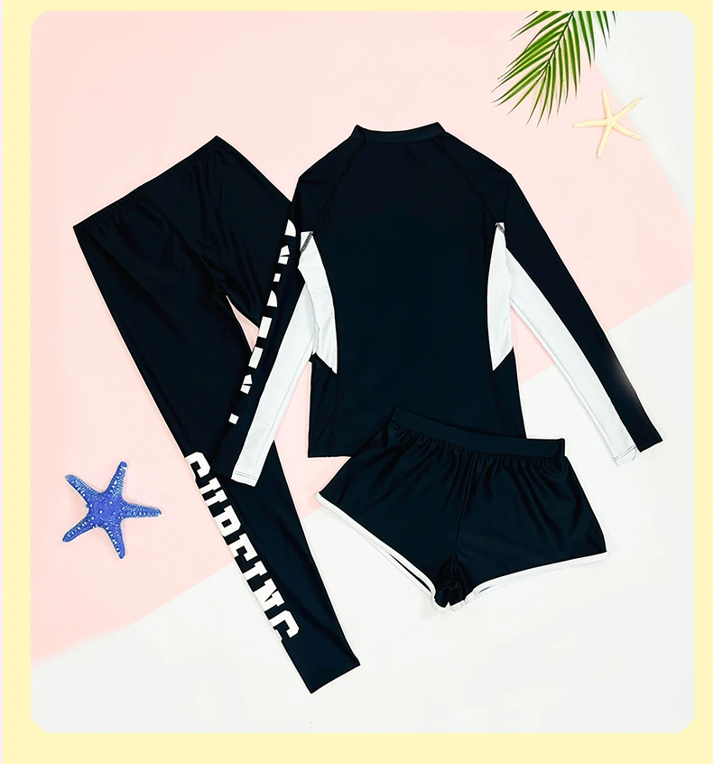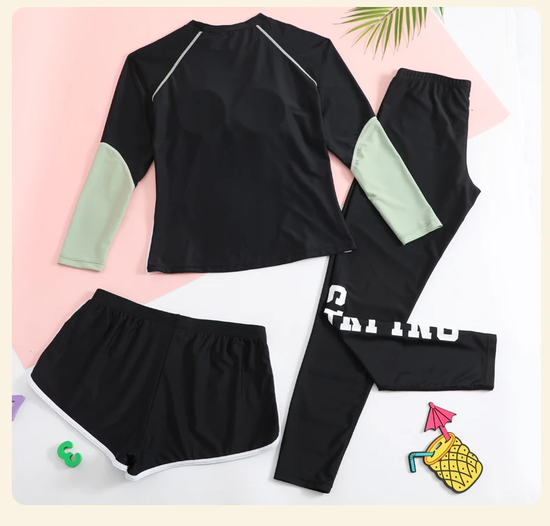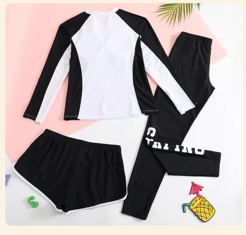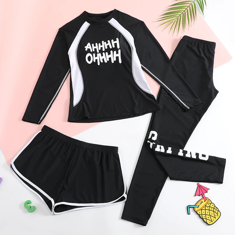 Traje de baño para niñas, traje de baño protector contra sarpullidos, trajes de baño de 3 piezas, pantalones deportivos para surfear, traje de neopreno de manga larga para adolescentes, ropa de playa