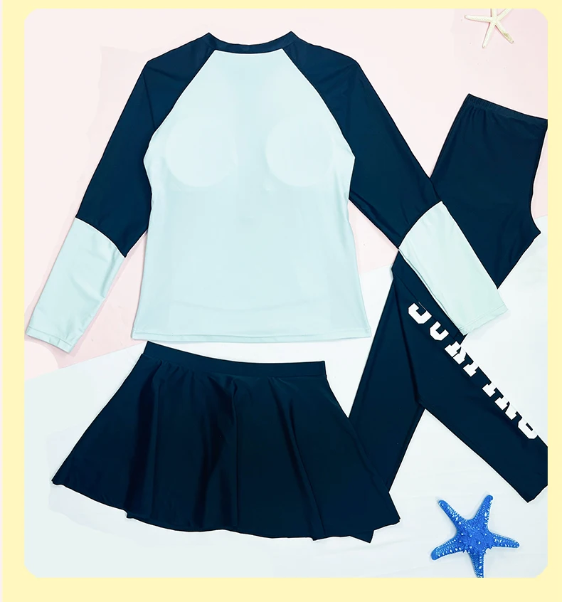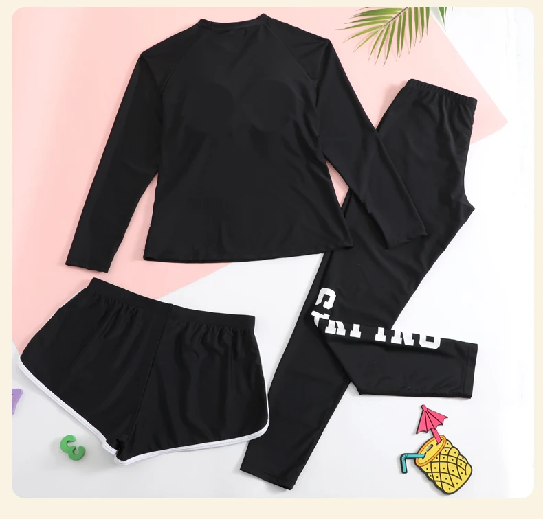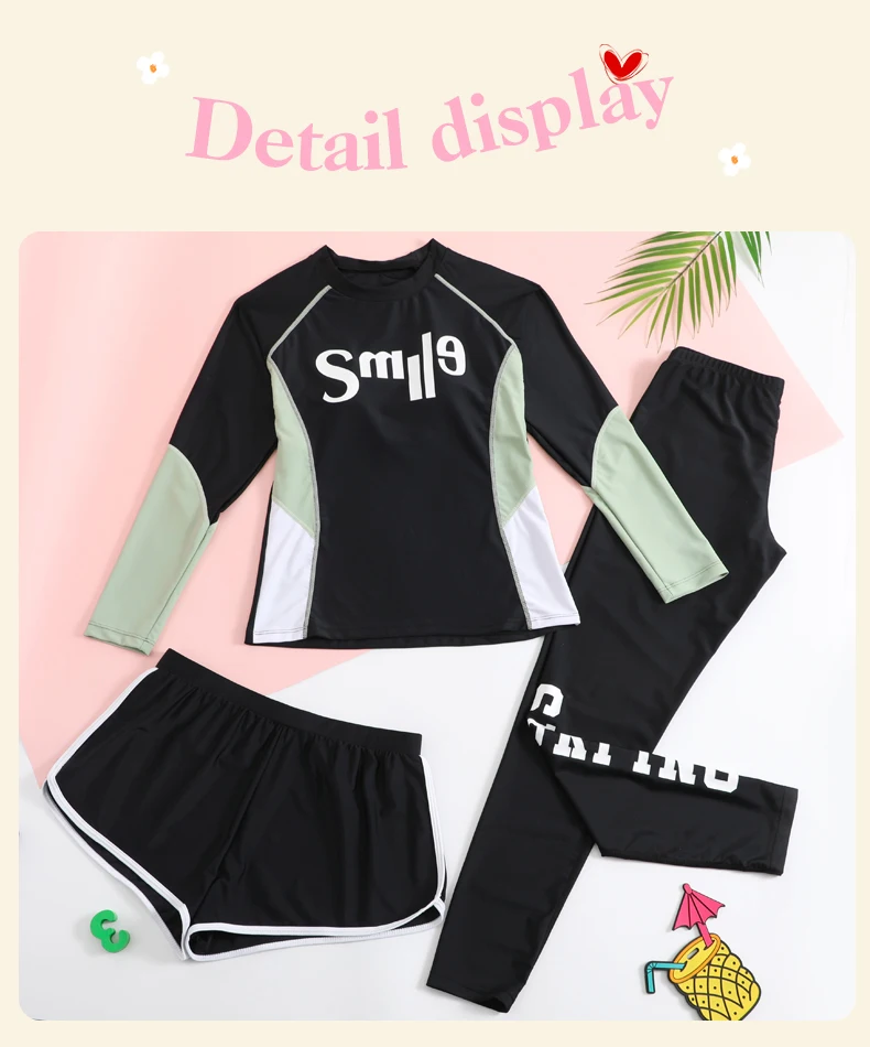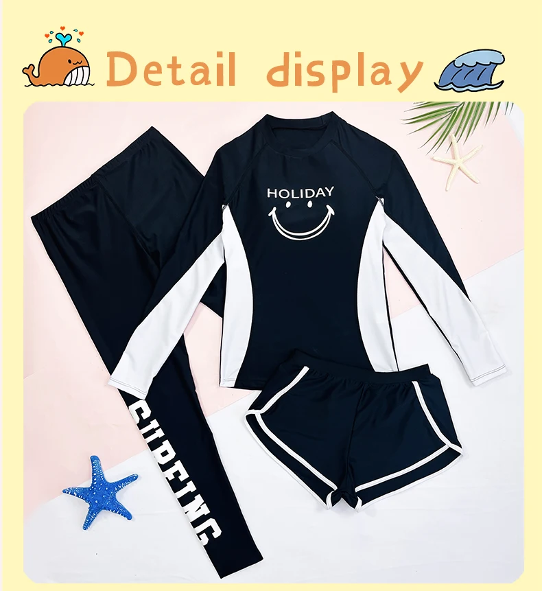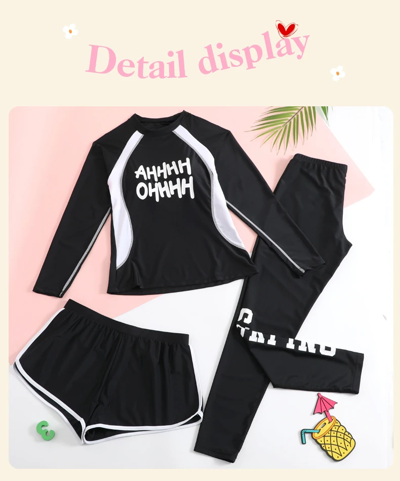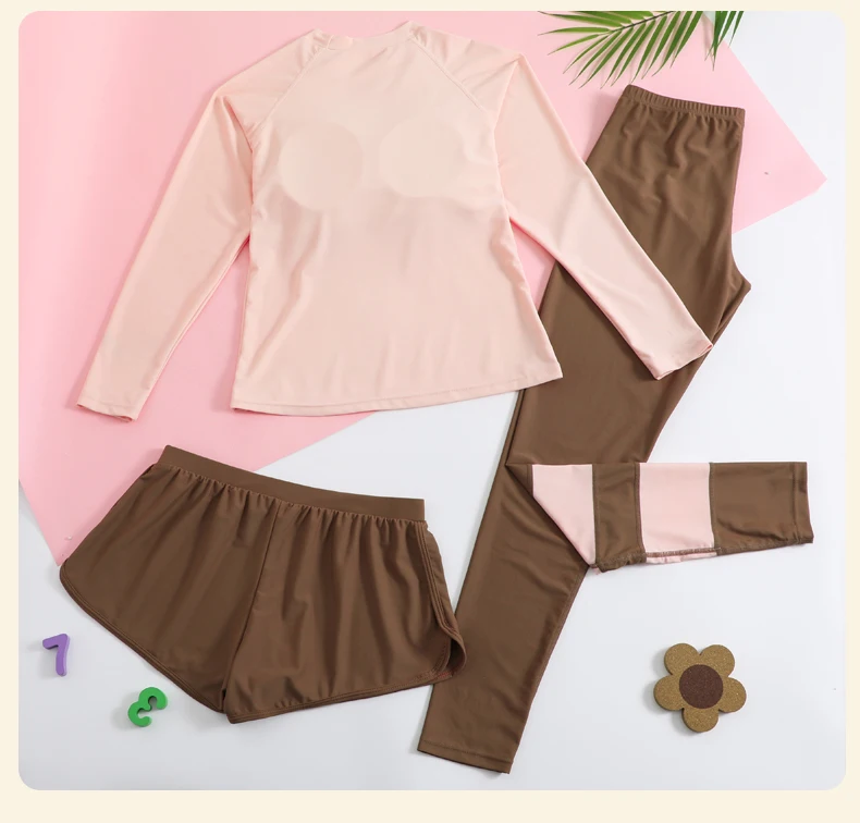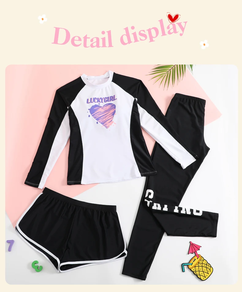 Traje de baño para niñas, traje de baño protector contra sarpullidos, trajes de baño de 3 piezas, pantalones deportivos para surfear, traje de neopreno de manga larga para adolescentes, ropa de playa