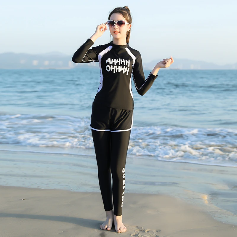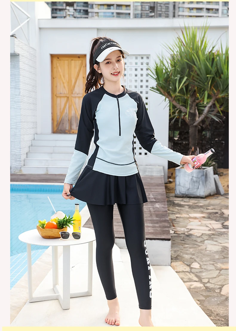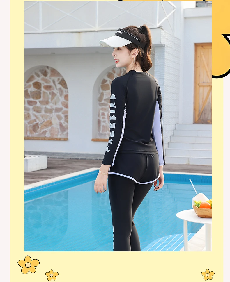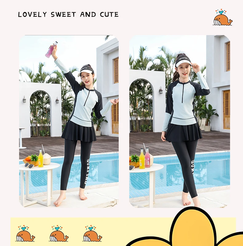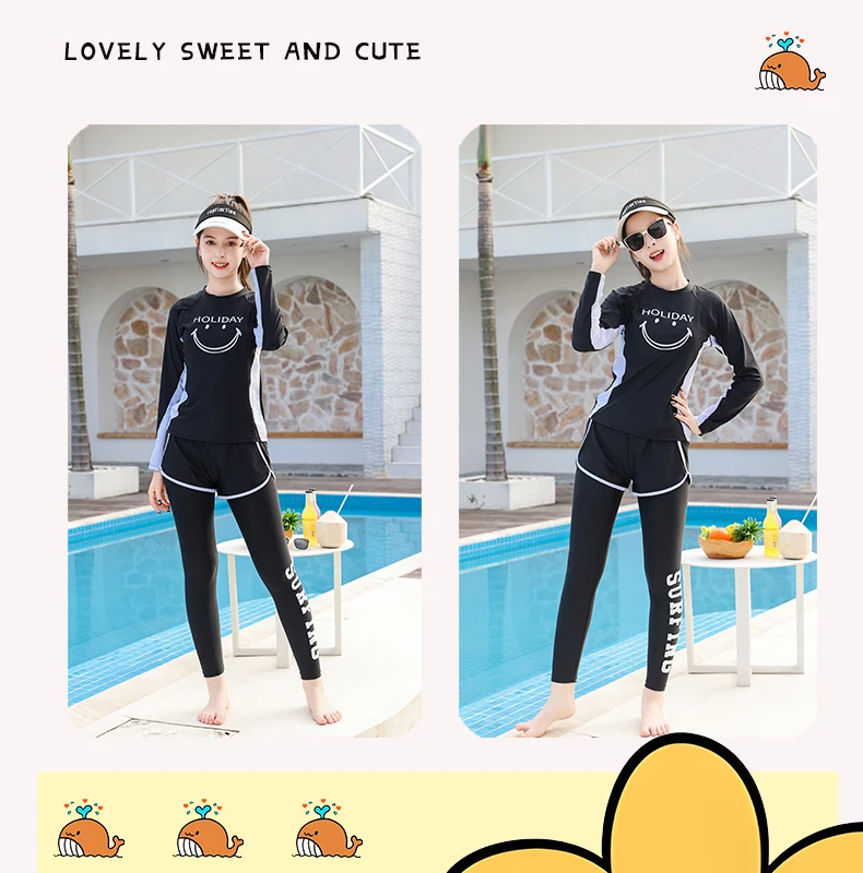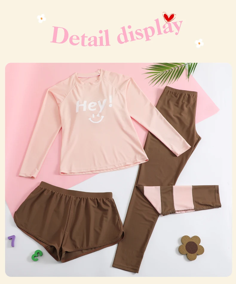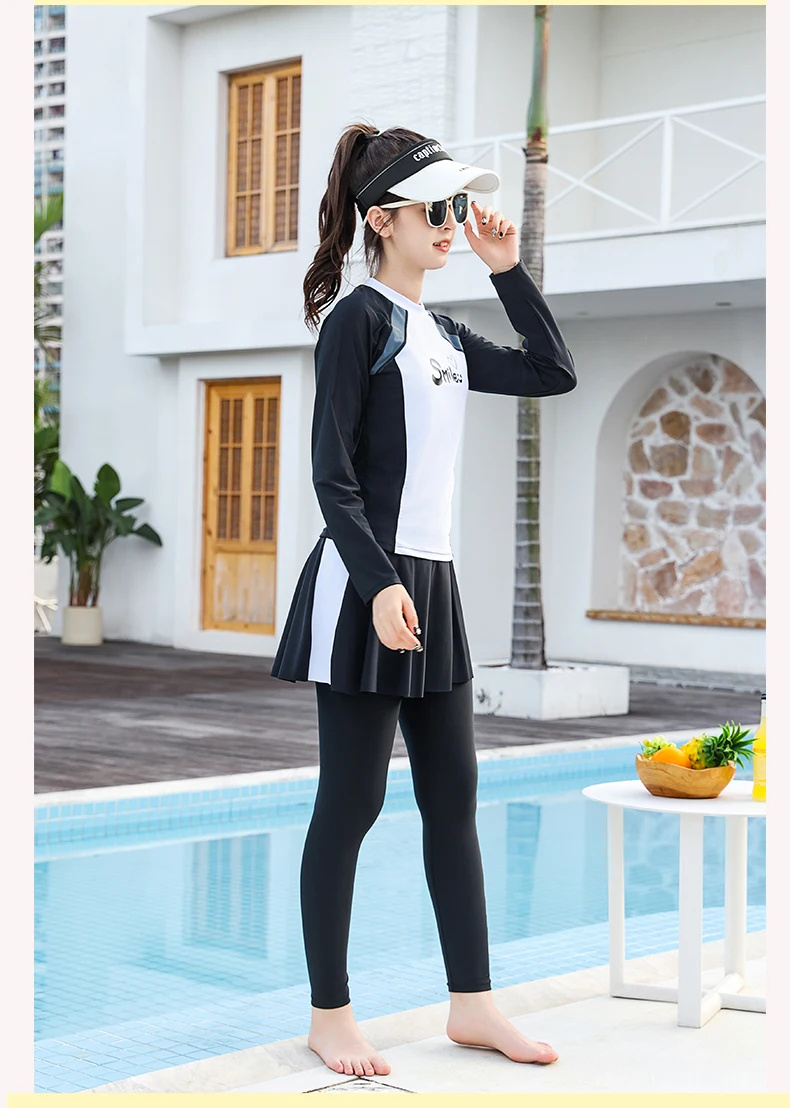 Traje de baño para niñas, traje de baño protector contra sarpullidos, trajes de baño de 3 piezas, pantalones deportivos para surfear, traje de neopreno de manga larga para adolescentes, ropa de playa
